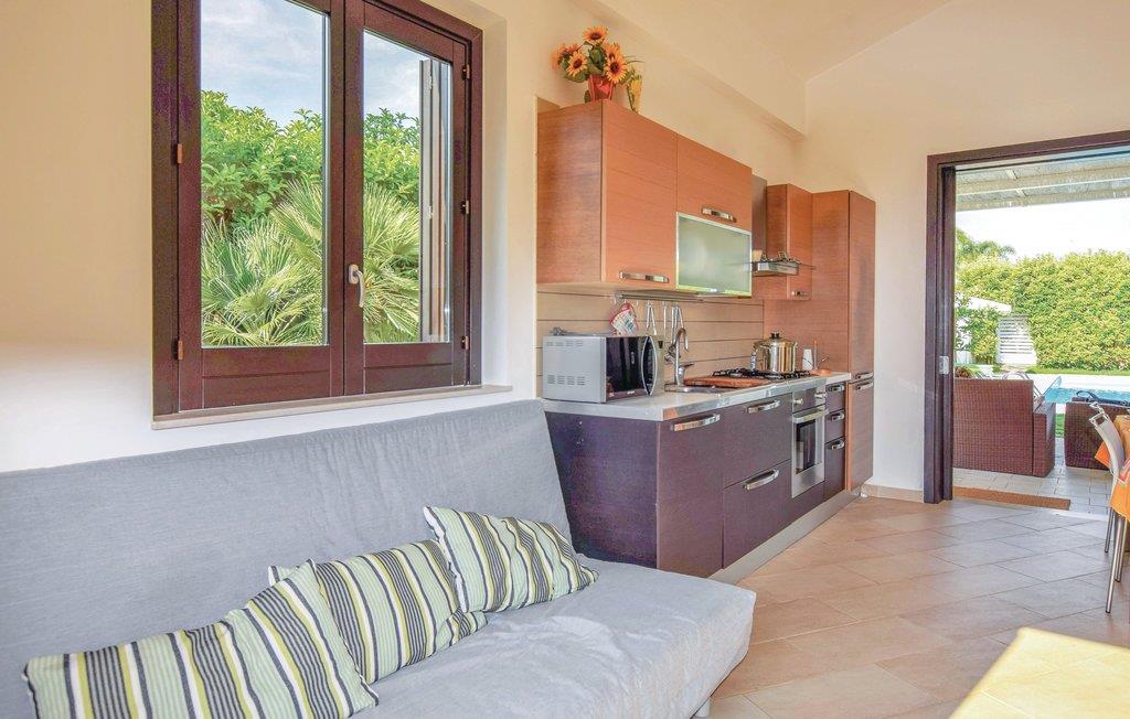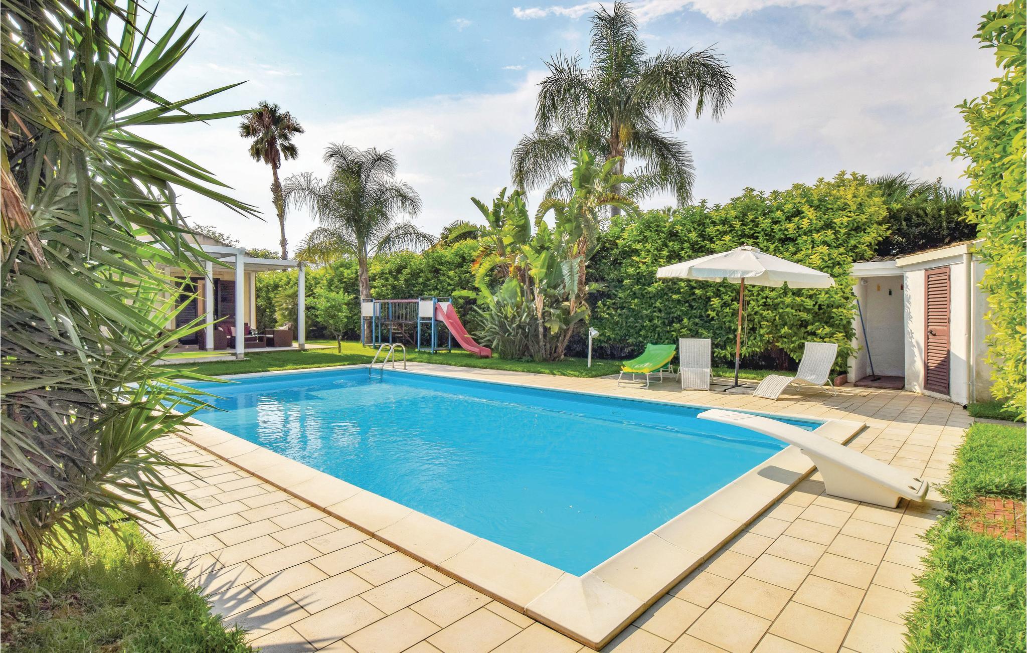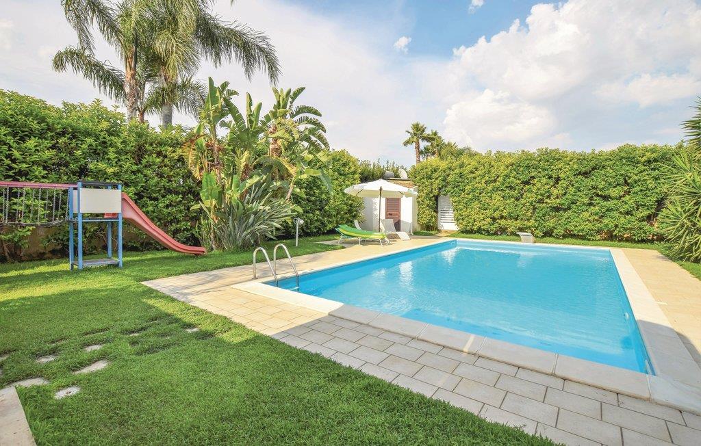 Dette vakre feriehuset med svømmebasseng ligger i et boligområde omgitt av grøntområder mellom Marina di Ragusa og Donnalucata, i den sørlige delen av Sicilia. I nærheten av bassenget er det en veranda med utekjøkken og utendørs sittegruppe, perfekt for uteservering og avslapning. For store og små finner du et lekeområde for barn og en fotball- og volleyballbane på gress. I annekset har du en dobbeltseng og et bad. Marina di Ragusa ligger ca 2,5 km unna, Donnalucata 1,5 km, strendene ca 800 m. Marina di Ragusa tilbyr lange gylne sandstrender og et livlig natteliv med alle slags tjenester og en marina. Ikke glem også at her er du i en strategisk posisjon for å besøke stedene i den sicilianske barokken, som Ragusa Ibla, Modica, Scicli og Comiso, som ligger innenfor en radius på ca. 20 km. På forespørsel er det mulig å konvertere ett av de to doble soverommene i hoveddelen av huset til et tomannsrom.