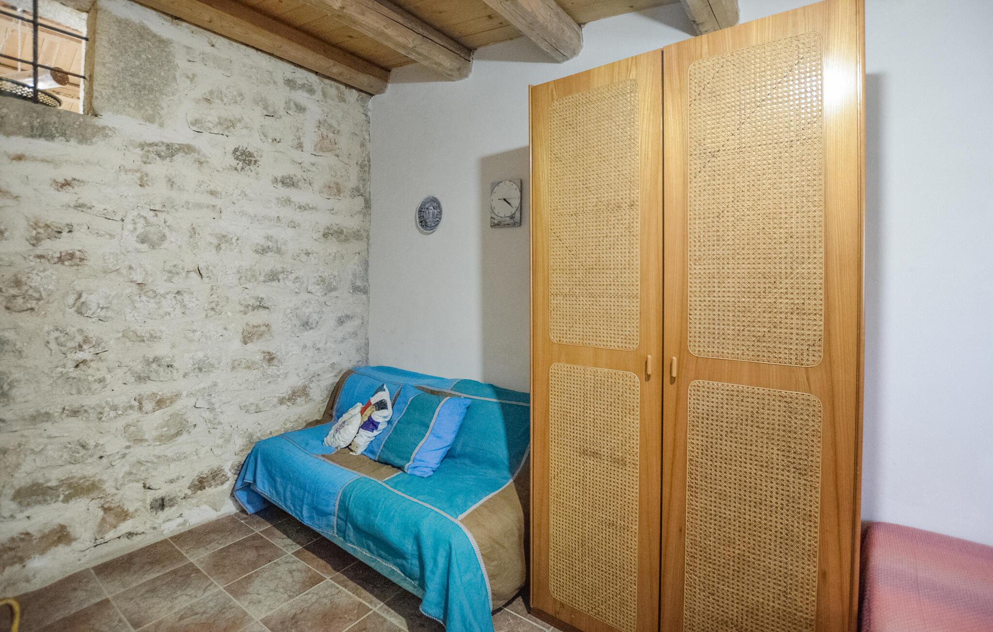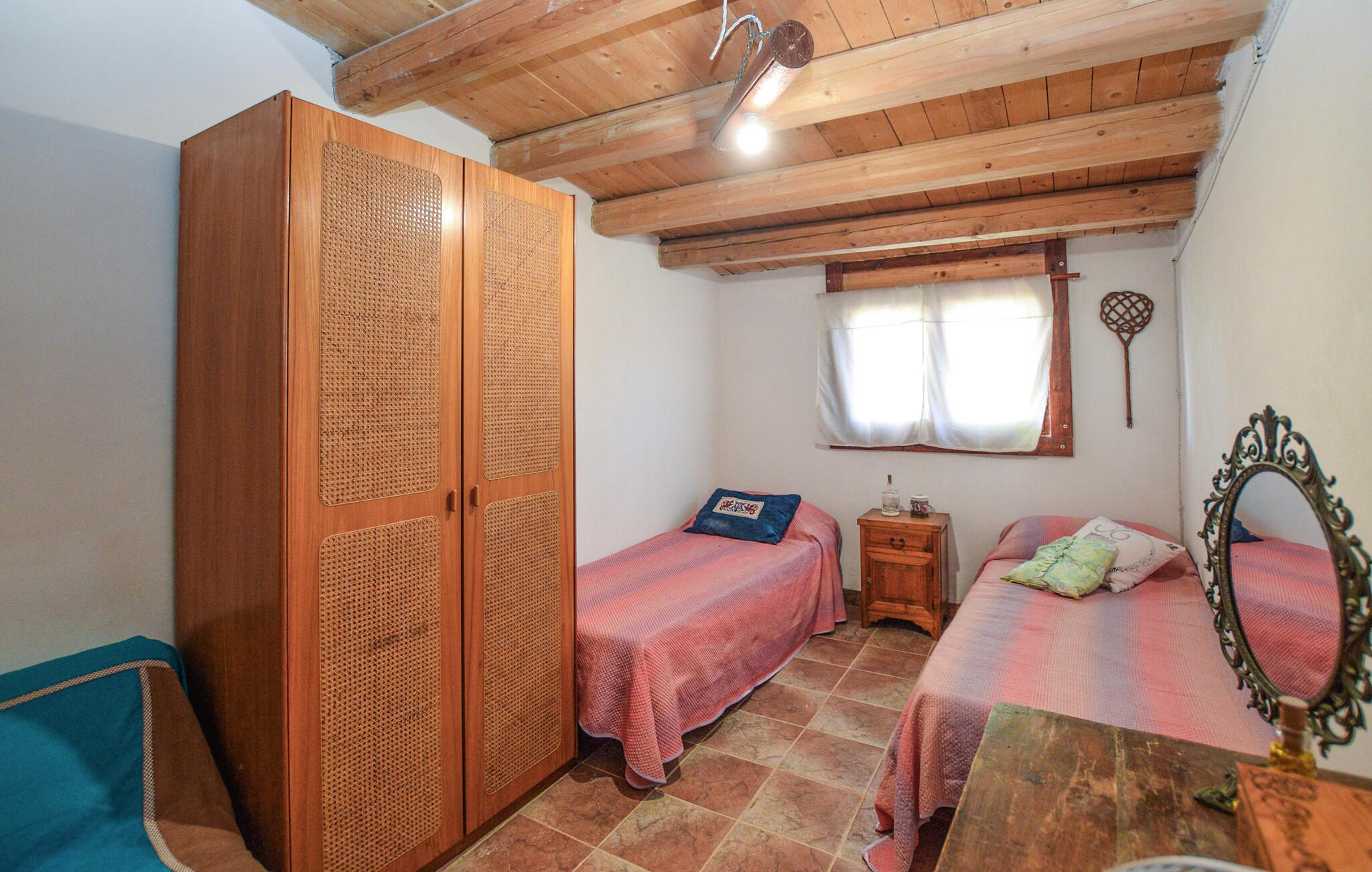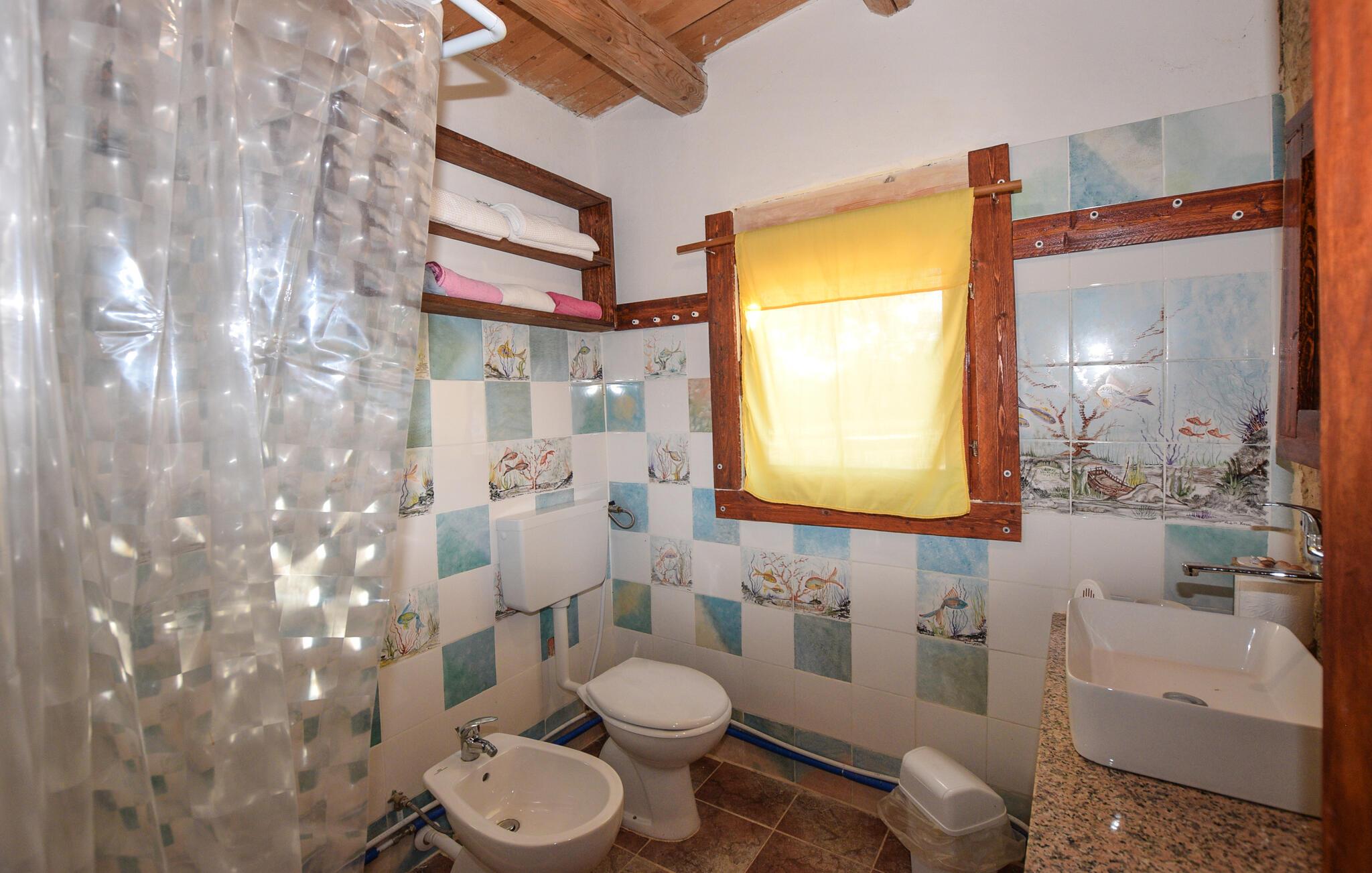 Dette koselige feriehuset ønsker deg velkommen med en harmonisk atmosfære av natursteinvegger og pene tretak. Et fullt utstyrt, rustikt kjøkken og en stilfull spiseplass med fargerike aksenter inviterer til hyggelige måltider. Sett deg godt til rette i den koselige sittegruppen og slapp av - det perfekte stedet for å nyte husets ro.