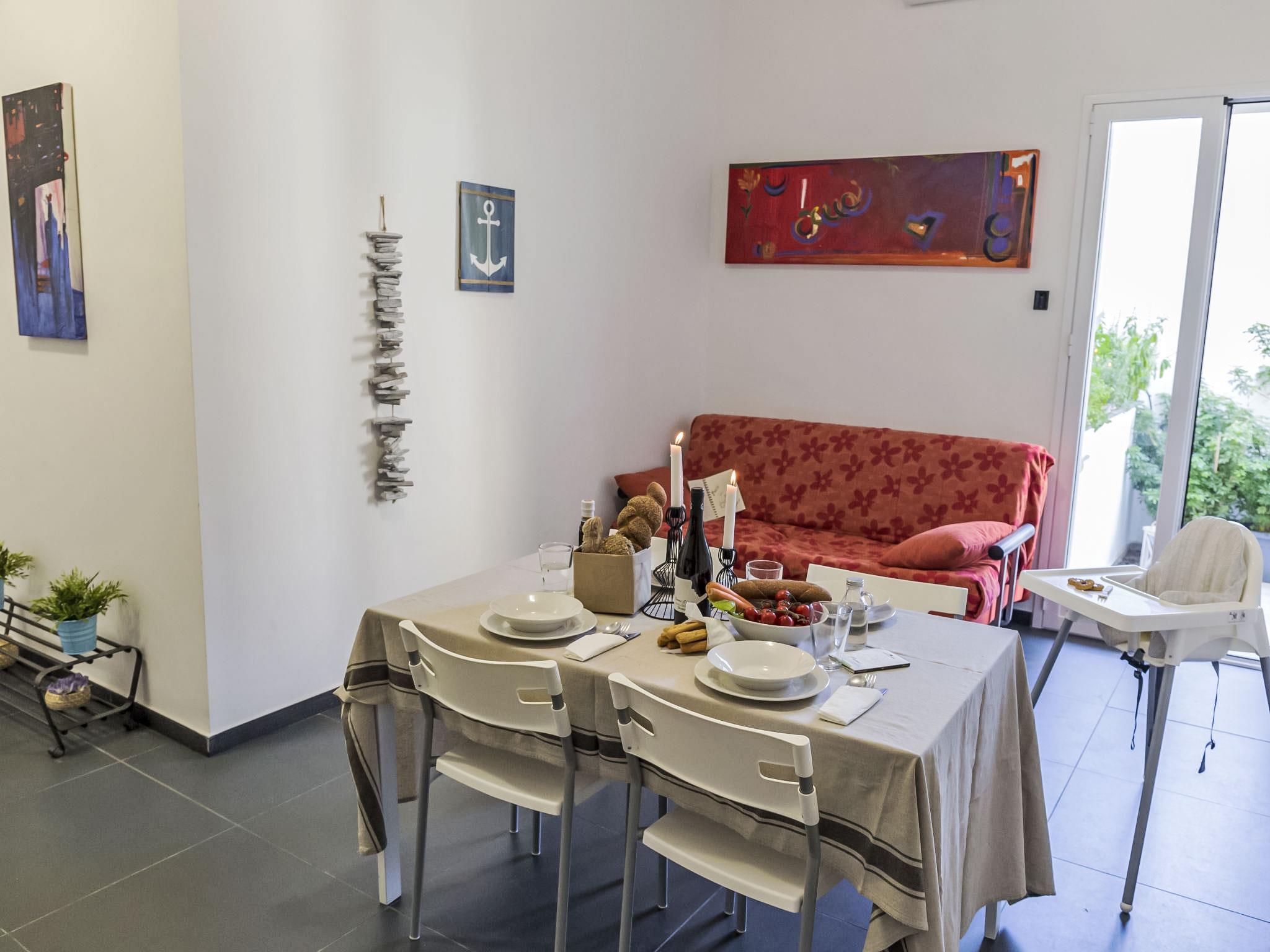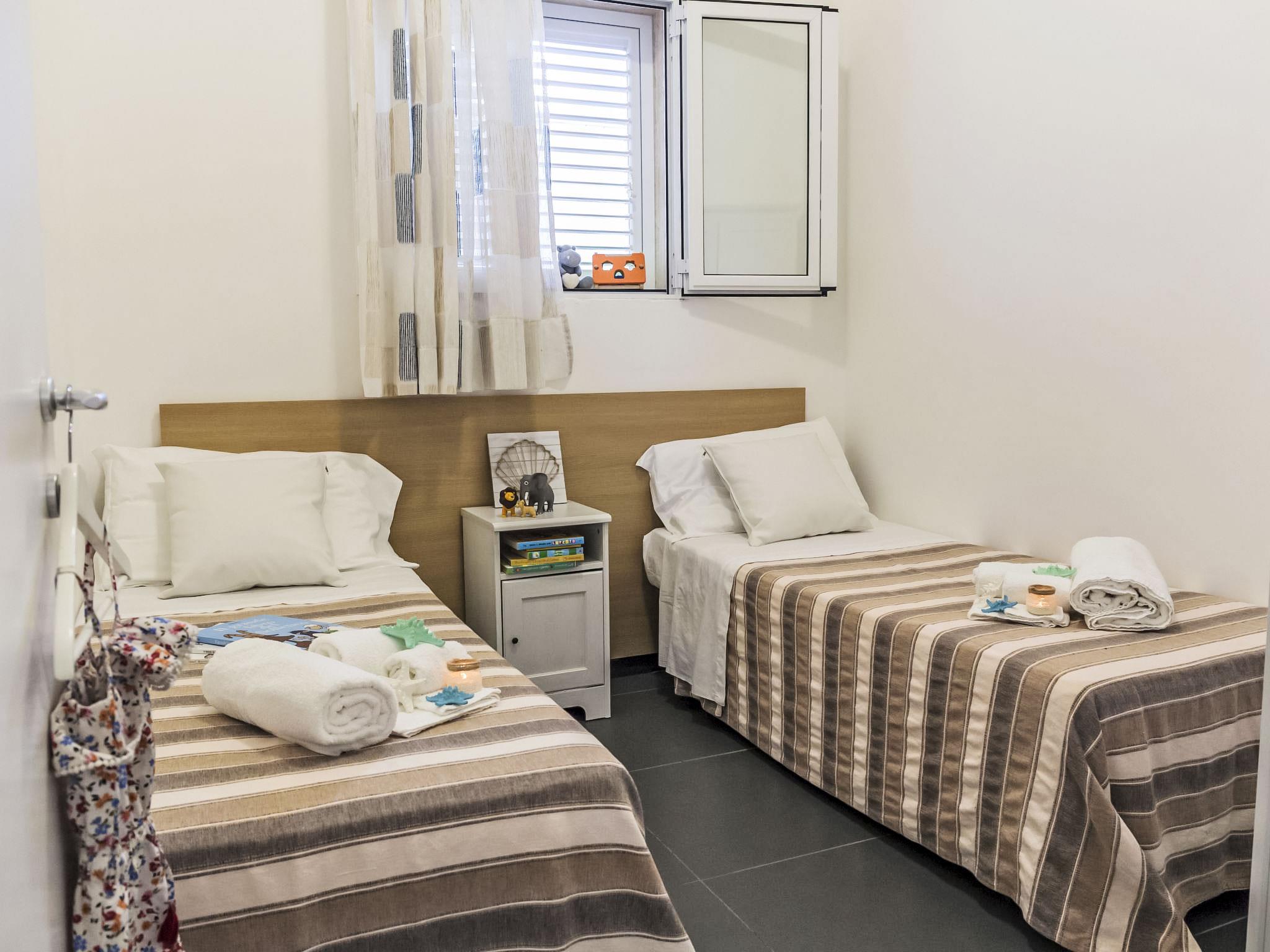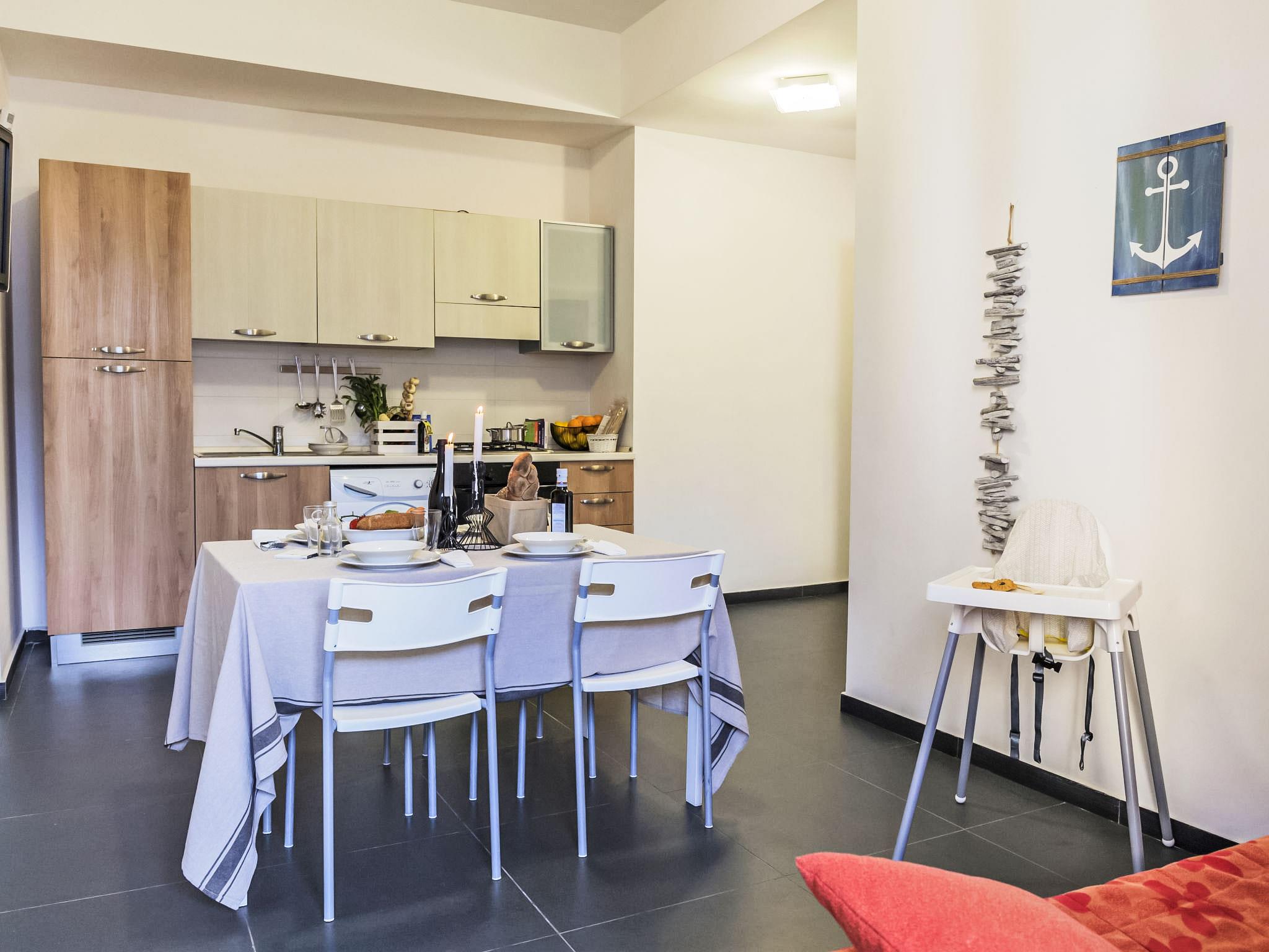 "Brezza Marina", 3-room apartment 65 m2, on the ground floor. Practical and modern furnishings: living/dining room with 1 double sofabed and TV (flat screen), air conditioning and forced-air heating. Exit to the patio. 1 double bedroom with fan. 1 room with 2 beds. Kitchenette (4 hot plates, oven). Shower/bidet/WC. Heating, forced-air heating. Heating available only from 01.12. to 31.03, Heating not available in all rooms. Terrace 25 m2. Terrace furniture. Facilities: washing machine, iron, children's high chair, baby cot for up to 2 year olds (extra), hair dryer. Internet (WiFi, free). Please note: maximum 1 pet/ dog allowed. Smoke alarm, fire extinguisher. IT088011B4P9II83MS