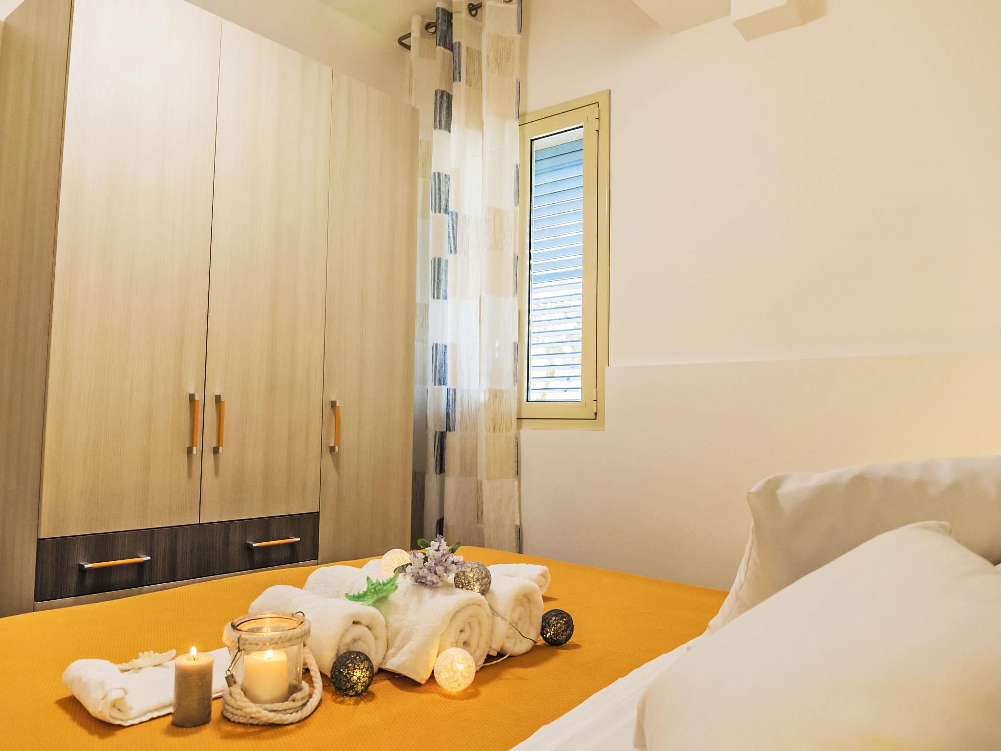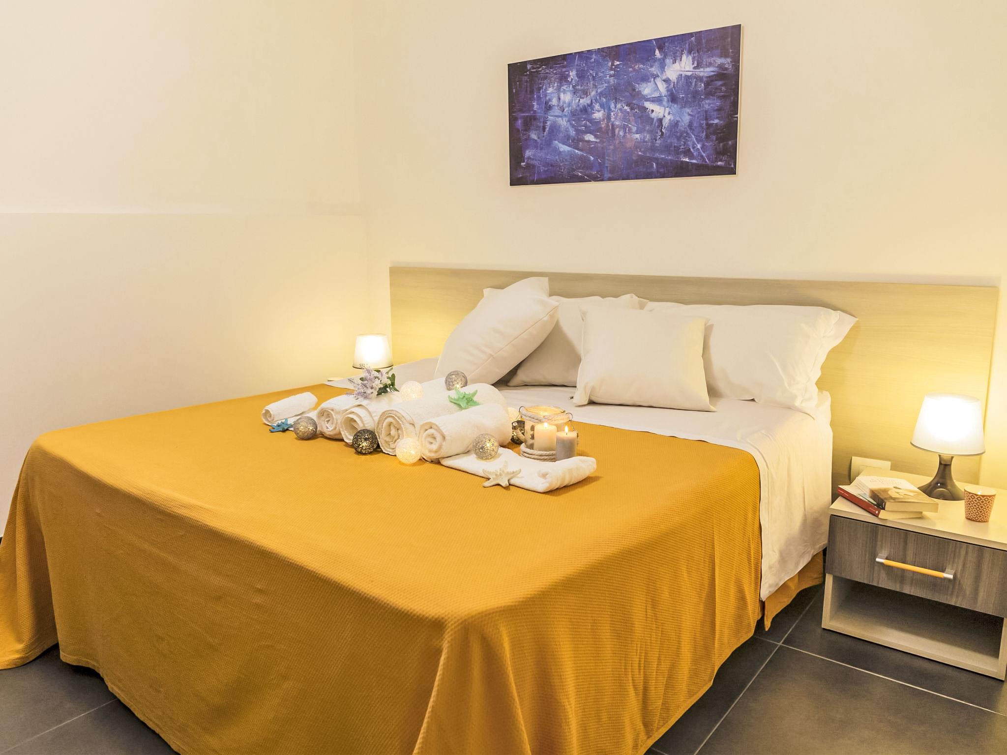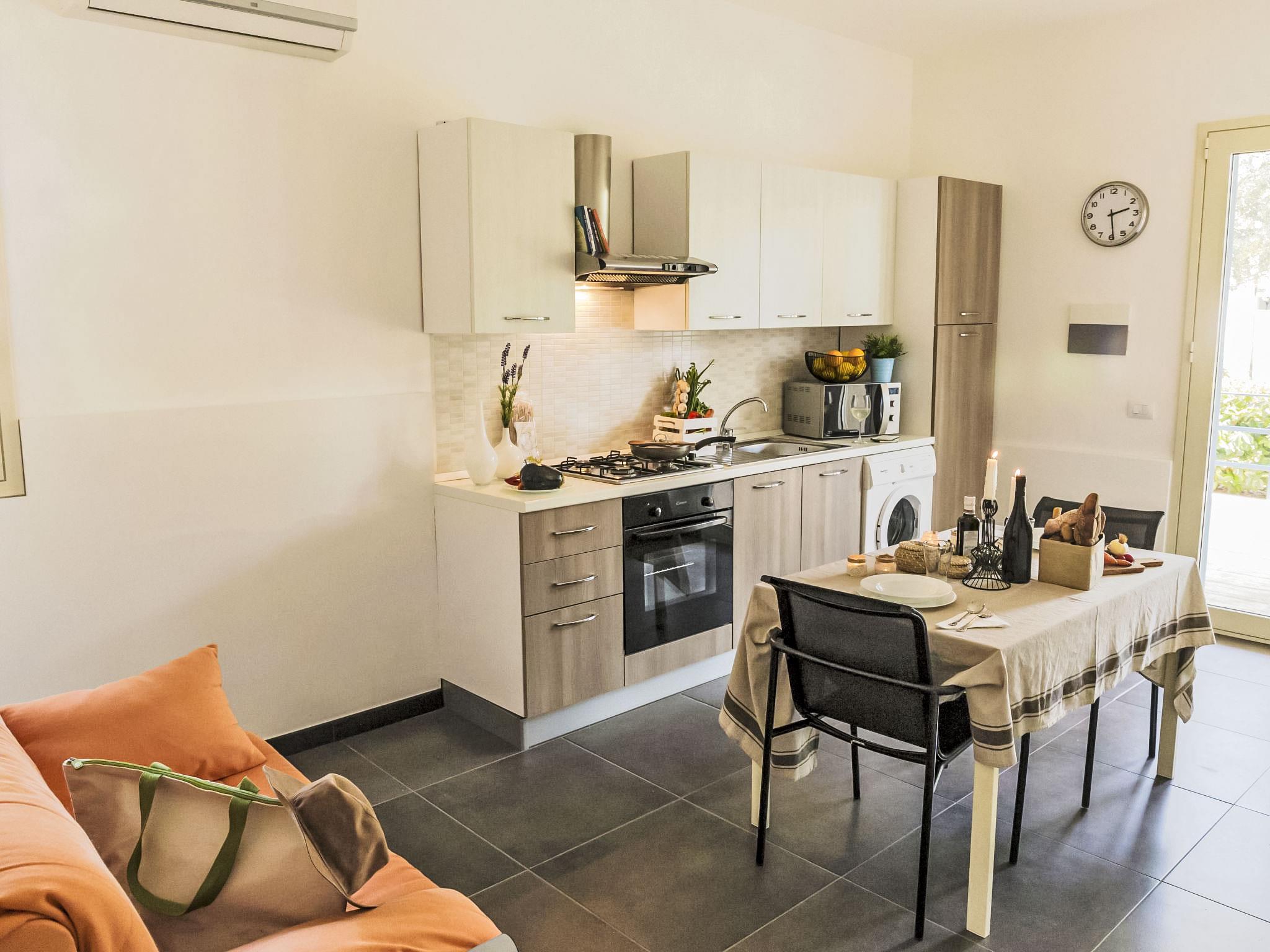 "Dammusa TerraMare", 3-room apartment 40 m2, on the ground floor. Practical and modern furnishings: living/dining room with 1 sofabed (120 cm), TV (flat screen), air conditioning and forced-air heating. Exit to the terrace. 1 double bedroom with fan. 1 room with 1 x 2 bunk beds. Kitchenette (4 hot plates, oven, microwave). Shower/bidet/WC. Heating, forced-air heating, boiler (30 litres). Heating available only from 01.12. to 31.03, Heating not available in all rooms. Large patio 80 m2, partly roofed. Terrace furniture. View of the garden. Facilities: washing machine, iron, children's high chair, baby cot for up to 2 year olds (extra), hair dryer. Internet (WiFi, free). Parking (1 car). Please note: suitable for families. Maximum 1 pet/ dog allowed. Smoke alarm, fire extinguisher. IT088011B4WQHE28LX