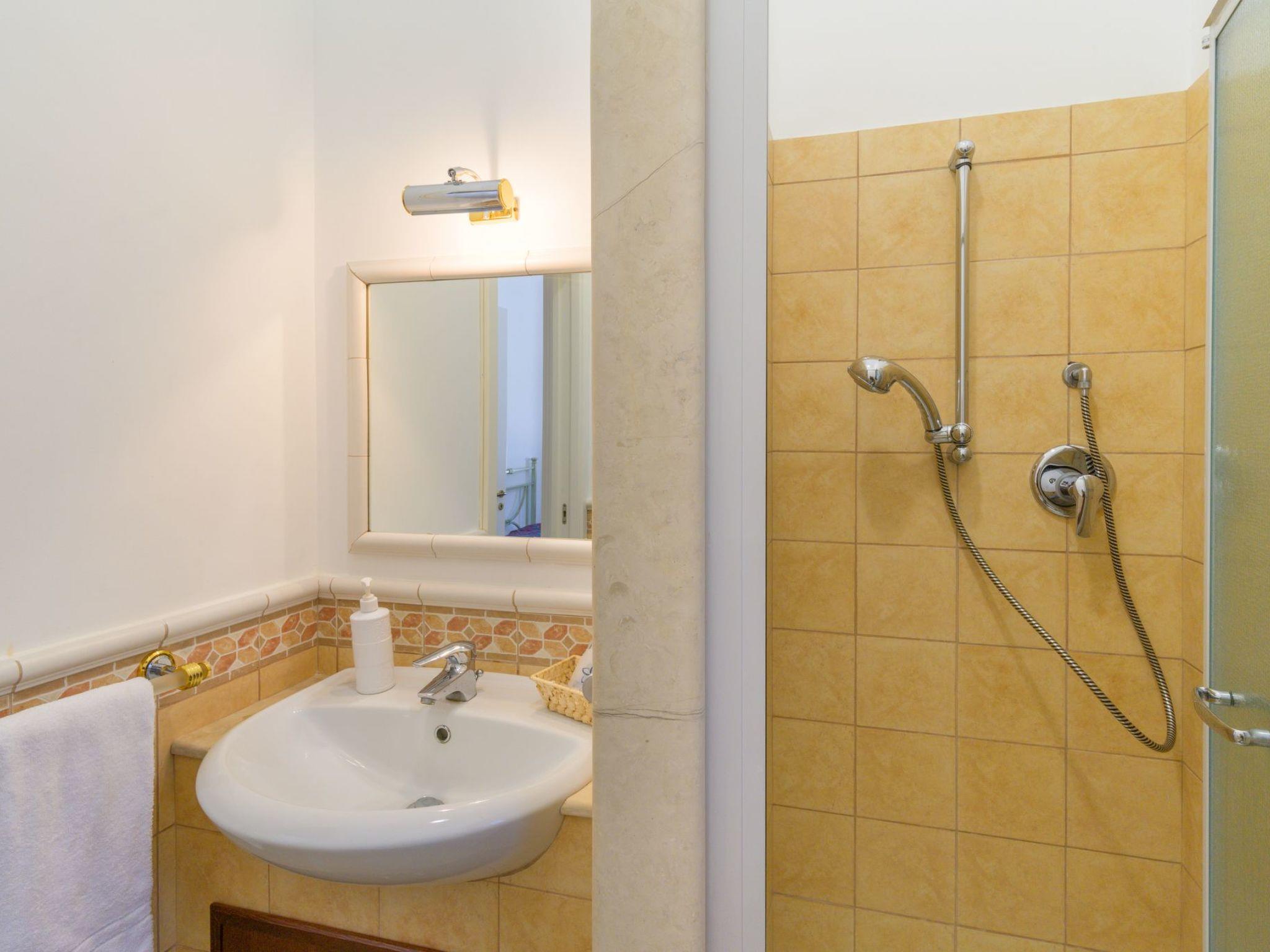 Two separate sleeping areas that can be closed by sliding doors: the first consists of a bedroom with a double bed and a bathroom with shower; the second consists of a twin bedroom (with two single beds that can be joined if necessary), a small double bedroom (with two single beds very close together, ideal for children) and a bathroom with shower.