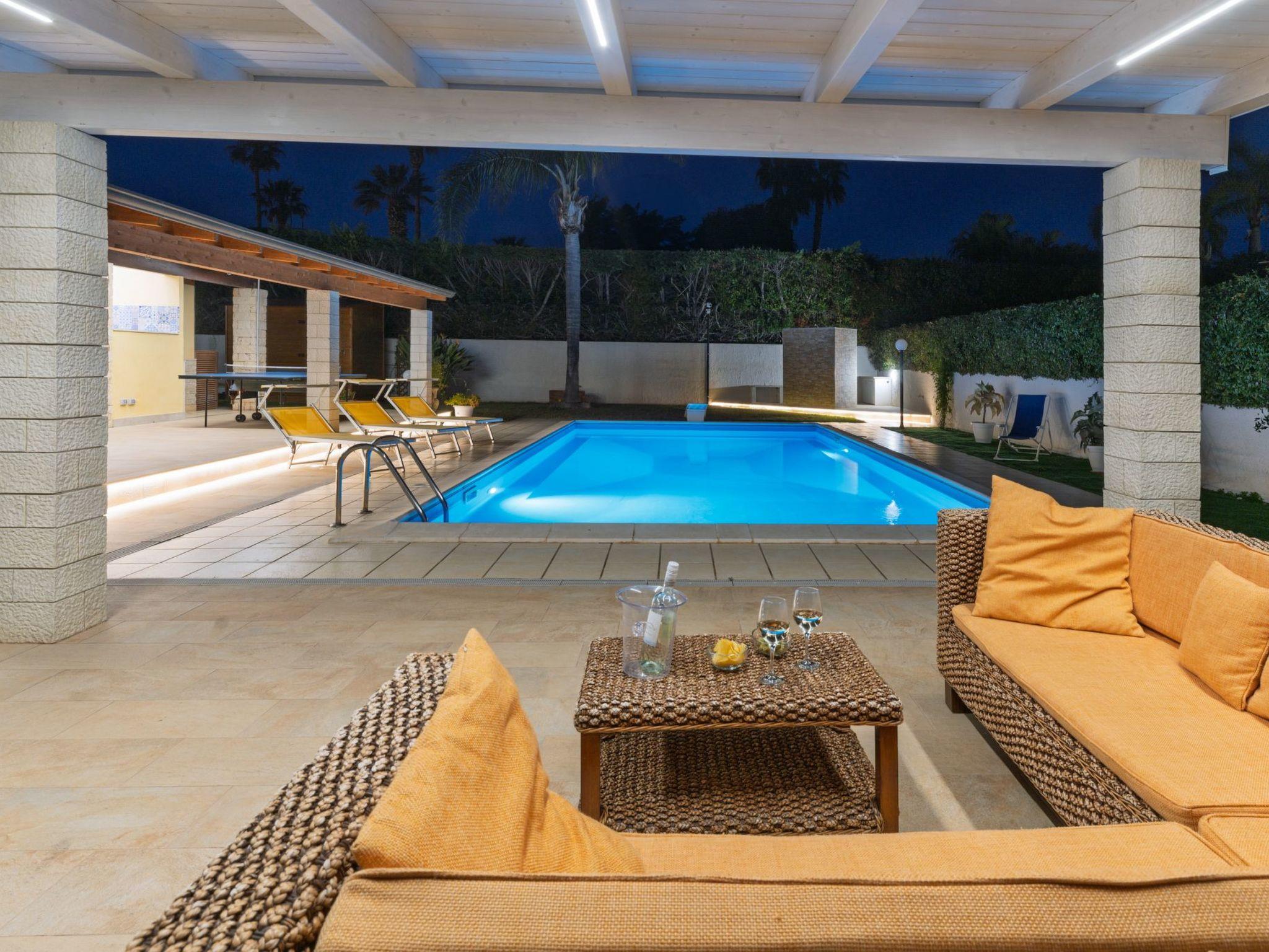 Villa with private pool and garden, in a residential area, 2 km from the sandy beach of Plaja Grande and 4 km from Donnalucata (Scicli). It has comfortable interiors and boasts large furnished terraces. It is 7 km from Marina di Ragusa and 10 km from Scicli and is ideal for couples, families or a group of friends.