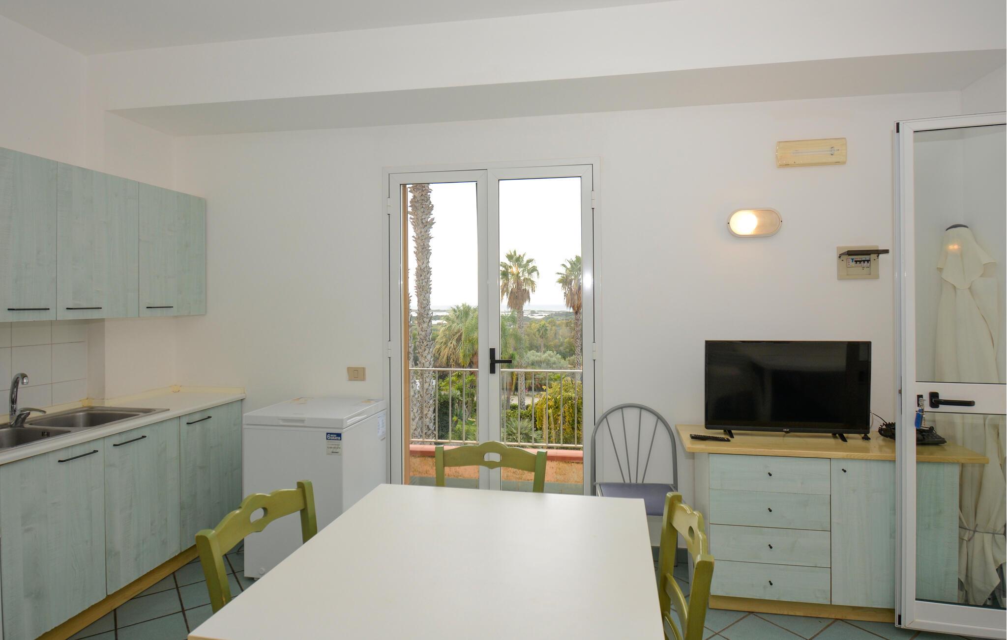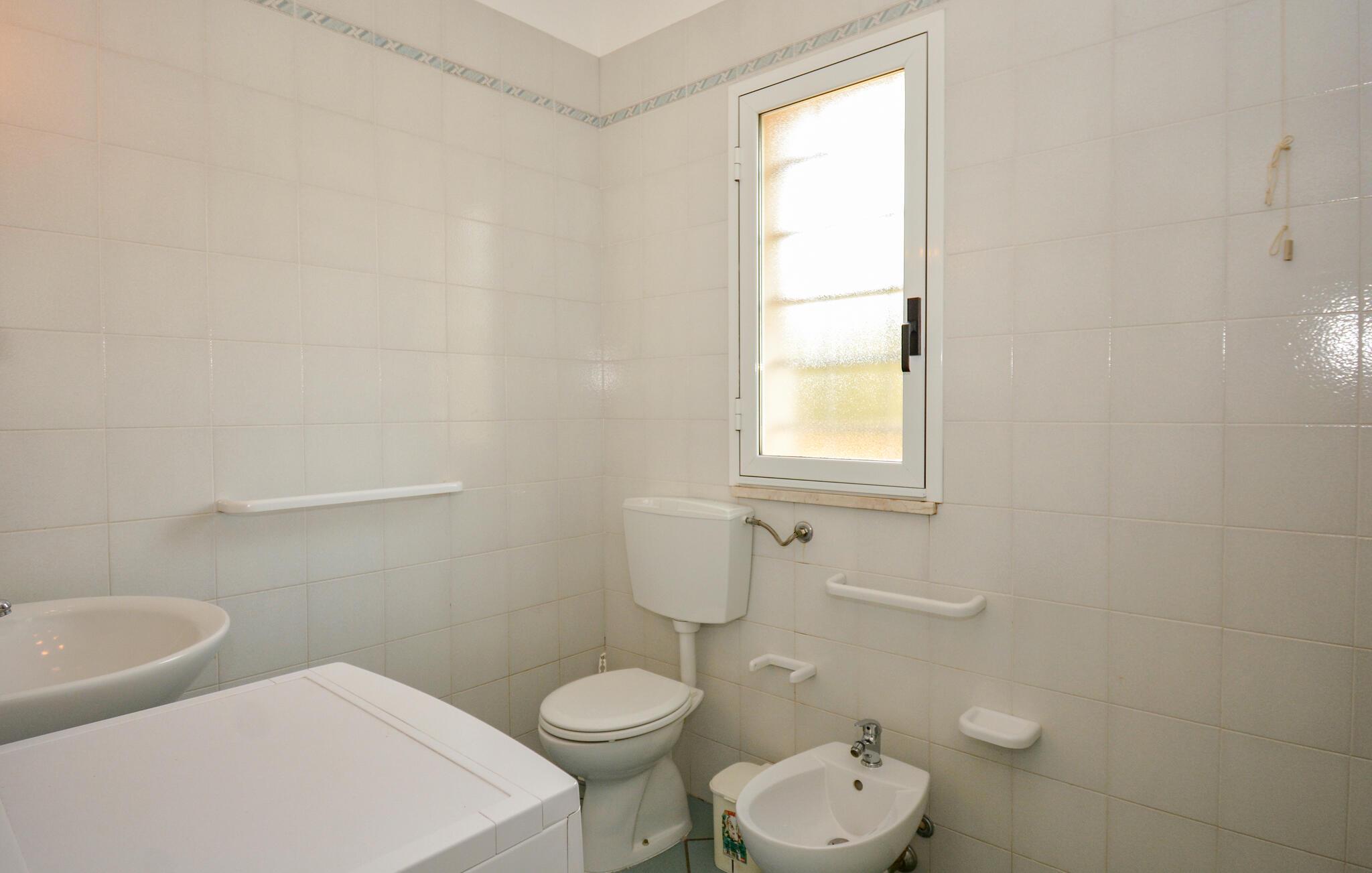 Den lyse og maritime stilen utstråler letthet og gir deg en innbydende atmosfære for et avslappende opphold. Nyt måltidene sammen i den koselige spisestuen eller på terrassen, hvor havbrisen sørger for avslappende stunder. Denne praktiske ferieleiligheten er perfekt for en bekymringsløs ferie i den solfylte regionen.