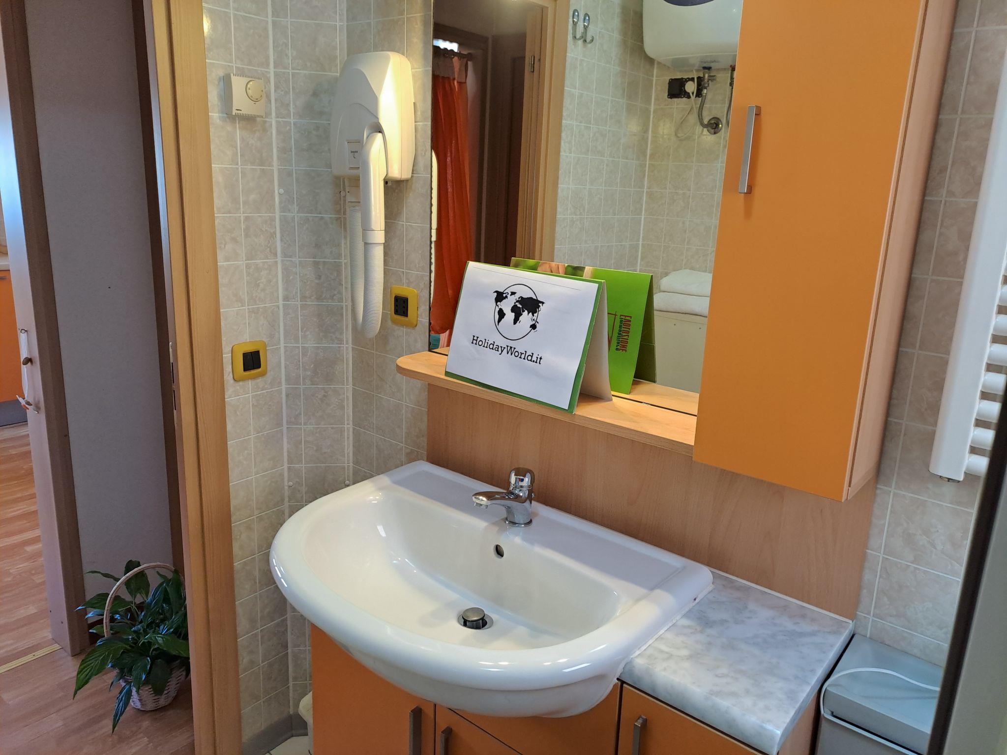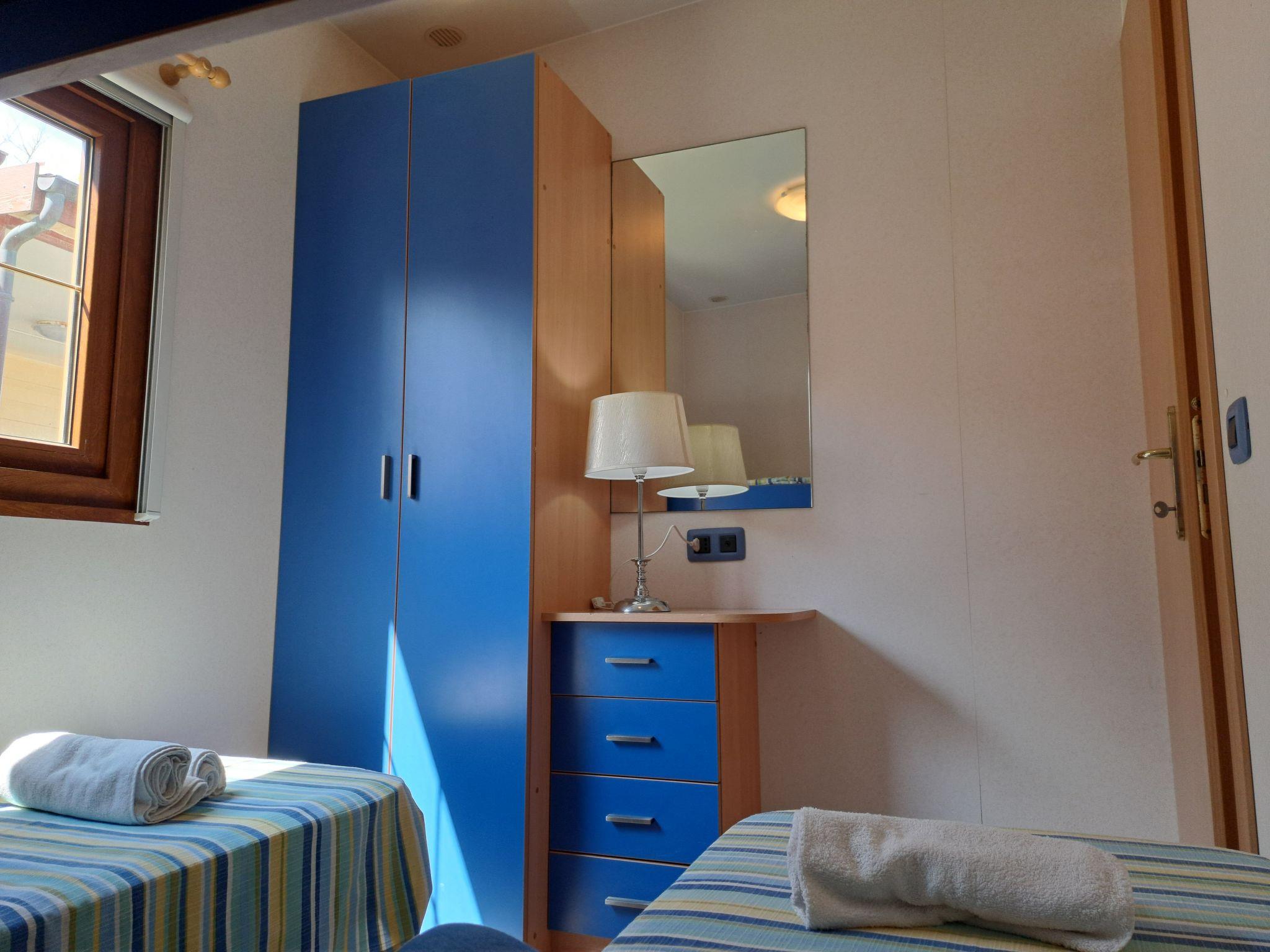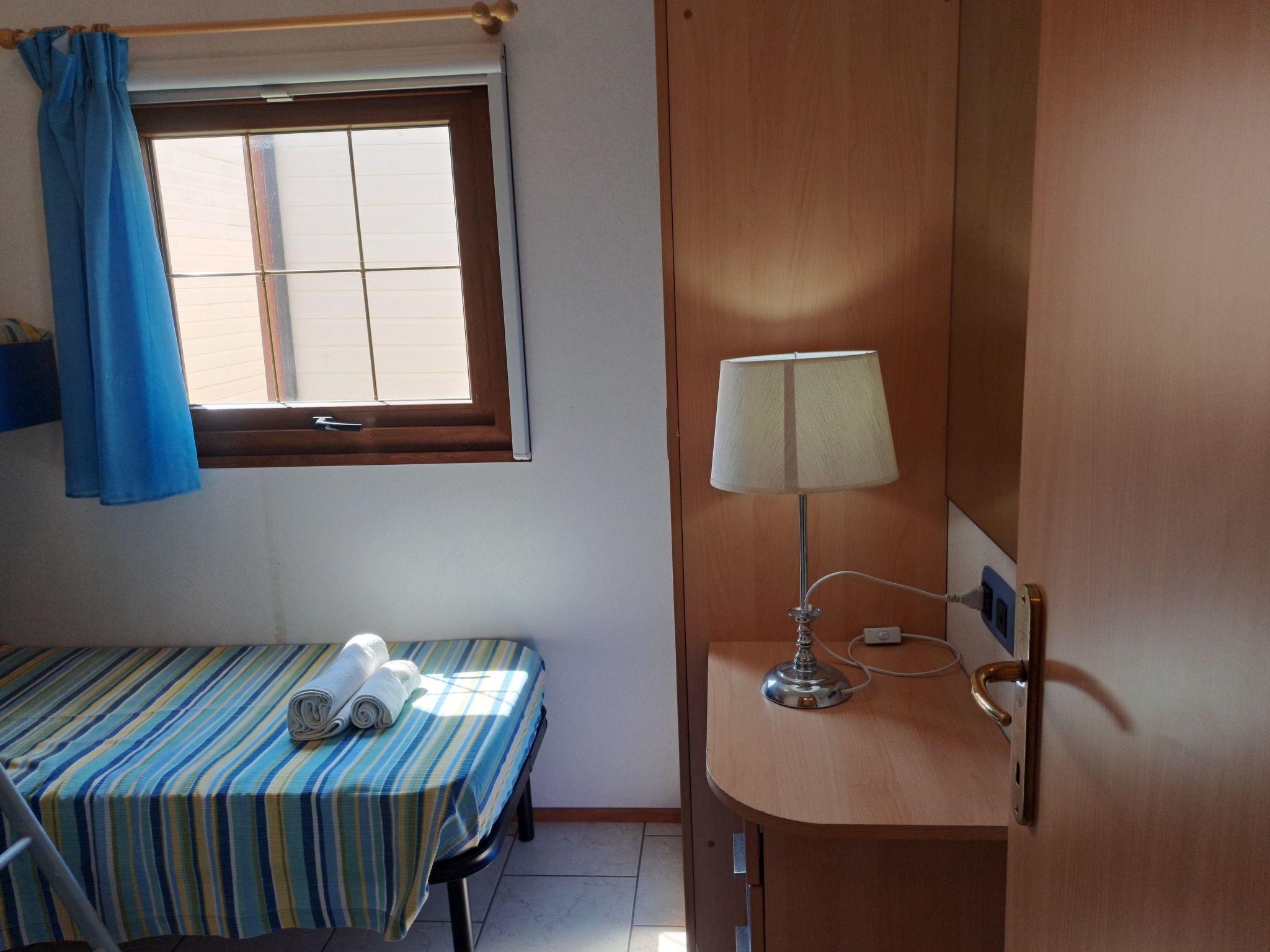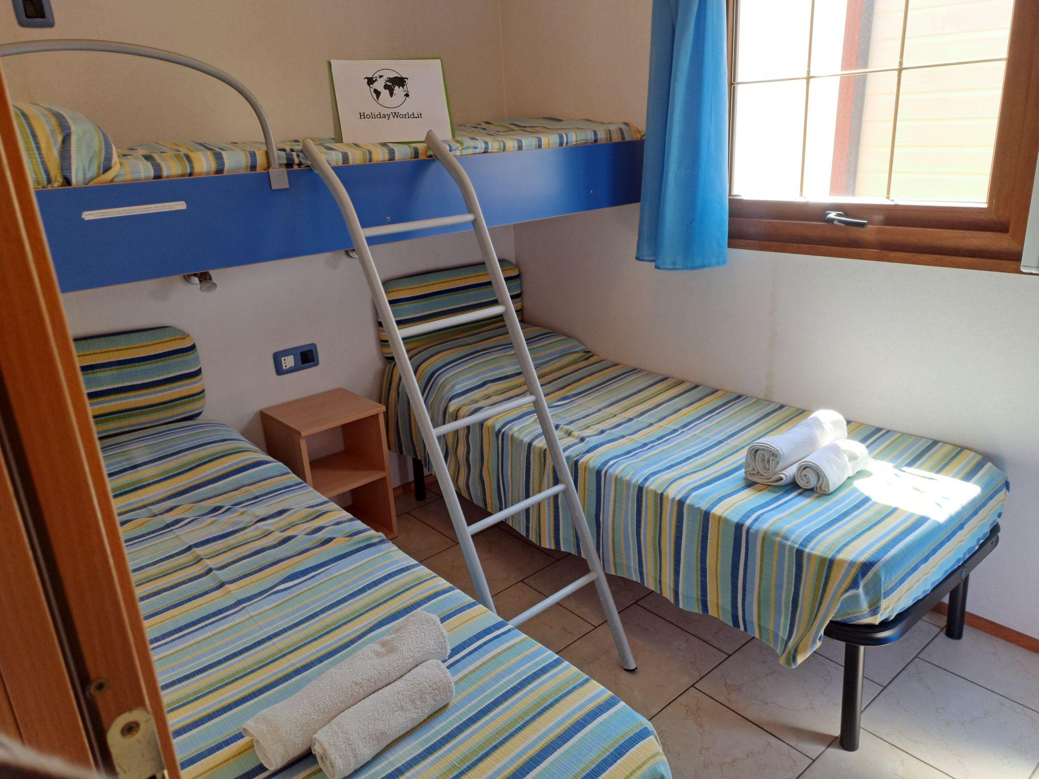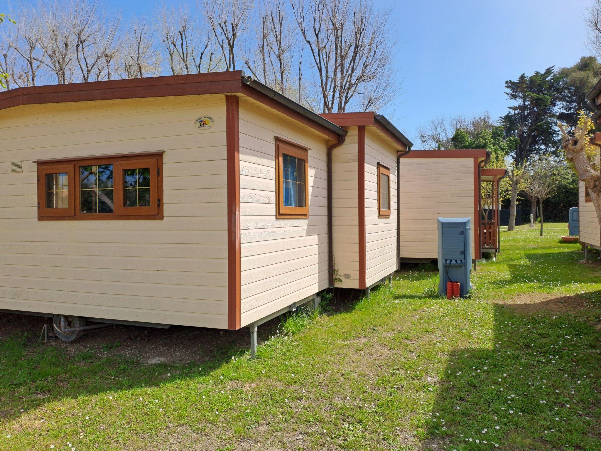 Situated along the Adriatic coast of Senigallia, within a well-equipped campsite and surrounded by greenery, the Spiaggia d'Oro cottage is the ideal choice for families with children or lovers of relaxation in the open air. At the entrance to the campsite is the reception, a large children's play area, a fenced dog run and a comfortable central bar. The campsite is divided into three main avenues. The cottage is located in the right-hand avenue, in a reserved but well-serviced position. The accommodation opens onto a lovely private veranda furnished with table and chairs, perfect for al fresco dining or relaxing. Inside, there is a living room with an equipped kitchenette, a comfortable corner sofa, dining table and a TV area with refrigerator. The sleeping area is designed for comfort and practicality; there is a double bedroom and a twin bedroom with a transverse bunk bed. A private bathroom with shower and bidet completes the accommodation. The house is air-conditioned thanks to a hot/cold heat pump, with the possibility of adding air conditioning at an extra charge.