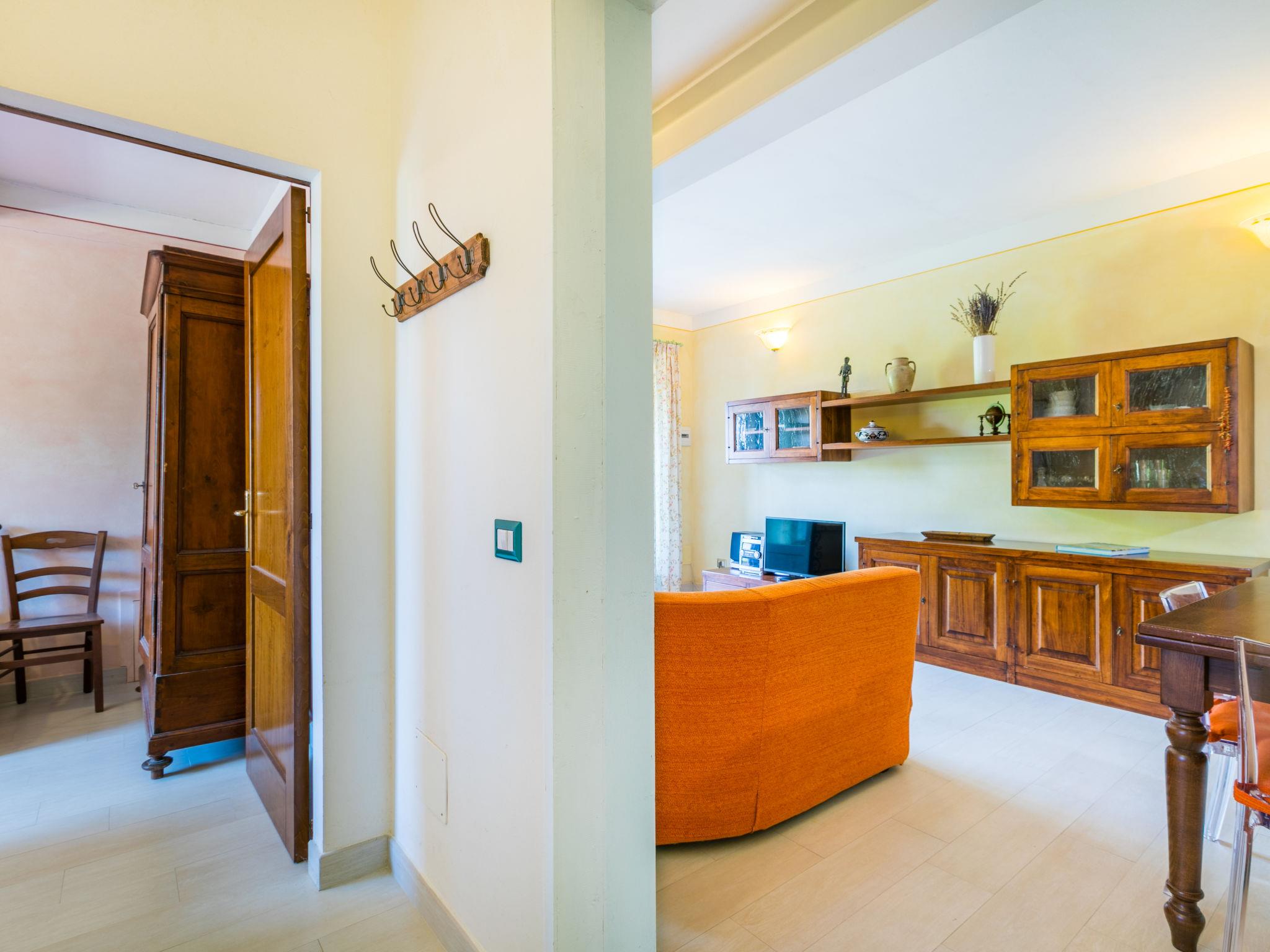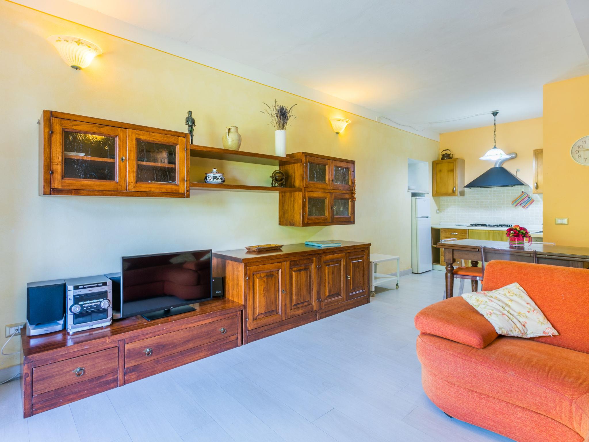"L'Oliviera", 3-room house 60 m2, on the ground floor. Spacious, practical and cosy furnishings: open large living/dining room with satellite TV (flat screen), air conditioning. Exit to the garden. 1 double bedroom. 1 room with 2 beds (80 cm). Open kitchen (4 induction hot plates, toaster, kettle, microwave, freezer, electric coffee machine). Shower/bidet/WC. Heating (extra), air-conditioning (extra). Natural stone floors. Terrace roofed, large garden. Terrace furniture, barbecue. Very beautiful panoramic view of the countryside. Facilities: washing machine, children's high chair, baby cot for up to 2 year olds, hair dryer. Internet (WiFi, free). Parking at the house. Please note: suitable for families. Non-smokers only. IT052032C2PFN9NPY9