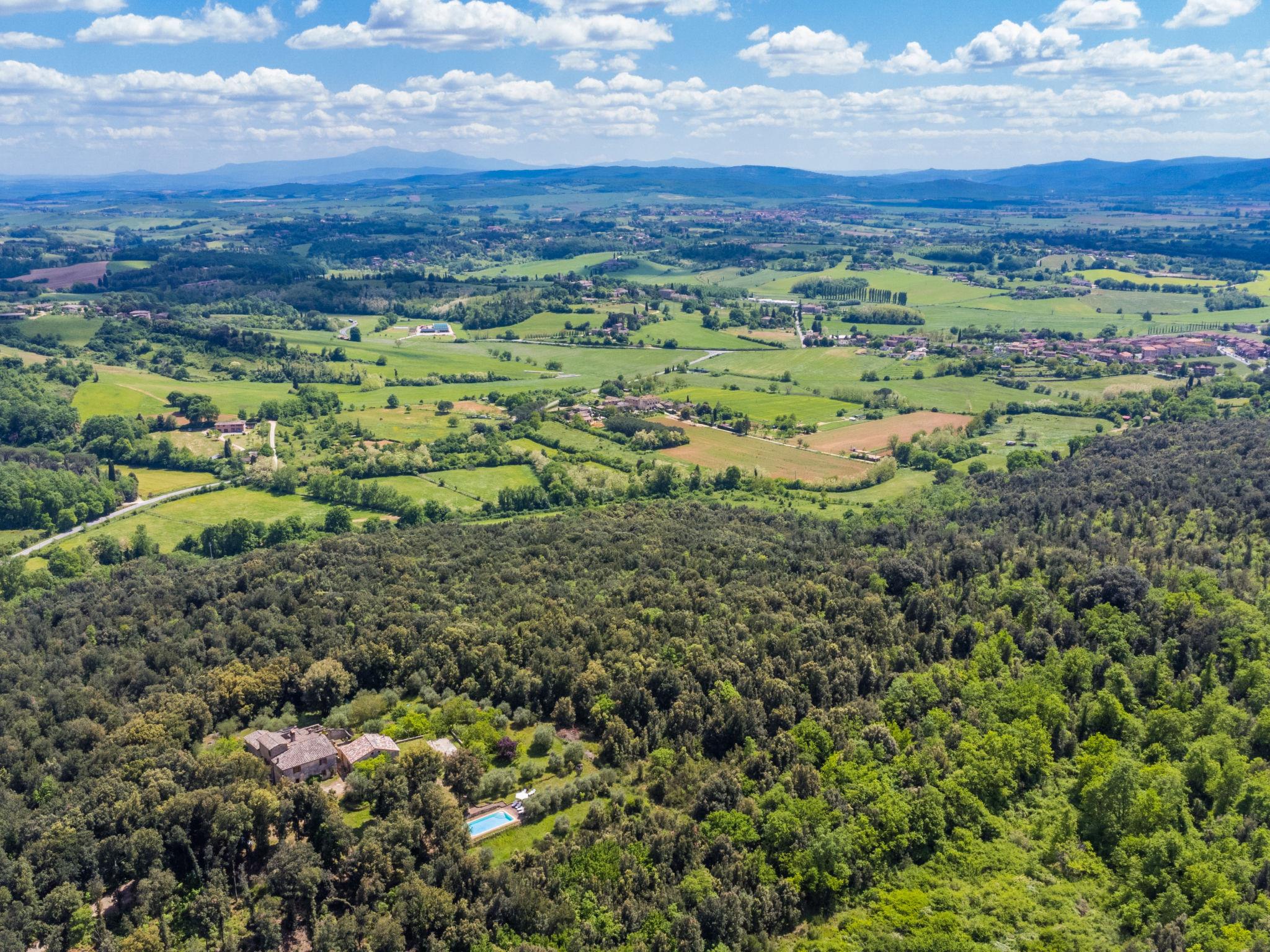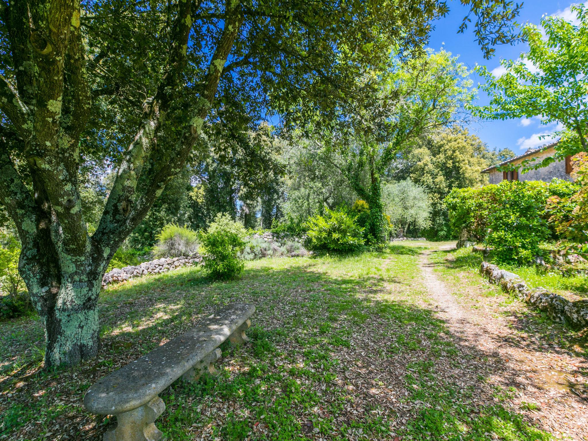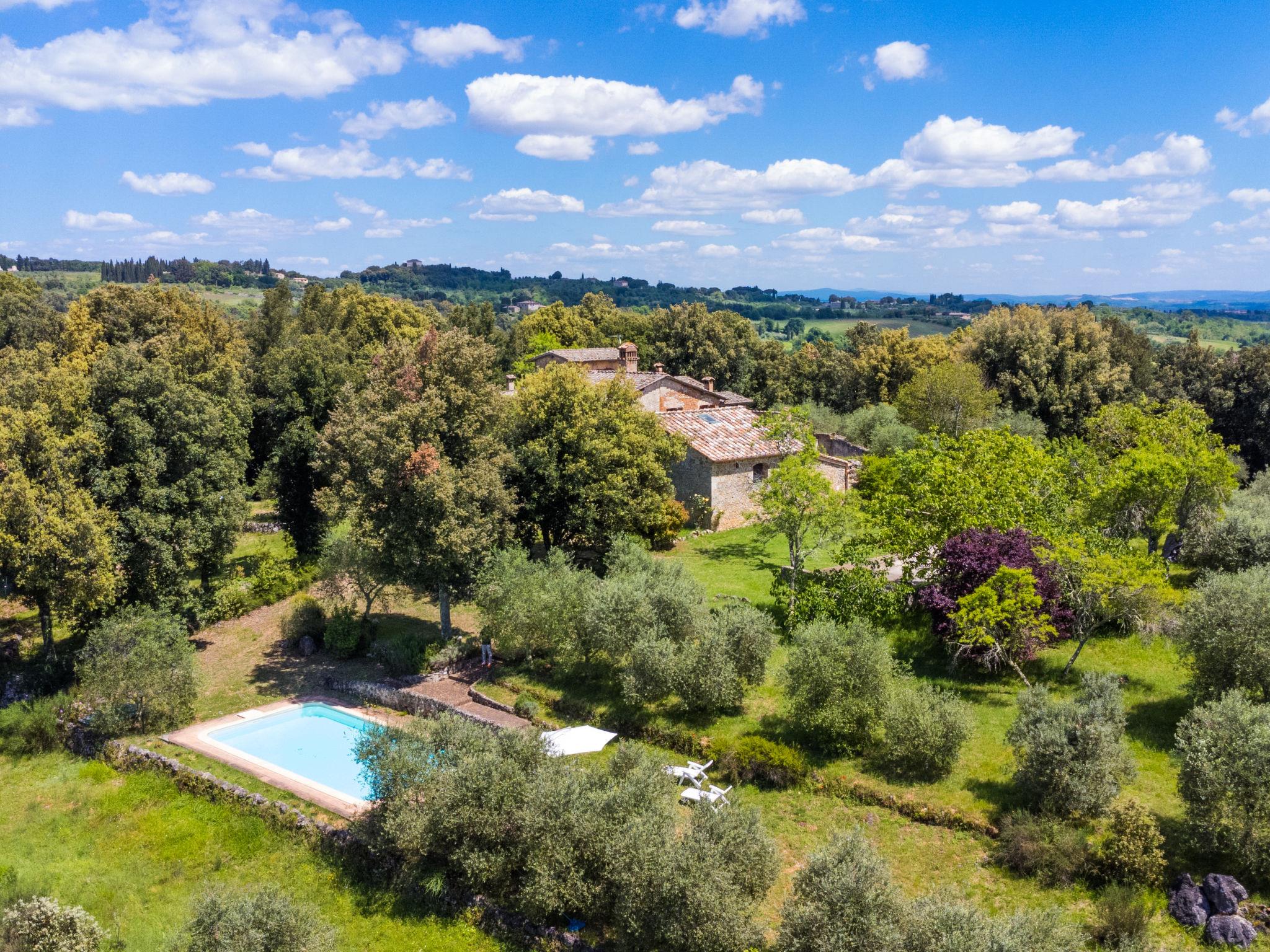Large, rustic cottage "Casino di Lecceto", 400 m a.s.l., 3 storeys, detached, surrounded by trees. 8 km from the centre of Siena, 80 km from the centre of Florenz, 50 km from the centre of San Gimignano, in a secluded position on top of a hill, 100 m from the edge of the forest, 80 km from the sea, in the countryside, in the woods. Private: natural state property 2 ha (fenced), garden with wildlife garden and trees, natural garden, meadow, courtyard, swimming pool (10 x 5 m, seasonal availability: 24.Apr. - 04.Oct.). Terrace, garden furniture, barbecue, pool maintenance by the owner/gardener. 400 m long very bumpy motor access to the house (via unmade road). 4x4 car recommended in winter. Parking at the house on the premises. Grocery 1 km, supermarket 5 km, restaurant 2 km, bus stop 2 km, railway station "Siena" 8 km, sandy beach "Follonica" 80 km, thermal baths "Rapolano Terme" 37 km. Golf course (18 hole) 16 km, walking paths from the house 1 km. Nearby attractions: former hermitage, frescoes 15th century 1 km, Monteriggioni 14 km, San Galgano 28 km, Volterra 50 km. Please note: baby equipment (included). Groups of teenagers on request only. Part of the house is closed and unoccupied. The tap water has no drinking water quality.