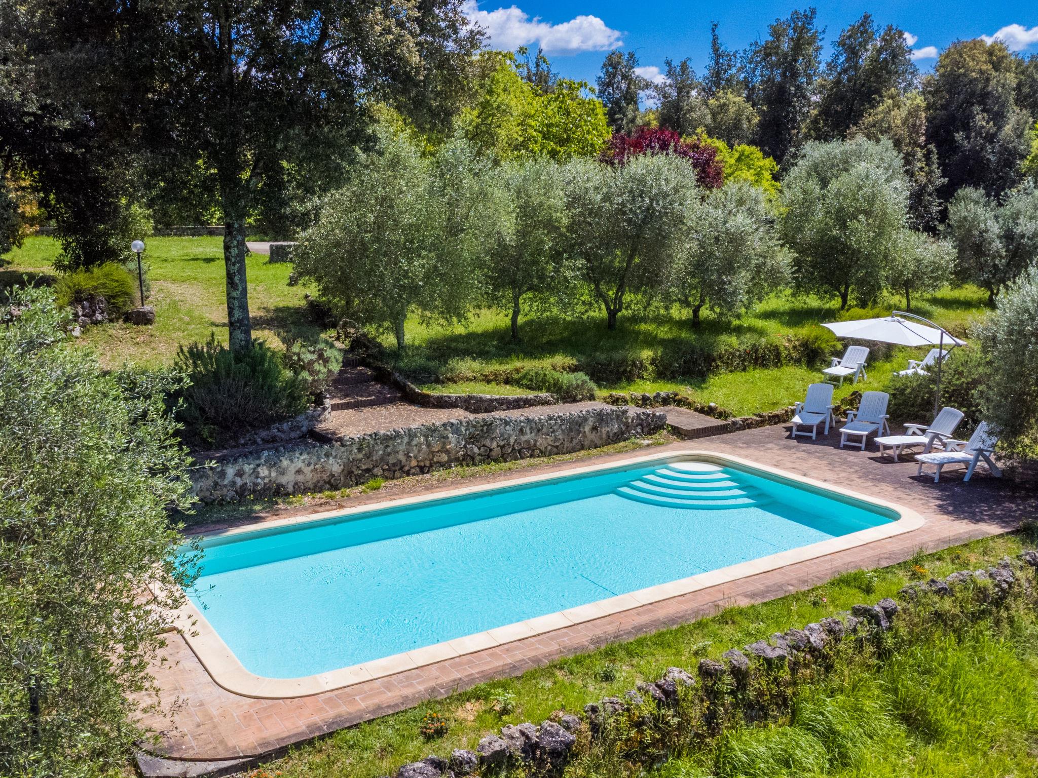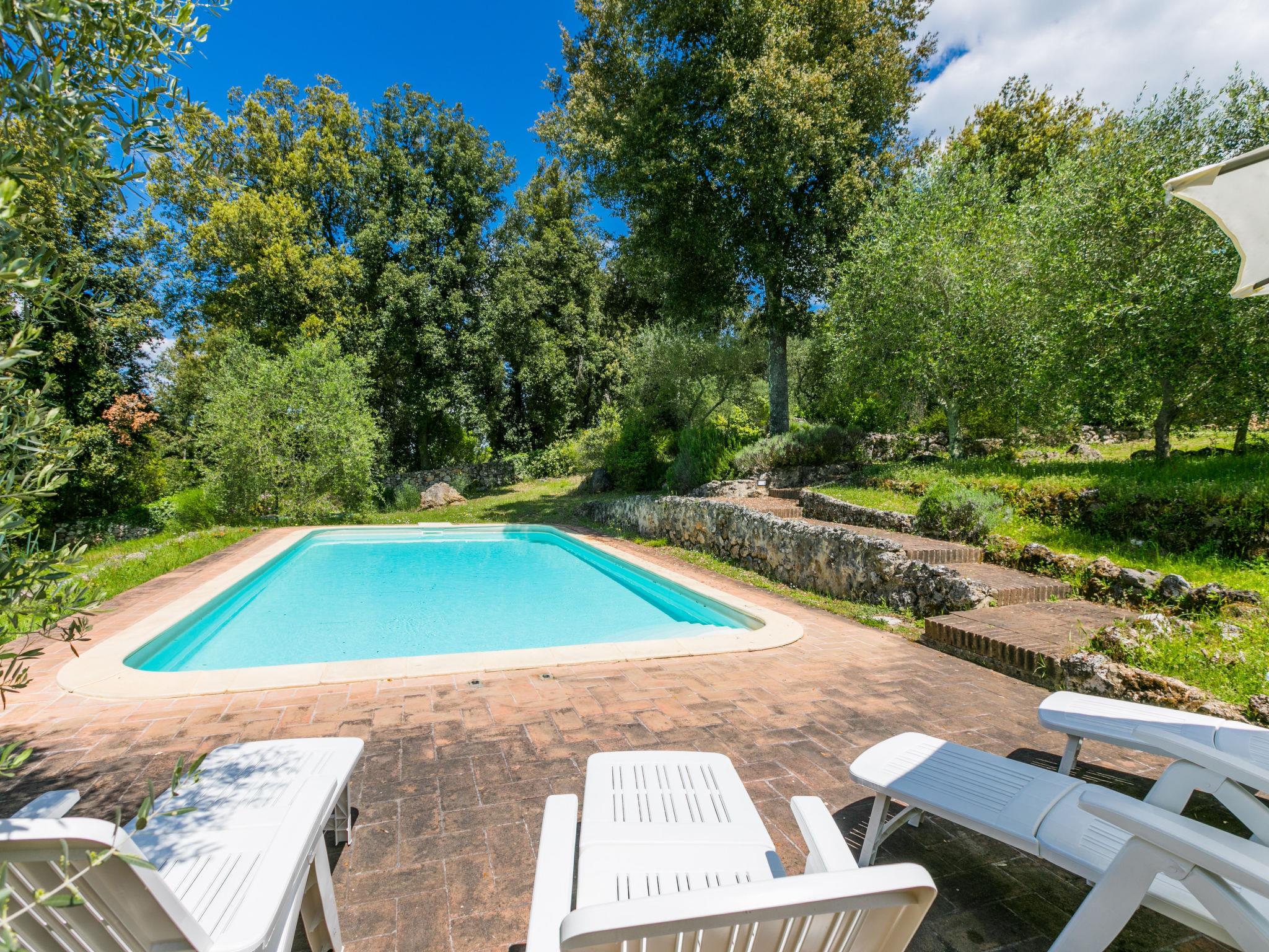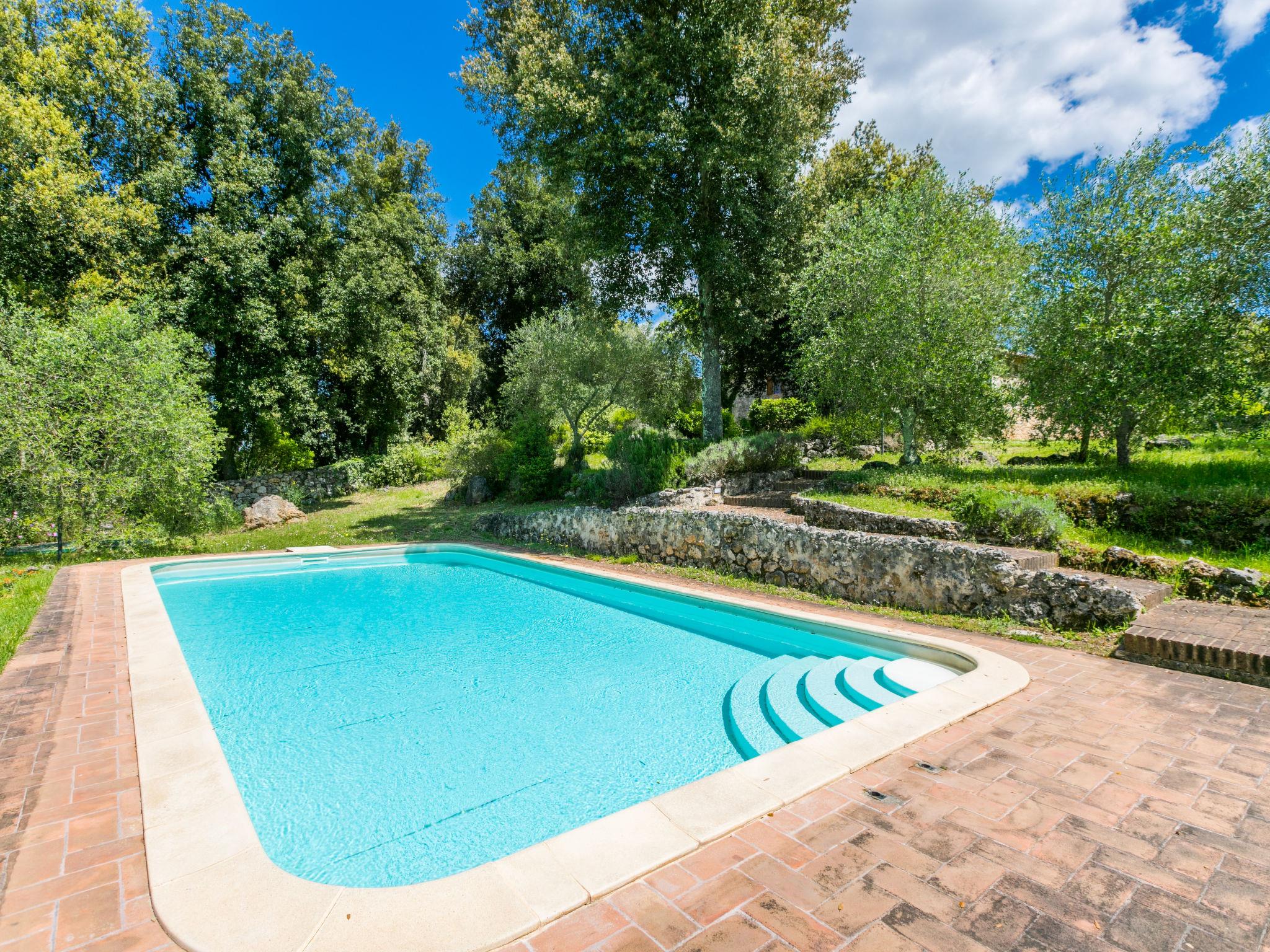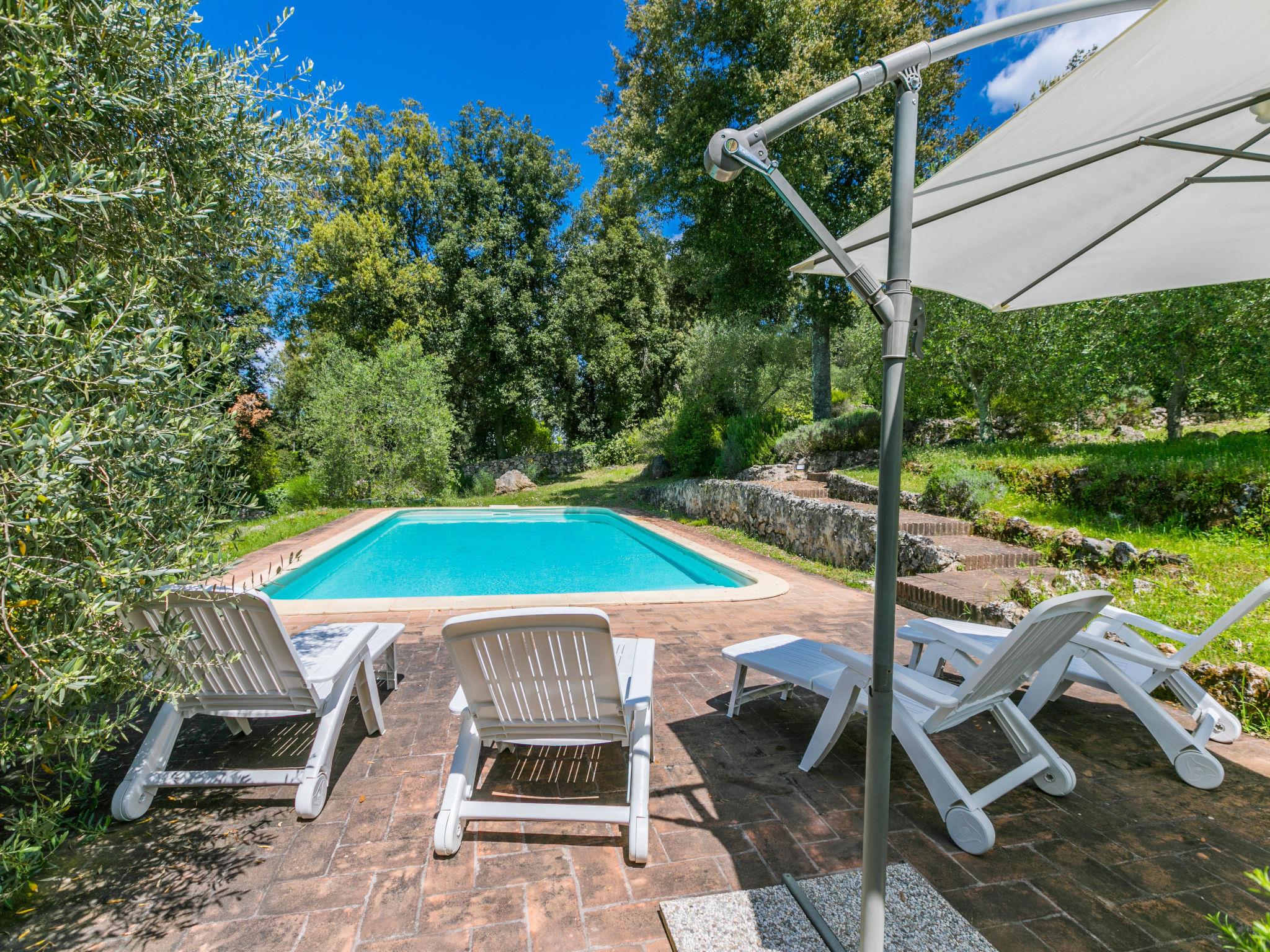 Large, rustic cottage "Casino di Lecceto", 400 m a.s.l., 3 storeys, detached, surrounded by trees. 8 km from the centre of Siena, 80 km from the centre of Florenz, 50 km from the centre of San Gimignano, in a secluded position on top of a hill, 100 m from the edge of the forest, 80 km from the sea, in the countryside, in the woods. Private: natural state property 2 ha (fenced), garden with wildlife garden and trees, natural garden, meadow, courtyard, swimming pool (10 x 5 m, seasonal availability: 24.Apr. - 04.Oct.). Terrace, garden furniture, barbecue, pool maintenance by the owner/gardener. 400 m long very bumpy motor access to the house (via unmade road). 4x4 car recommended in winter. Parking at the house on the premises. Grocery 1 km, supermarket 5 km, restaurant 2 km, bus stop 2 km, railway station "Siena" 8 km, sandy beach "Follonica" 80 km, thermal baths "Rapolano Terme" 37 km. Golf course (18 hole) 16 km, walking paths from the house 1 km. Nearby attractions: former hermitage, frescoes 15th century 1 km, Monteriggioni 14 km, San Galgano 28 km, Volterra 50 km. Please note: baby equipment (included). Groups of teenagers on request only. Part of the house is closed and unoccupied. The tap water has no drinking water quality.