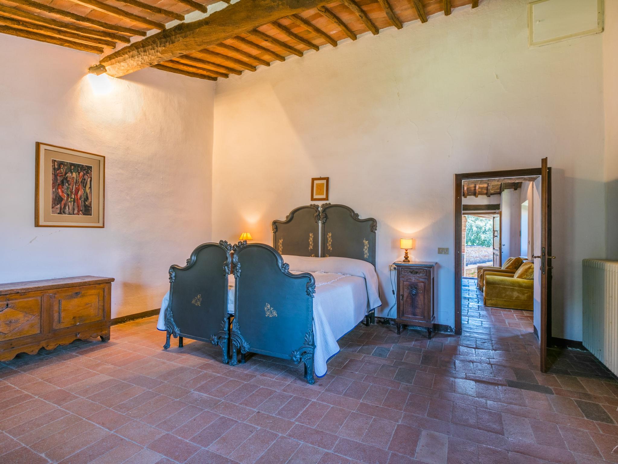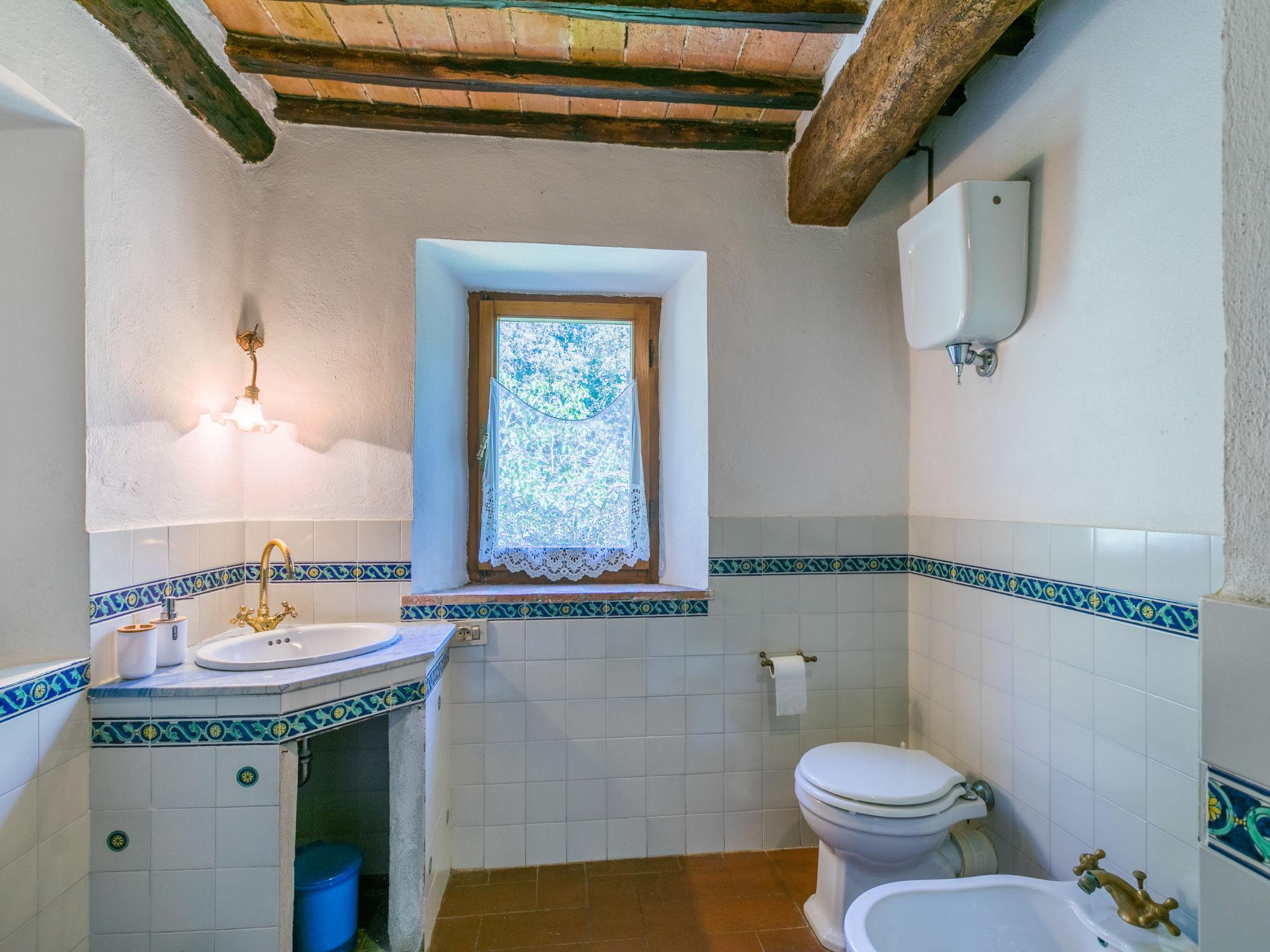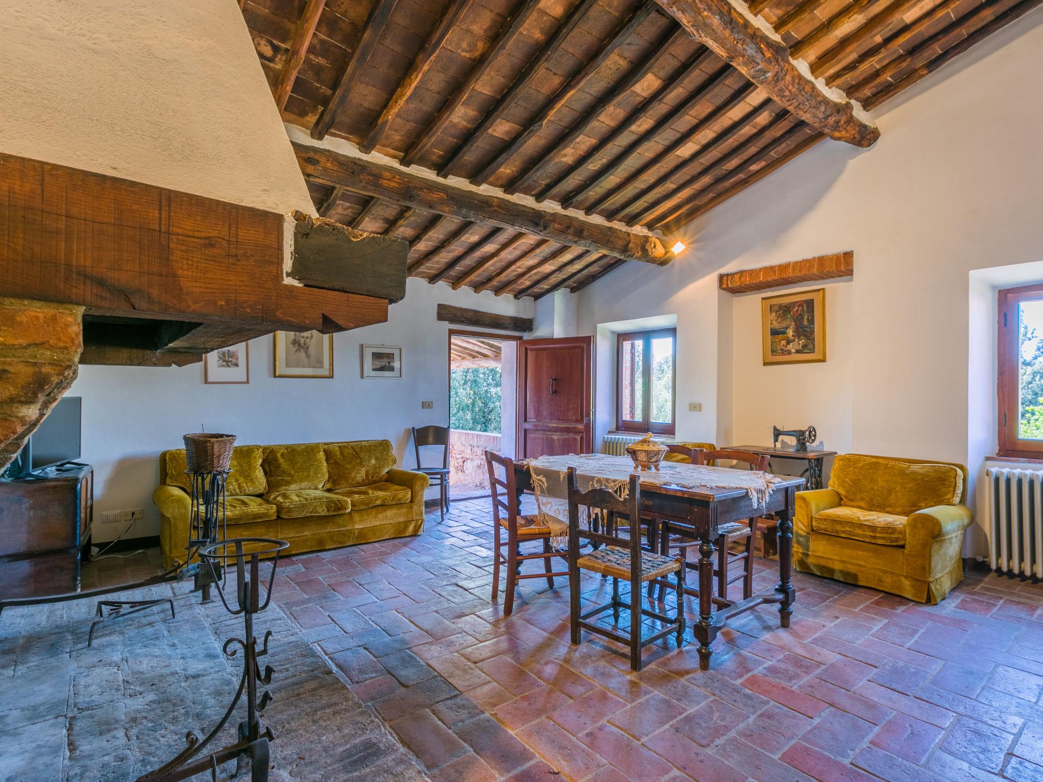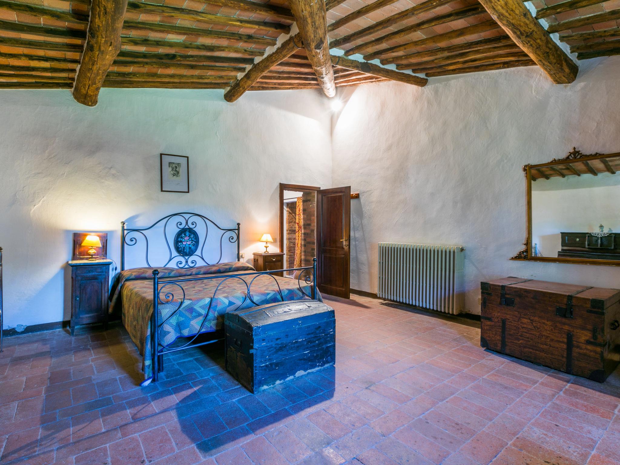 "Casino di Lecceto", 6-room house 250 m2 on 3 levels. Spacious, rustic and antique furnishings: large living/dining room with open-hearth fireplace, dining table and TV. Exit to the garden, to the terrace. Large kitchen (oven, dishwasher, 4 gas rings, toaster, kettle, freezer, electric coffee machine) with dining table. Exit to the loggia. Shower/bidet/WC. Upper floor: living/dining room with open-hearth fireplace and dining table. Exit to the loggia. 1 room with 2 beds. 2 double bedrooms. Bath/bidet/WC, shower/bidet/WC. 2nd upper floor: 1 room with 2 beds. Gas heating (extra). Natural stone floors. Small terrace roofed, patio. Terrace furniture, barbecue, deck chairs, covered balcony, box-room. Facilities: washing machine, children's high chair, baby cot for up to 2 year olds, hair dryer. Internet (WiFi, free). Parking at the house. Please note: non-smokers only. The pool mentioned in the description is for private use. IT052032C2CUAQHV2V