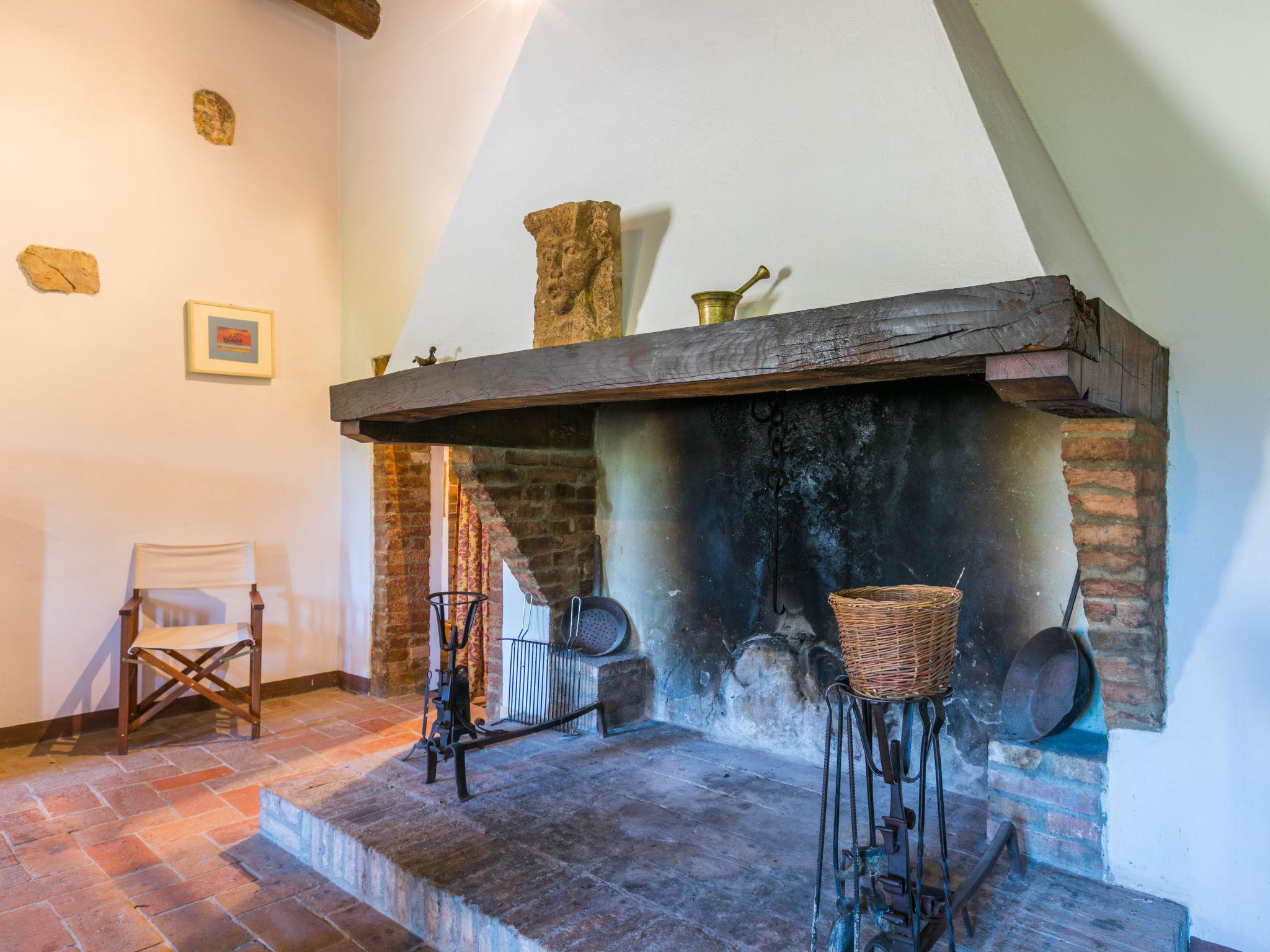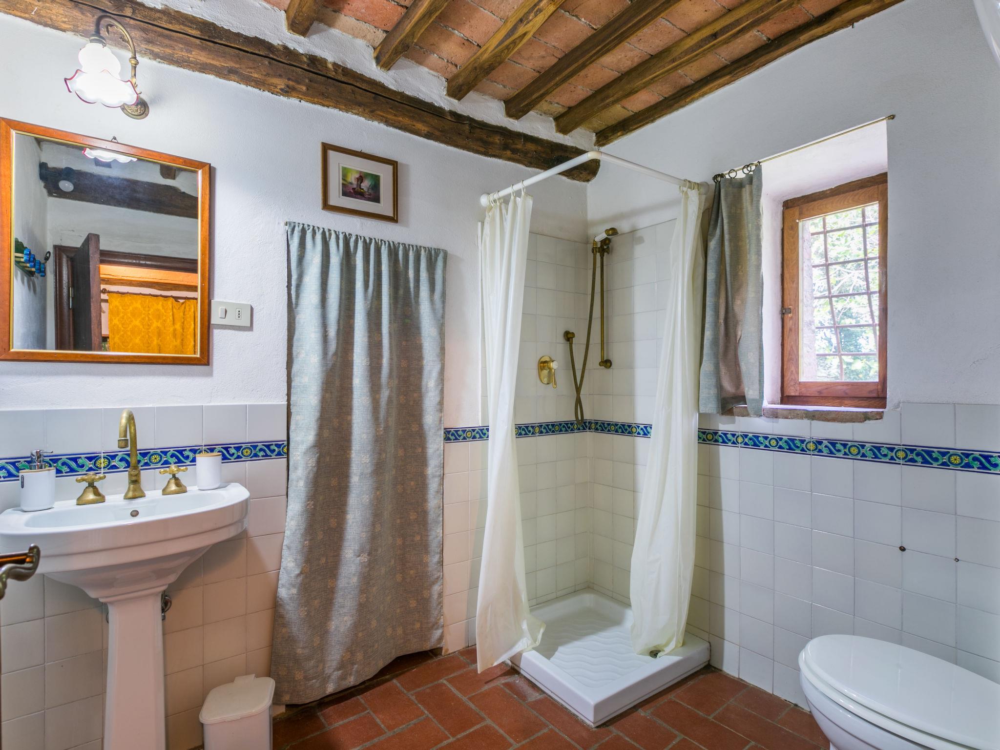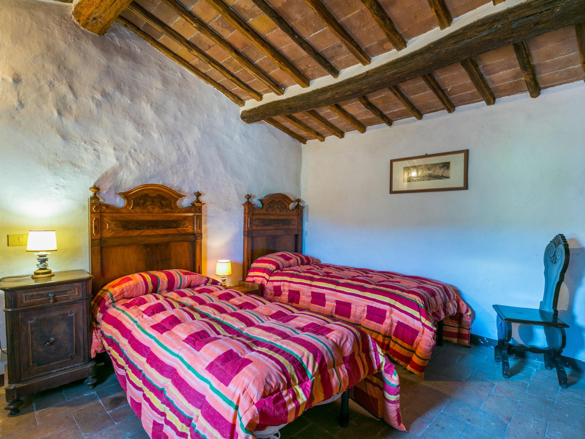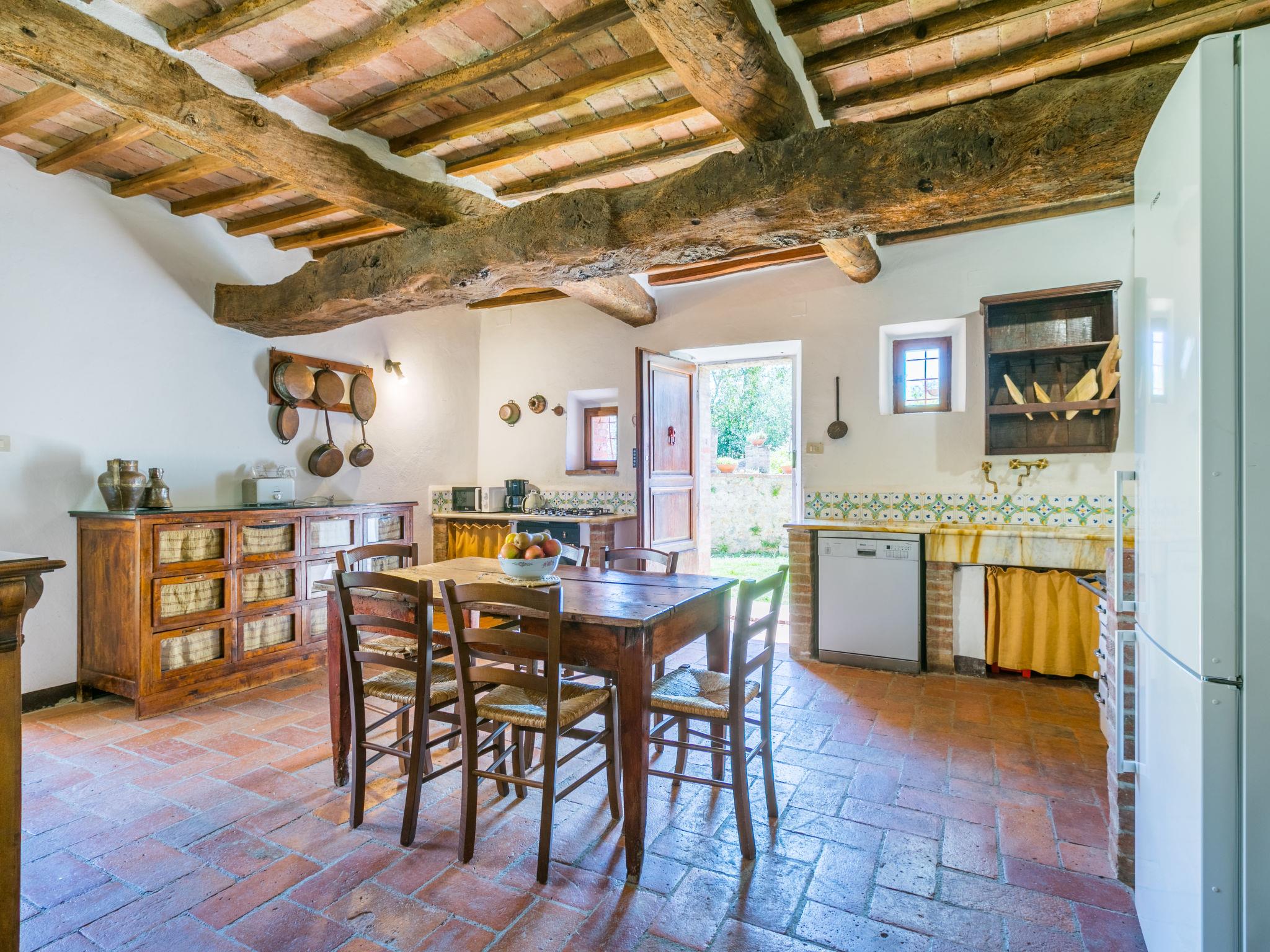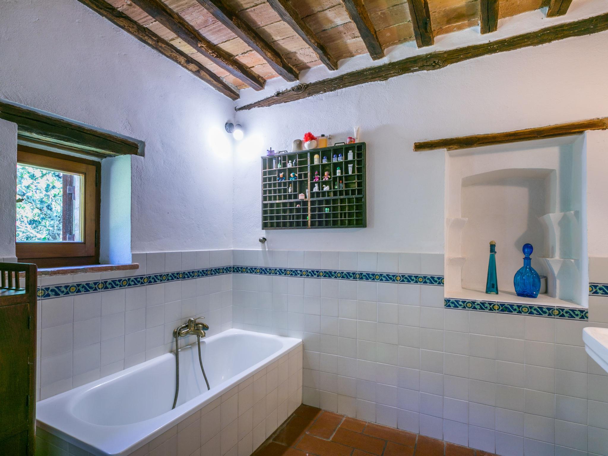 "Casino di Lecceto", 6-room house 250 m2 on 3 levels. Spacious, rustic and antique furnishings: large living/dining room with open-hearth fireplace, dining table and TV. Exit to the garden, to the terrace. Large kitchen (oven, dishwasher, 4 gas rings, toaster, kettle, freezer, electric coffee machine) with dining table. Exit to the loggia. Shower/bidet/WC. Upper floor: living/dining room with open-hearth fireplace and dining table. Exit to the loggia. 1 room with 2 beds. 2 double bedrooms. Bath/bidet/WC, shower/bidet/WC. 2nd upper floor: 1 room with 2 beds. Gas heating (extra). Natural stone floors. Small terrace roofed, patio. Terrace furniture, barbecue, deck chairs, covered balcony, box-room. Facilities: washing machine, children's high chair, baby cot for up to 2 year olds, hair dryer. Internet (WiFi, free). Parking at the house. Please note: non-smokers only. The pool mentioned in the description is for private use. IT052032C2CUAQHV2V