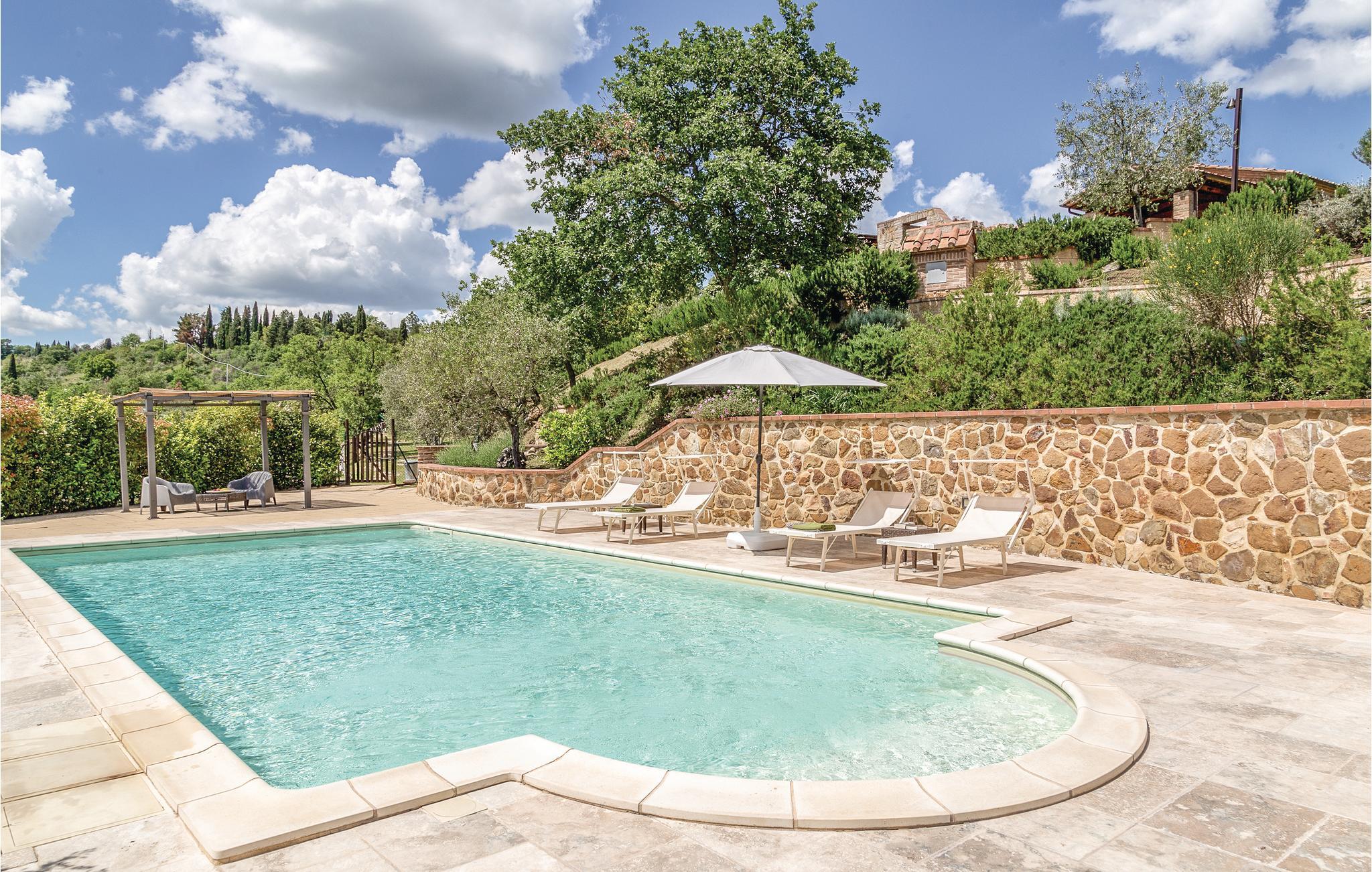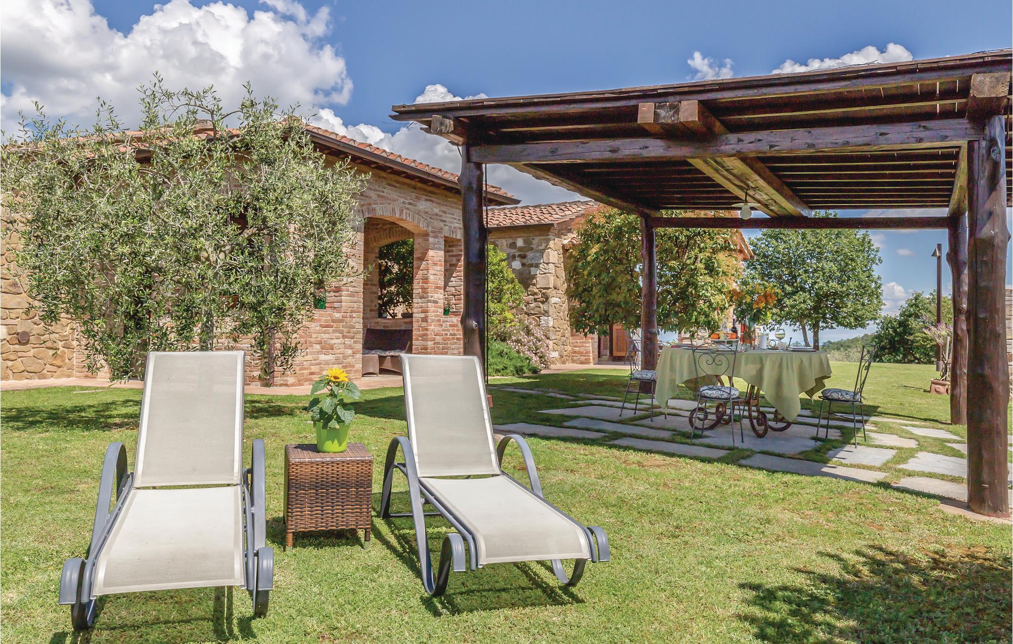 Koselig, smakfullt innredet feriehus i en dominerende og rolig beliggenhet i åssiden, ca 7 km fra Sinalunga. Foran feriehuset er det en overbygd terrasse, litt nedenfor på den romslige eiendommen ligger bassengområdet. Her er du virkelig helt for deg selv - ideell for avslapning, fotturer, surfing. Nyt soloppgangen i øst med en kopp kaffe og kveldsgløden fra solnedgangen i vest med et glass vin på terrassen din. Samtidig er feriehuset et strategisk utgangspunkt for mange verdifulle utfluktsmål: Siena (40 km), Arezzo (25 km), Montepulciano (20 km), Pienza (25 km) og Trasimenosjøen (55 km) er like lett å nå - pluss de varme termiske badene i Rapolano bare 10 km unna, hvor bading og velvære er morsomt hele året. Benytt anledningen til å nyte det deilige typiske kjøkkenet i dette området, eller de lokale vinene i de mange restaurantene.