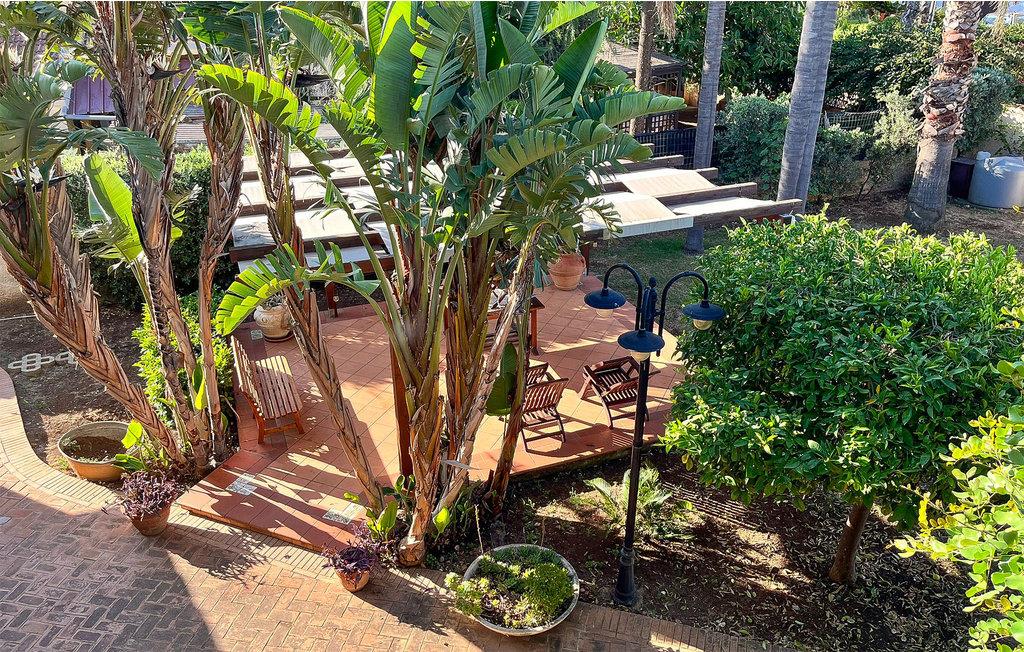 Gå ut på balkongen og nyt den uforstyrrede utsikten over husene og havet. Husets uteområde er preget av middelhavsvegetasjon, som er spredt rundt stiene og de små sittegruppene i hagen.