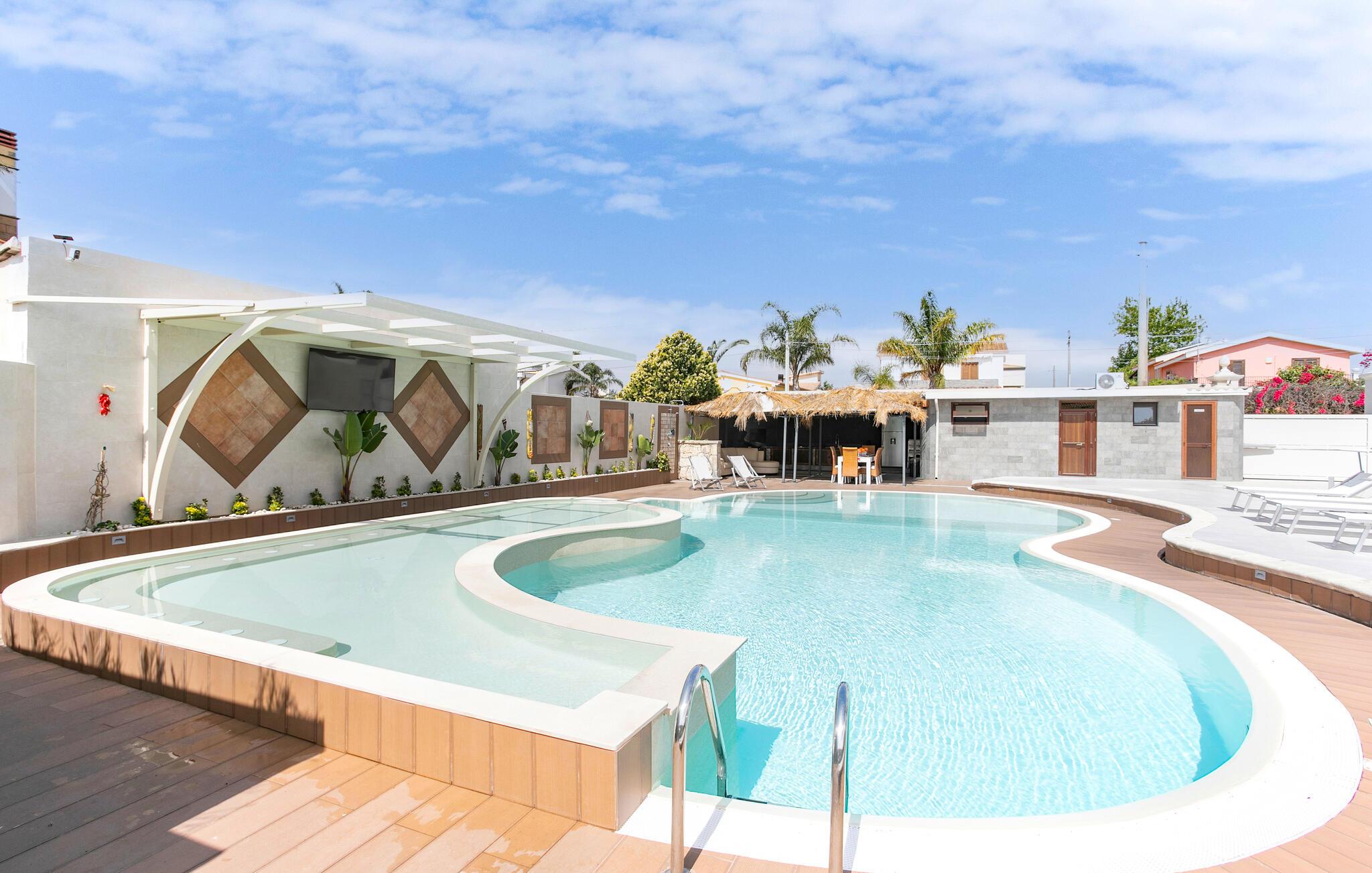 Nyt en herlig ferie i dette store feriehuset med privat utendørsbasseng i Punta Milocca i Plemmirio Marine Park sør for Syracuse.
