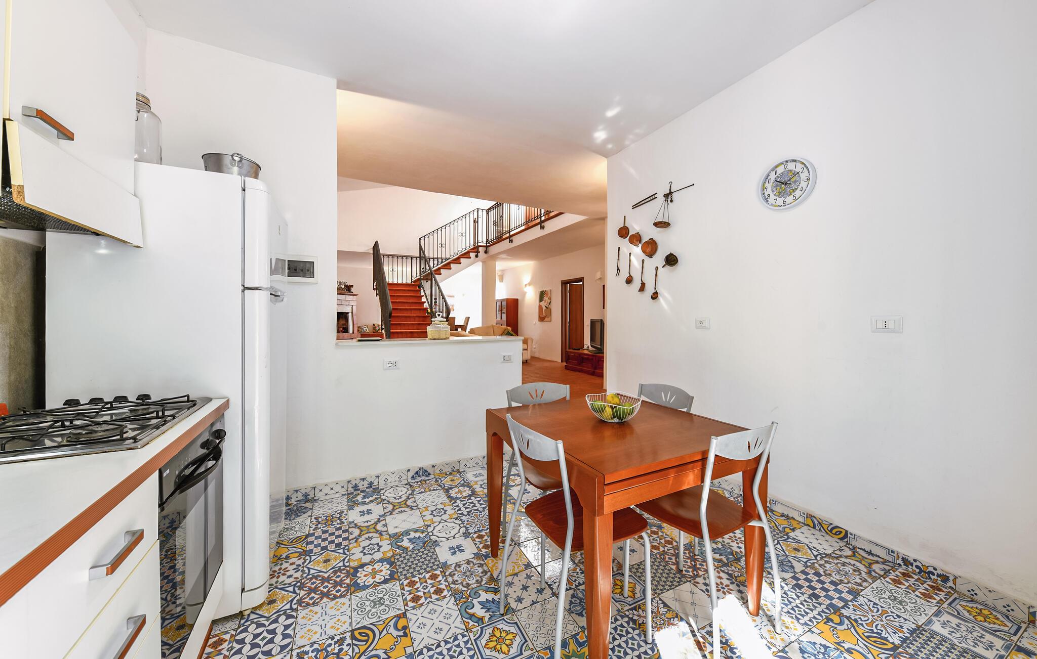 Dette huset utstråler en varm middelhavsatmosfære, med romslige rom, terrakottagulv og rikelig med naturlig lys. Her kan du nyte rolige stunder med en kopp kaffe, lytte til musikk og legge hverdagen bak deg. På kjøkkenet kan dere lage mat sammen og gjøre felles hygge til en integrert del av ferien.