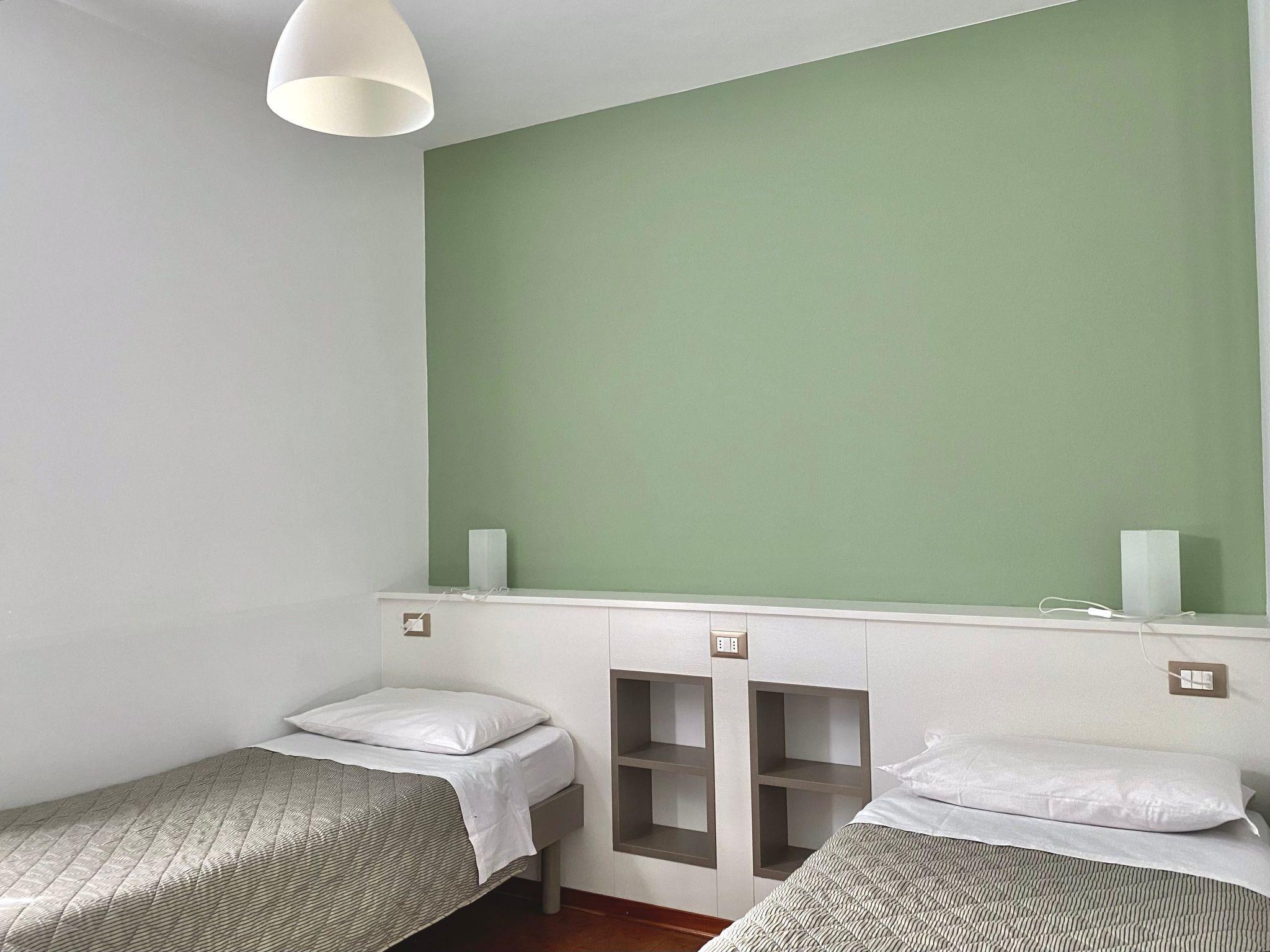 L'appartamento è situato al piano terra ed è composto da una camera con letto matrimoniale, una camera con due letti singoli, un bagno con doccia e asciugacapelli, un soggiorno con divano letto e zona pranzo, e una cucina completamente attrezzata con lavastoviglie.
