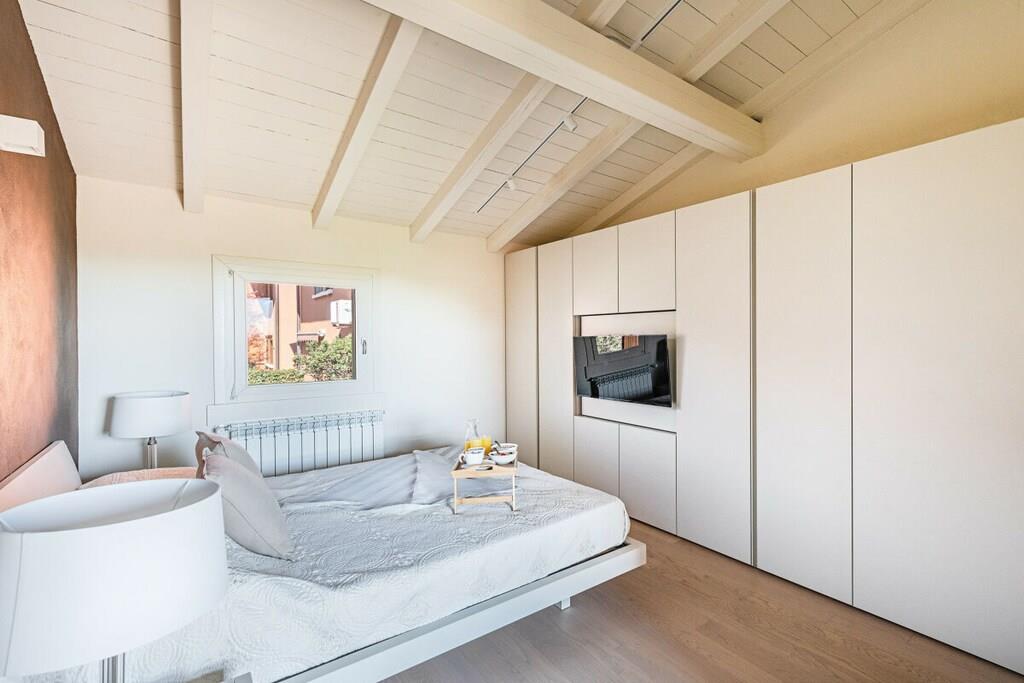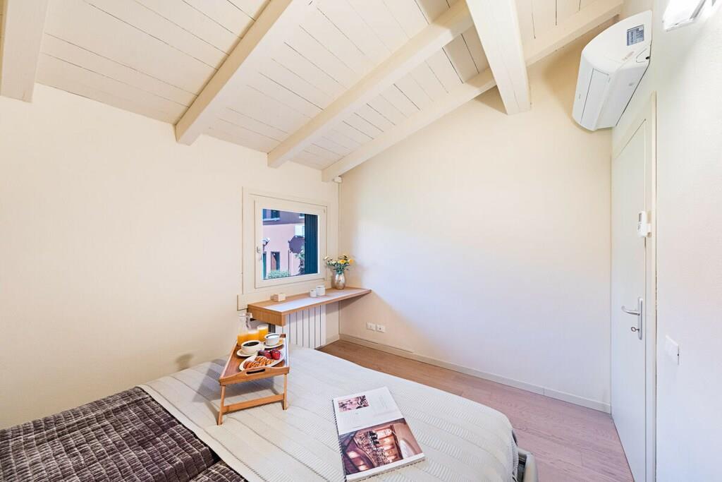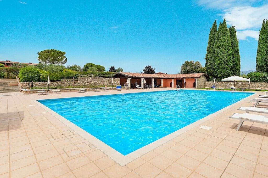 Ligger i Soiano del Lago, blant de grønne åsene i innsjøen, i et rolig område og innenfor "Gardagolf Country Club"-residensen med basseng, 2-roms leilighet for en familie- eller gruppeferie opp til 4 personer! Leiligheten ligger i første etasje og er preget av sin lysstyrke og moderne innredning. Ferieleiligheten, utstyrt med gratis Wi-Fi internettforbindelse, ønsker gjester velkommen med en stor og lys stue med en komfortabel sofa, flatskjerm-TV, spisebord med stoler og åpent kjøkken, komplett med induksjonstopp, kjøleskap, fryser, stekeovn, mikrobølgeovn, oppvaskmaskin, kaffemaskin, brødrister, juicer og vannkoker er utstyrt for enhver komfort. Fra stuen er det utgang til den store private overbygde terrassen med spisebord og stoler, hvor du kan slappe av mens du nyter vakker utsikt over de omkringliggende grøntområdene og åsene. Et første bad, utstyrt med dusj, vask, bidet, toalett og vaskemaskin, beriker utformingen av huset. Leiligheten, som er utstyrt med klimaanlegg i alle rom, fortsetter å imponere med de to soverommene: Hovedsoverommet er utstyrt med dobbeltseng, stor garderobe, flatskjerm-TV og direkte utgang til leilighetens private terrasse. Det andre soverommet er innredet med dobbeltseng og en hylle som kan brukes som skrivebord. Det andre badet med dusj, vask, bidet og toalett fullfører eiendommen. Residensen har et svømmebasseng (10m. x 20m.) åpent fra 15. mai til 30. september med et område for soling. Badehetter er påkrevd. To utendørs parkeringsplasser i huset er tilgjengelig for gjester (mål: 5x2,50m). Det er mulig å skaffe barneseng og/eller barnestol mot et lite pristillegg. Kjæledyr er ikke tillatt.