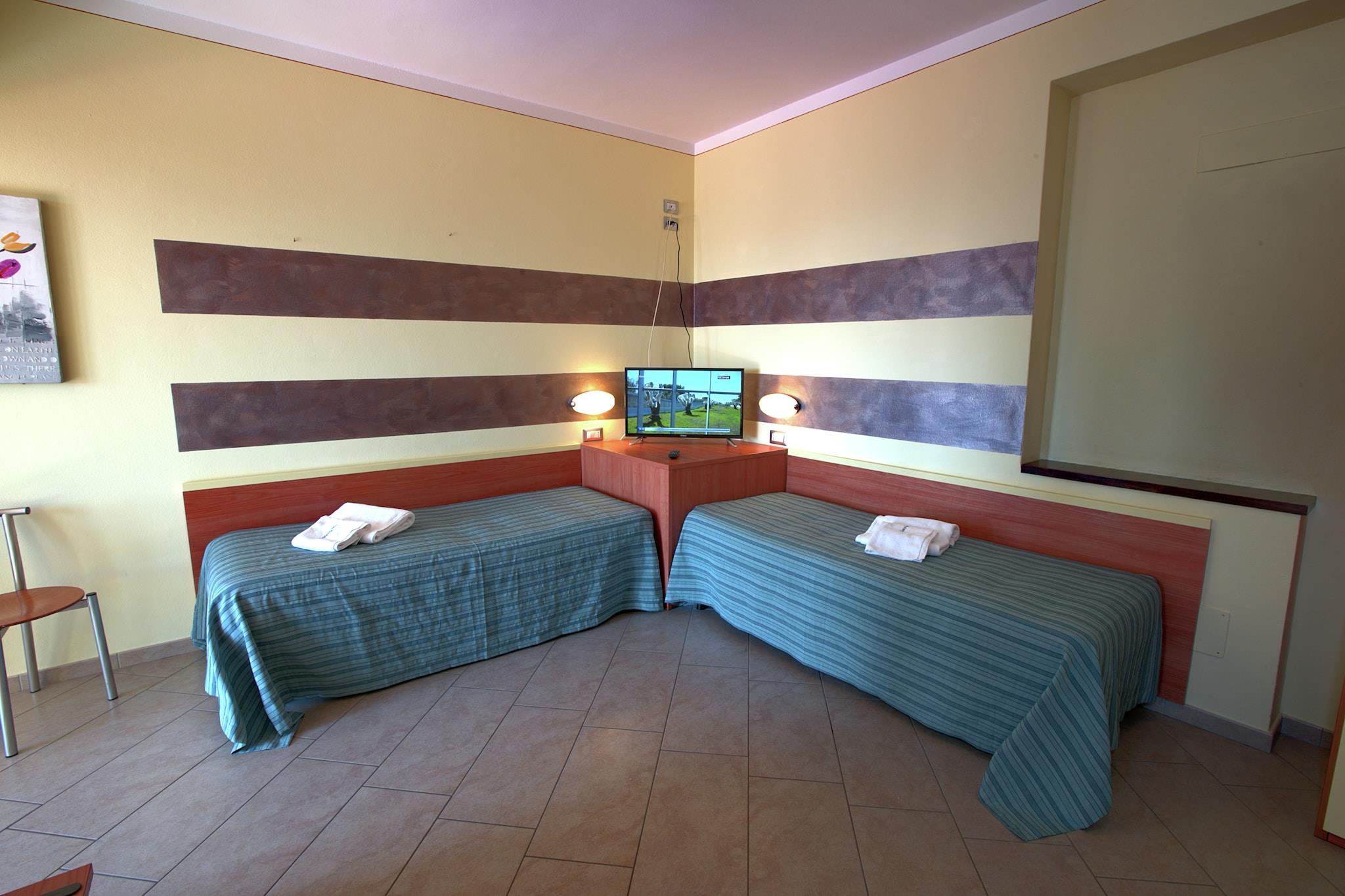 Første etasje: (åpent kjøkken(spisebord, vannkoker), Stue/soverom(dobbeltseng, TV(satellitt)), bad(dusj, håndvask, toalett, bidet)) gårdhave, hage(deles med andre gjester), hagemøbler, svømmebasseng(deles med andre gjester, 20 x 10 m., opened from May upto and including Sep)