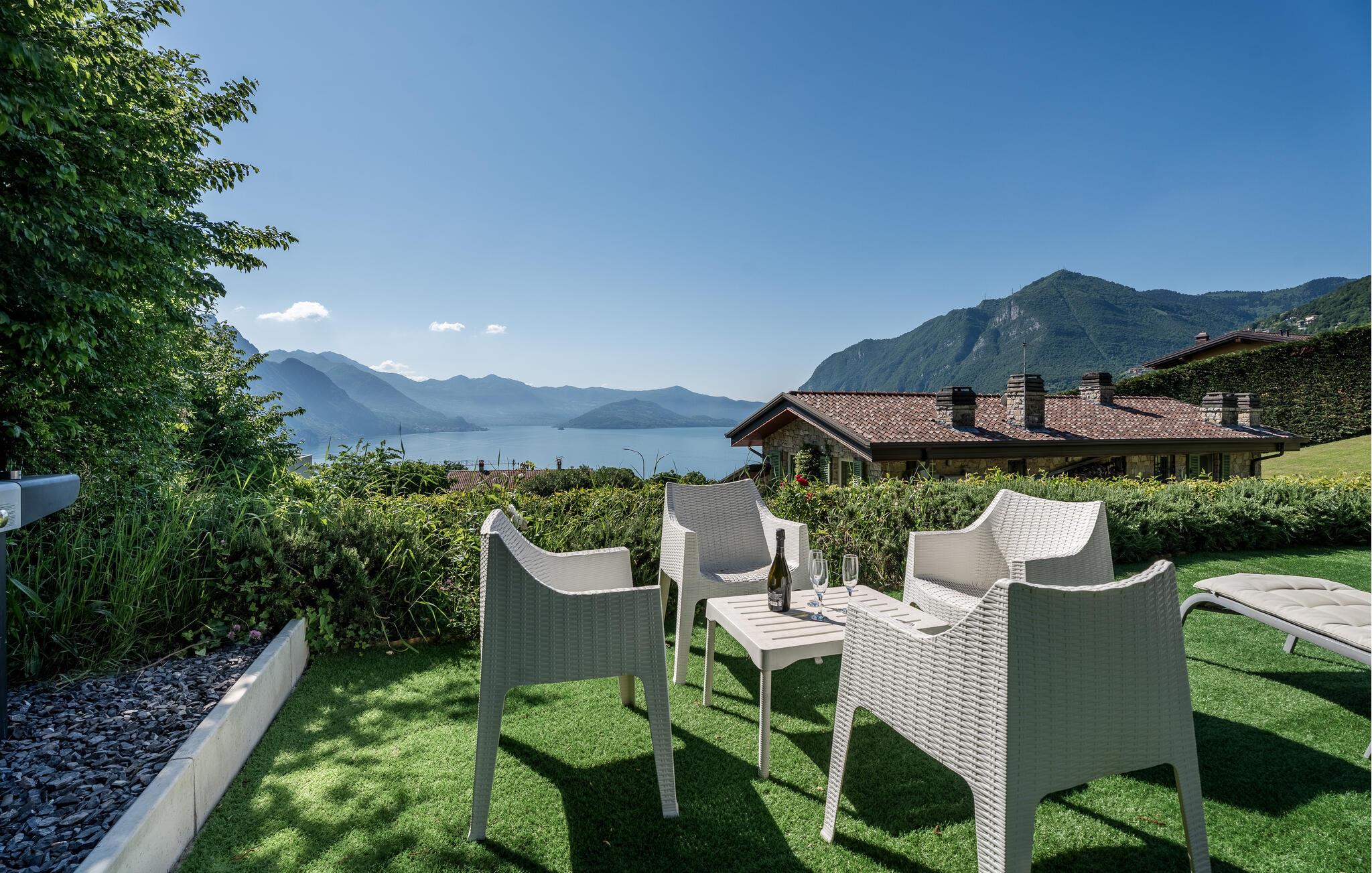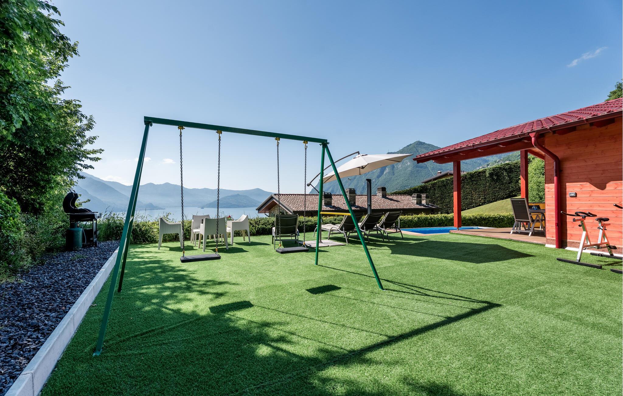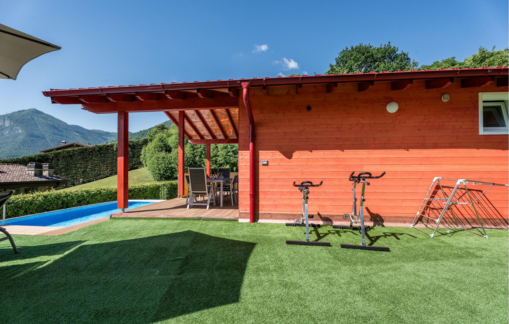 Uavhengig feriehus med privat basseng og panoramautsikt over Iseosjøen. Ferieboligen ligger i Riva di Solto, en sjarmerende landsby på vestsiden av Iseosjøen. Huset er på en etasje og består av et åpent kjøkken / stue med sovesofa, et dobbelt soverom med eget bad, et tremannsrom med enkeltsenger og et bad med dusj. Stuen fører til terrassen med basseng og med møbler og fluktstoler, ideelt for hyggelige, avslappende øyeblikk. Nyt den vakre panoramautsikten over den sjarmerende Corna Trentapassi, som er tilgjengelig til fots, og av innsjøen med den fascinerende Mont'Isola i midten. For fjellelskere ligger det berømte Monte Campione (25 km) med sine 2000 m høye topper, 30 km skiløyper og 11 skiheiser i nærheten. Ikke gå glipp av det berømte Boario Terme (26 km), byene Lovere (10 km) og Sarnico (18 km) ved bredden av Iseosjøen. Området tilbyr mange fritidsaktiviteter som fotturer, stavgang, roing, seiling og vakre utflukter i skogen. I nærheten ligger også den berømte Franciacorta med sine utsøkte viner.