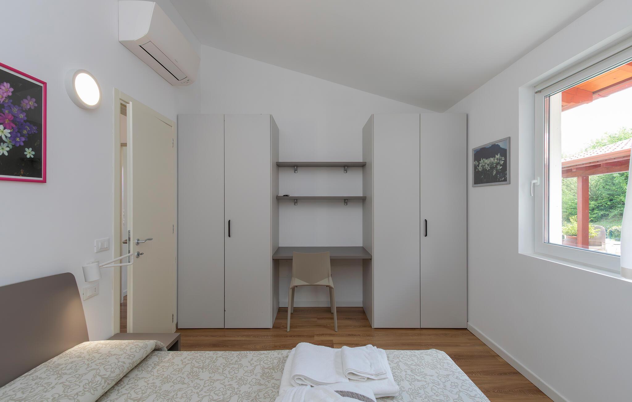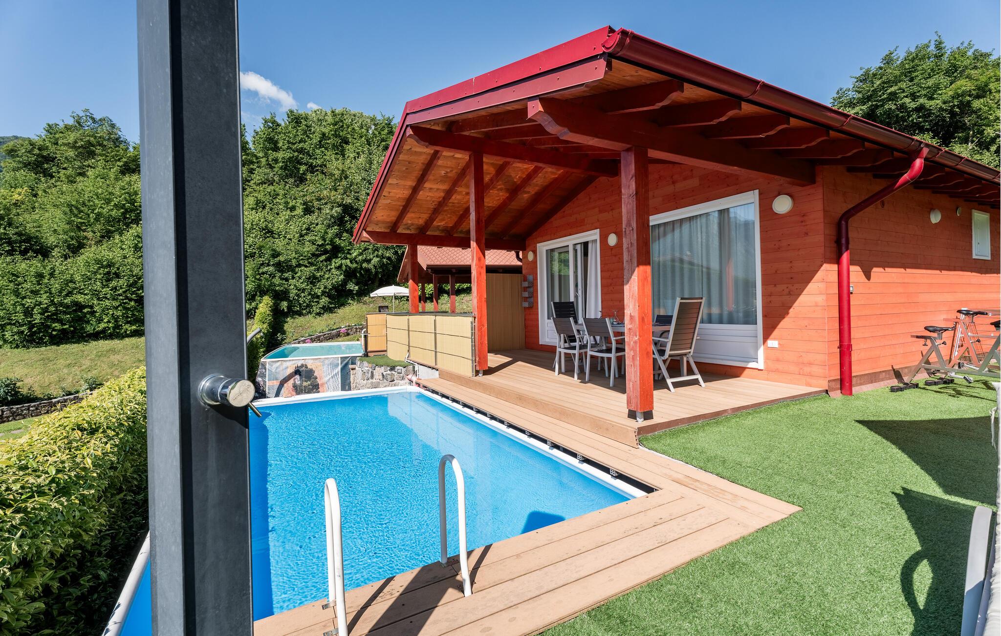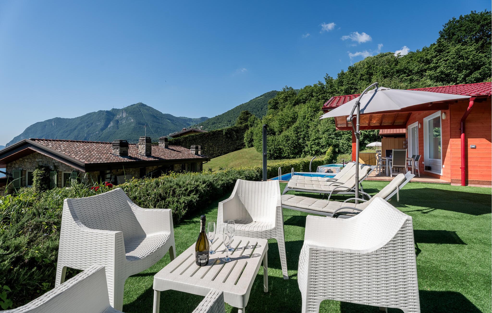 Uavhengig feriehus med privat basseng og panoramautsikt over Iseosjøen. Ferieboligen ligger i Riva di Solto, en sjarmerende landsby på vestsiden av Iseosjøen. Huset er på en etasje og består av et åpent kjøkken / stue med sovesofa, et dobbelt soverom med eget bad, et tremannsrom med enkeltsenger og et bad med dusj. Stuen fører til terrassen med basseng og med møbler og fluktstoler, ideelt for hyggelige, avslappende øyeblikk. Nyt den vakre panoramautsikten over den sjarmerende Corna Trentapassi, som er tilgjengelig til fots, og av innsjøen med den fascinerende Mont'Isola i midten. For fjellelskere ligger det berømte Monte Campione (25 km) med sine 2000 m høye topper, 30 km skiløyper og 11 skiheiser i nærheten. Ikke gå glipp av det berømte Boario Terme (26 km), byene Lovere (10 km) og Sarnico (18 km) ved bredden av Iseosjøen. Området tilbyr mange fritidsaktiviteter som fotturer, stavgang, roing, seiling og vakre utflukter i skogen. I nærheten ligger også den berømte Franciacorta med sine utsøkte viner.