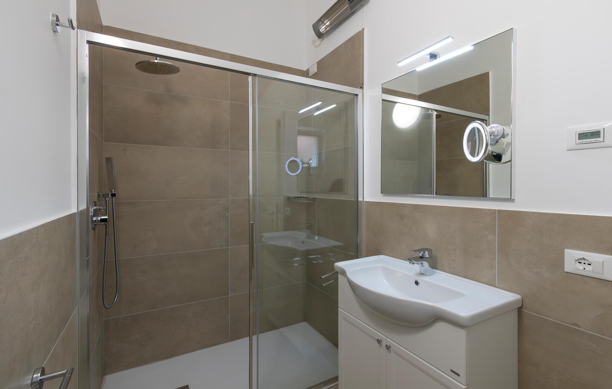 - WC med varmt og kaldt vann, Dusj