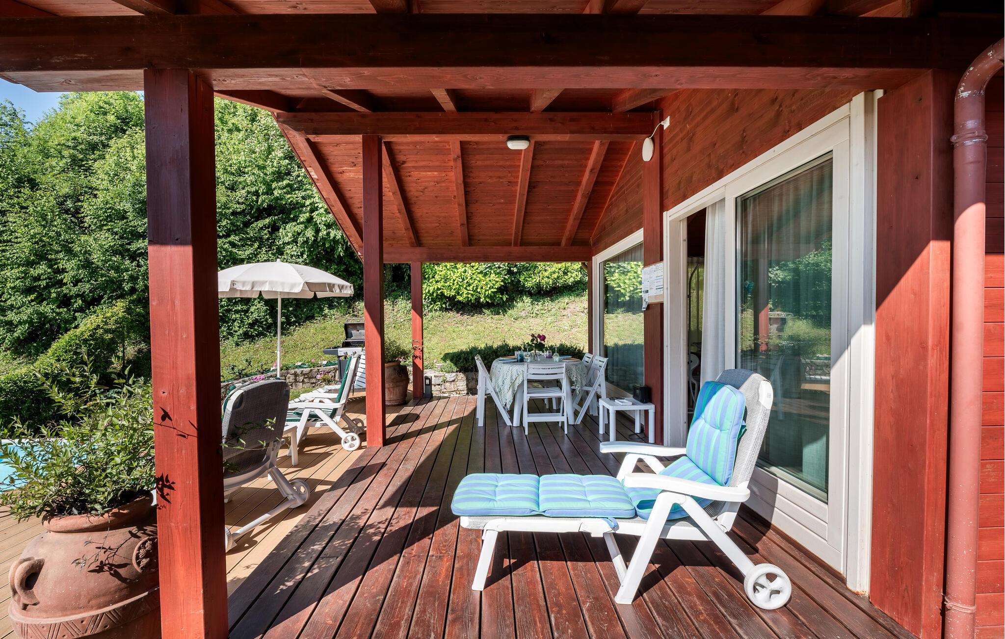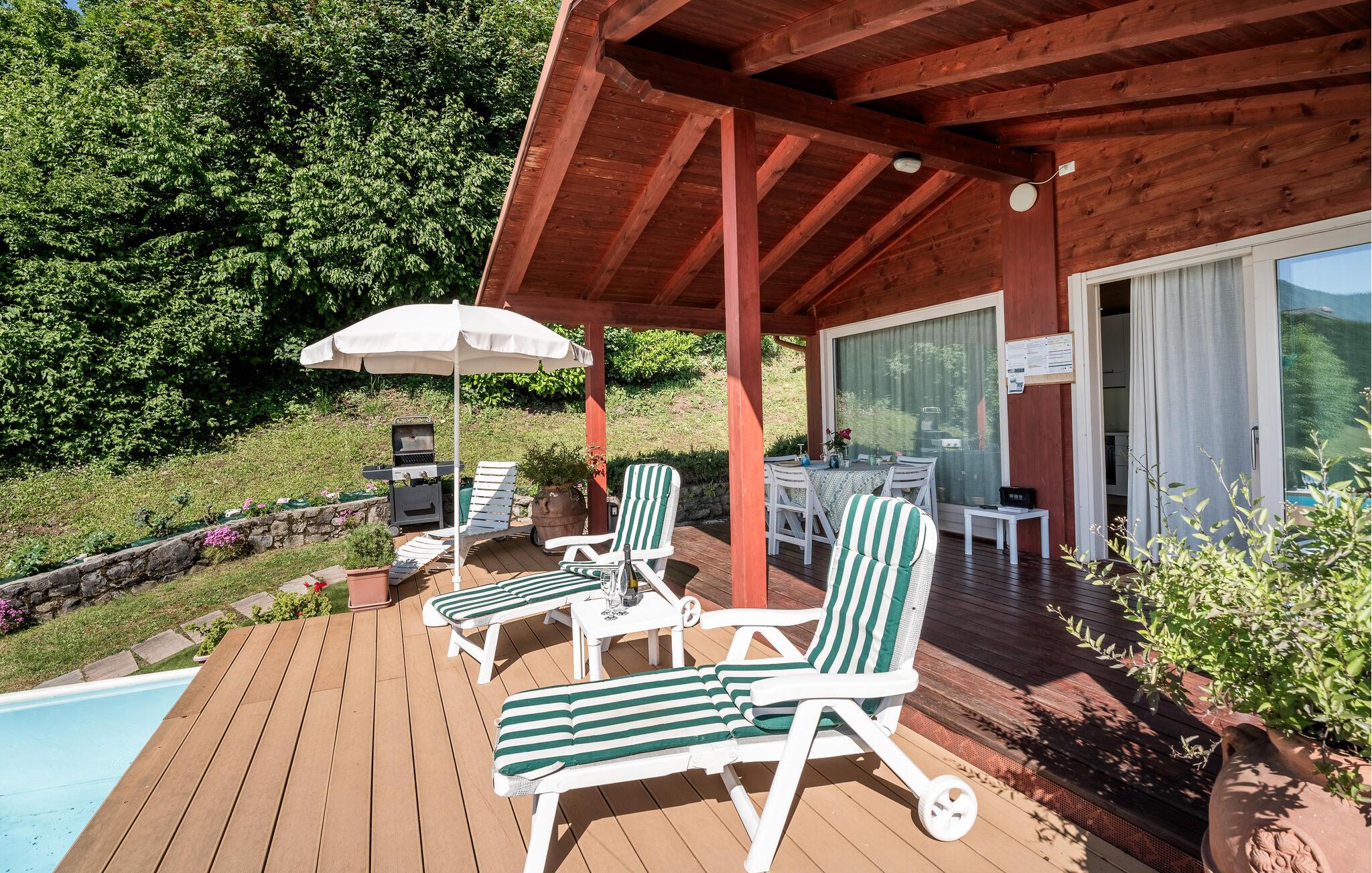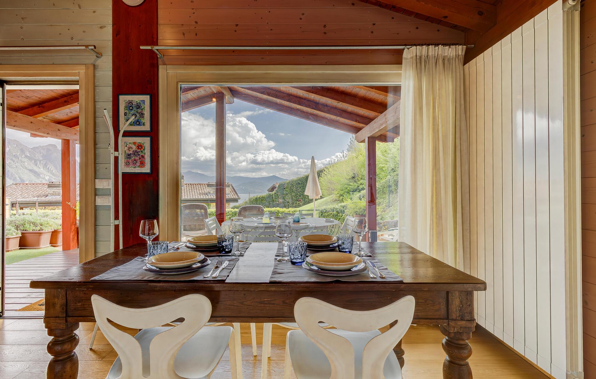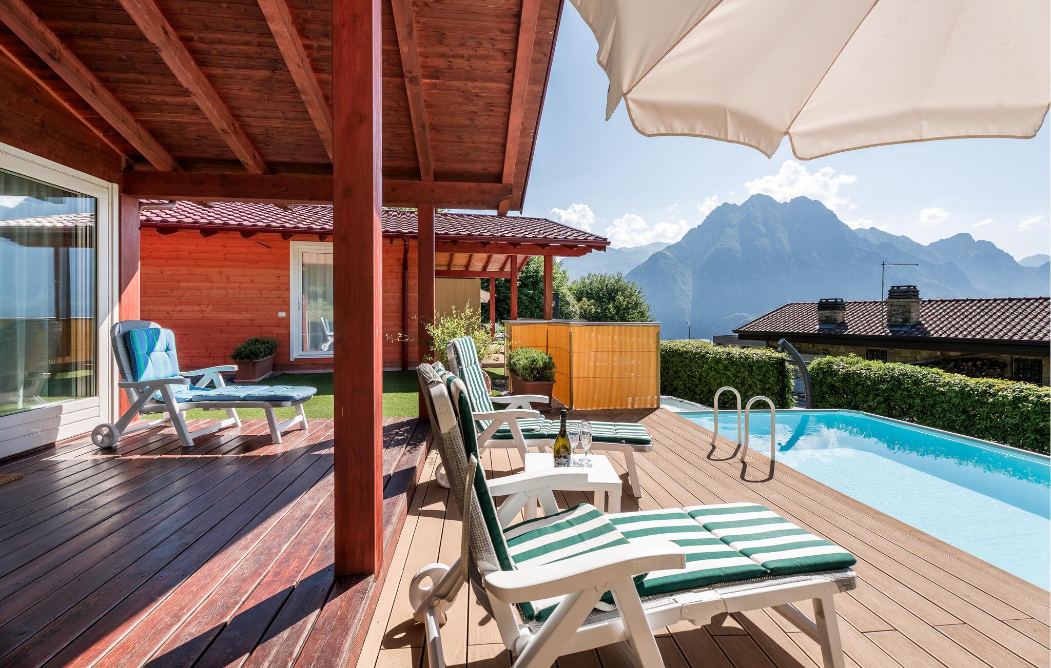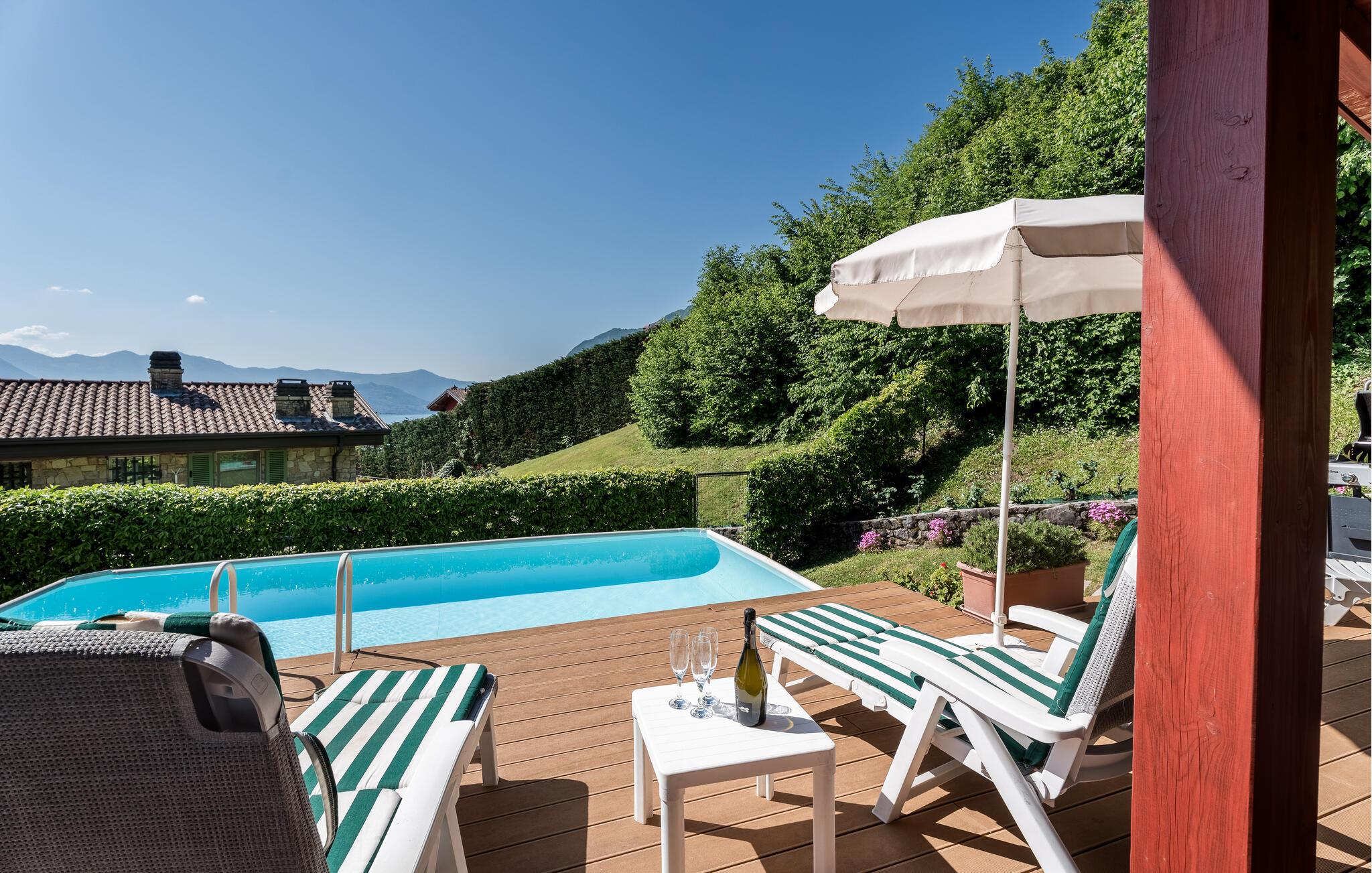Uavhengig feriehus med privat basseng og panoramautsikt over Iseosjøen. Ferieboligen ligger i Riva di Solto, en sjarmerende landsby på vestsiden av Iseosjøen. Huset er på en etasje og består av en åpen stue / kjøkken med sovesofa, et soverom med dobbeltseng, et soverom med to enkeltsenger og et bad med dusj. Stuen fører til terrassen med basseng og med møbler og fluktstoler, ideelt for hyggelige, avslappende øyeblikk. Nyt den vakre panoramautsikten over den sjarmerende Corna Trentapassi, som er tilgjengelig til fots, og av innsjøen med den fascinerende Mont'Isola i midten. For fjellelskere ligger det berømte Monte Campione (25 km) med sine 2000 m høye topper, 30 km skiløyper og 11 skiheiser i nærheten. Ikke gå glipp av det berømte Boario Terme (26 km), byene Lovere (10 km) og Sarnico (18 km) ved bredden av Iseosjøen. Området byr på mange rekreasjonsmuligheter som fotturer, stavgang, roing, seiling og vakre utflukter i skogen. I nærheten ligger også den berømte Franciacorta med sine utsøkte viner.