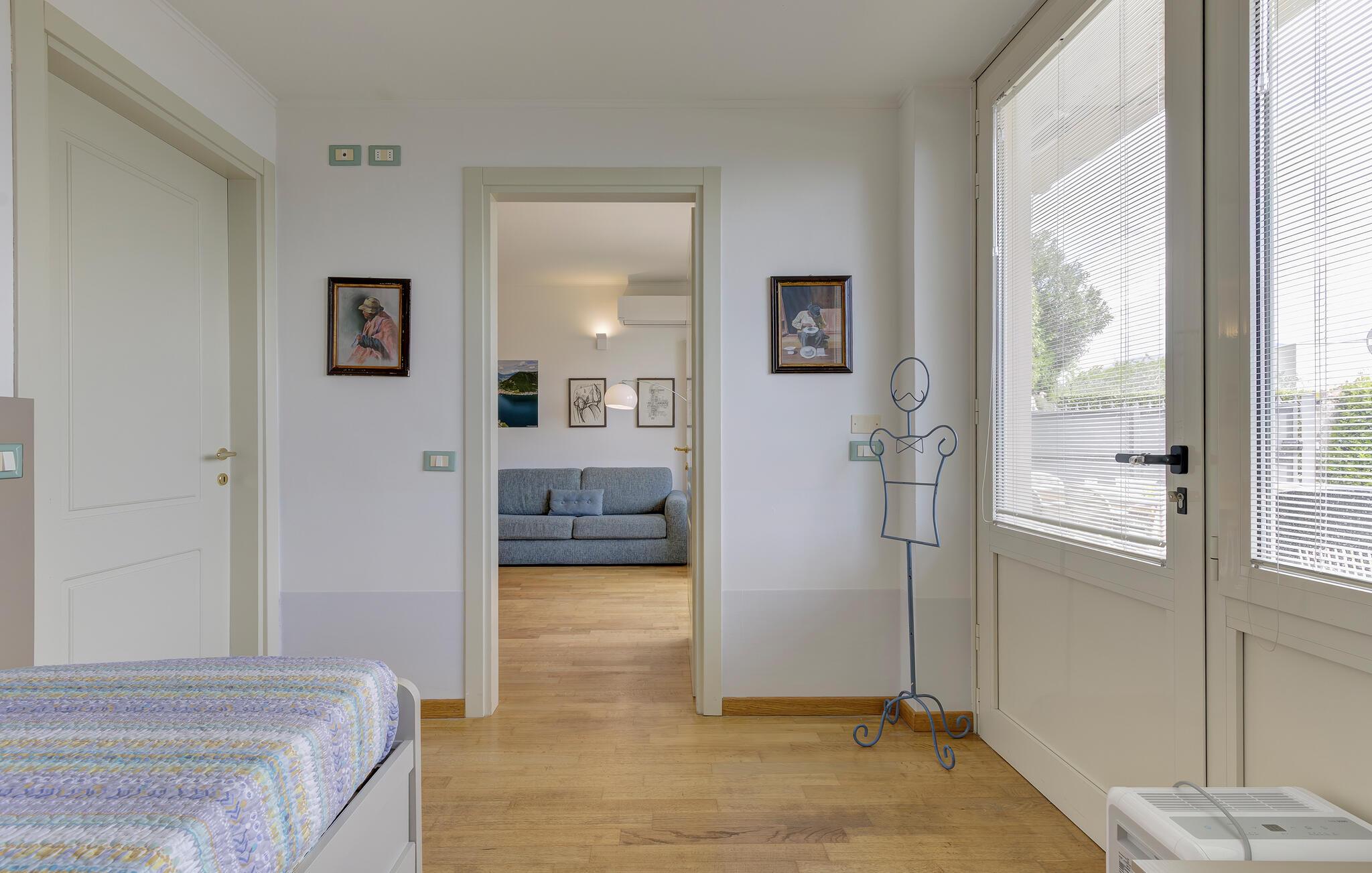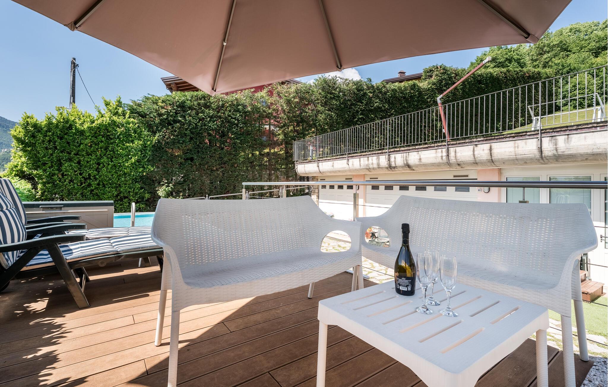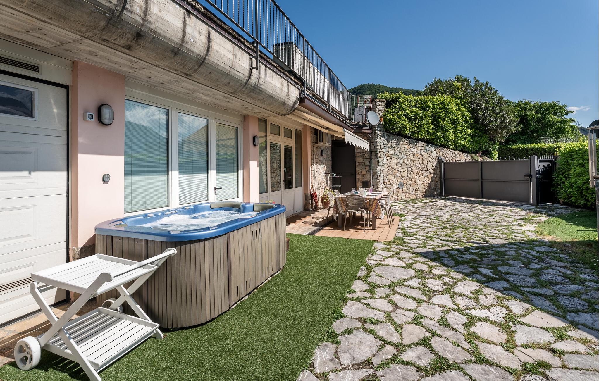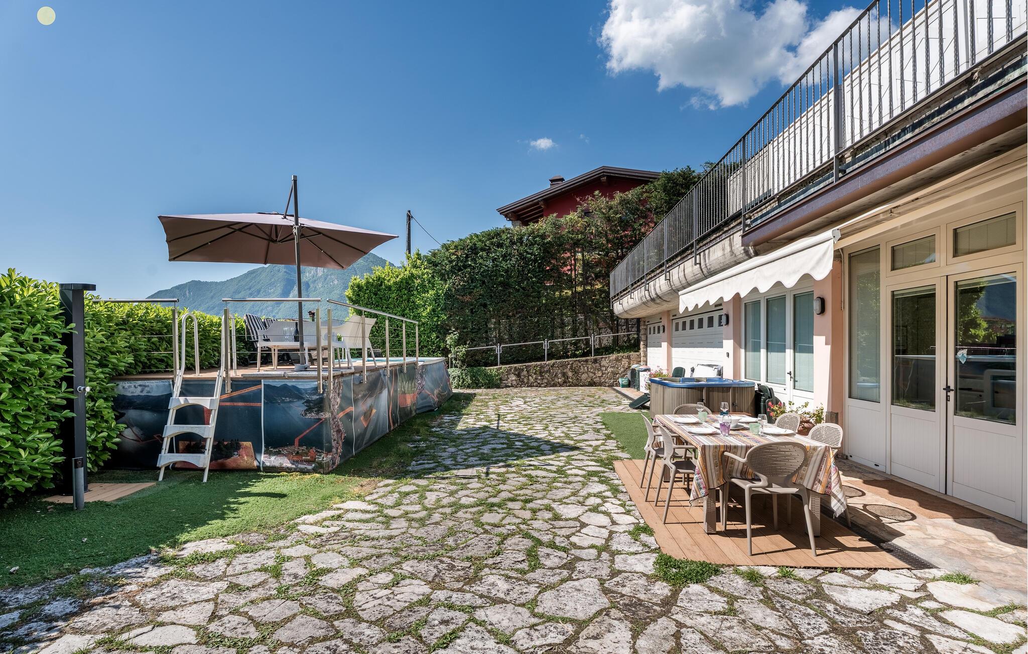Ferieleilighet med privat terrasse, lite basseng og utsikt over Iseosjøen. Ferieboligen ligger i Riva di Solto, en sjarmerende landsby på vestsiden av Iseosjøen. Innkvarteringen er på ett plan og består av et åpent kjøkken / stue med sovesofa, et soverom med dobbeltseng, et soverom med to enkeltsenger og et bad med dusj. Stuen fører til terrassen, som er utstyrt med møbler og fluktstoler, for hyggelige stunder med avslapning. Nyt den vakre panoramautsikten over den sjarmerende Corna Trentapassi, som er tilgjengelig til fots, og av innsjøen med den fascinerende Mont'Isola i midten. For fjellelskere ligger det berømte Monte Campione (25 km) med sine 2000 m høye topper, 30 km skiløyper og 11 skiheiser i nærheten. Ikke gå glipp av det berømte Boario Terme (26 km), byene Lovere (10 km) og Sarnico (18 km) ved bredden av Iseosjøen. Området byr på mange rekreasjonsmuligheter som fotturer, stavgang, roing, seiling og vakre utflukter i skogen. I nærheten ligger også den berømte Franciacorta med sine utsøkte viner.