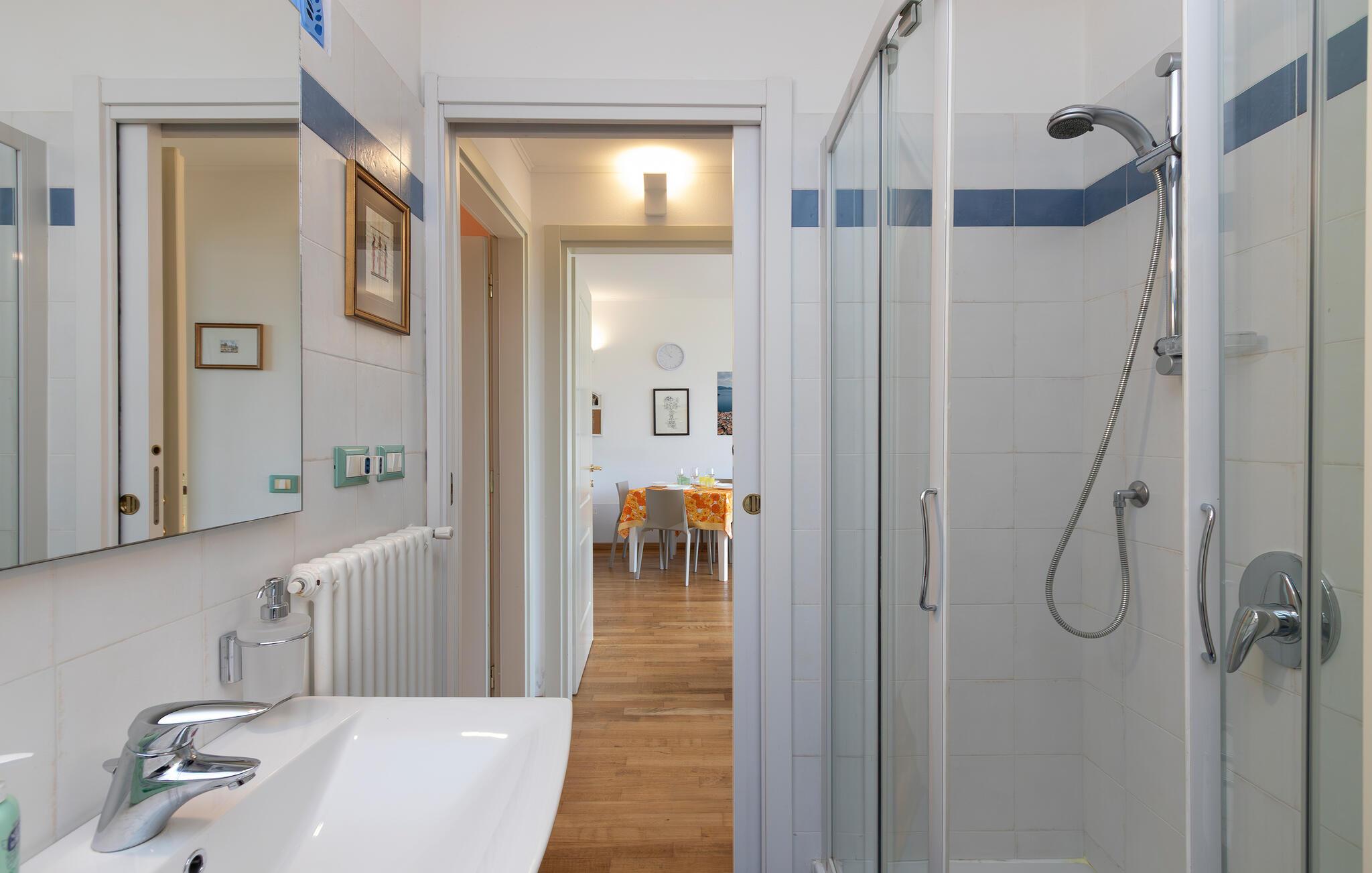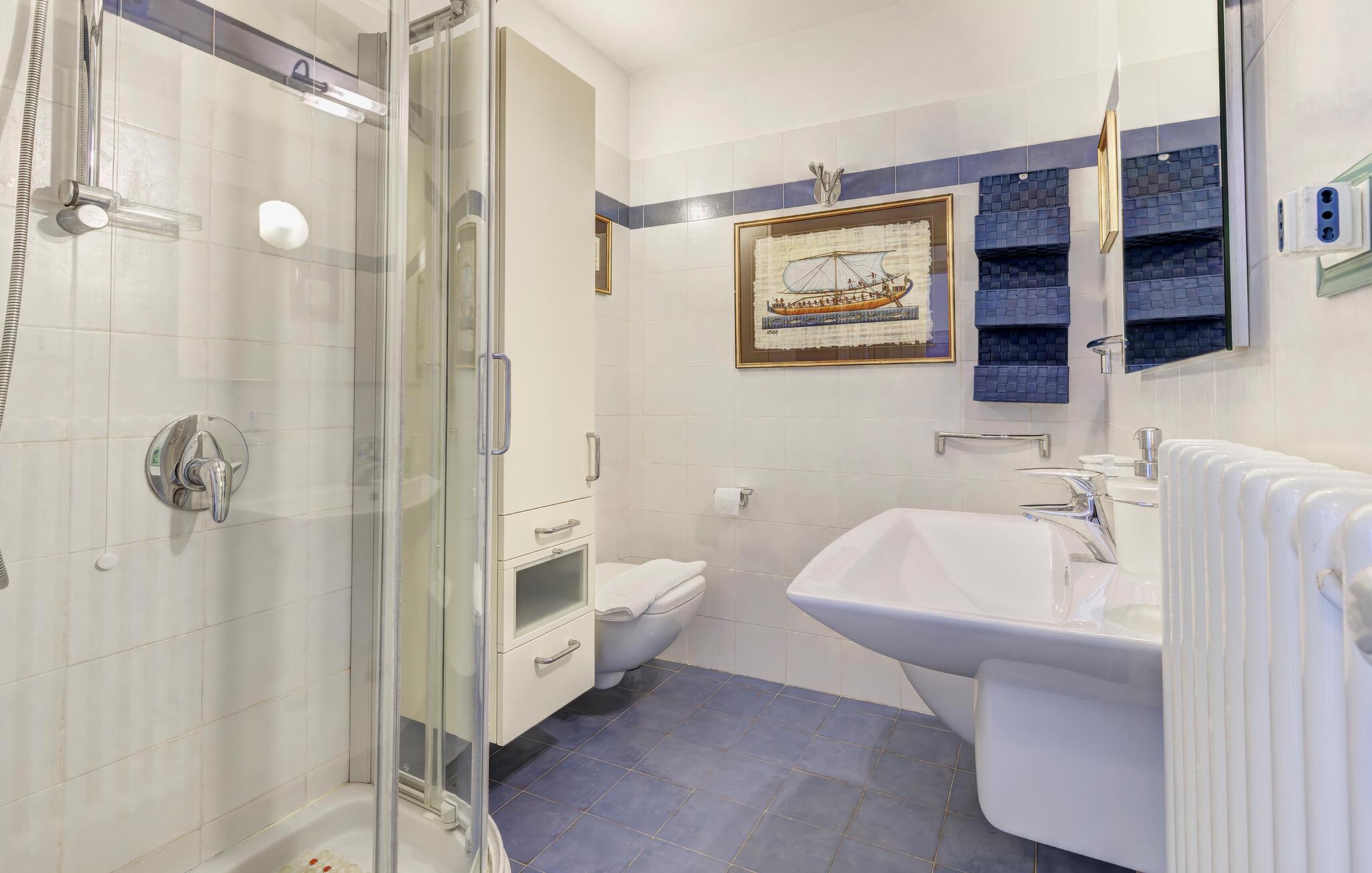 - WC med varmt og kaldt vann, Dusj