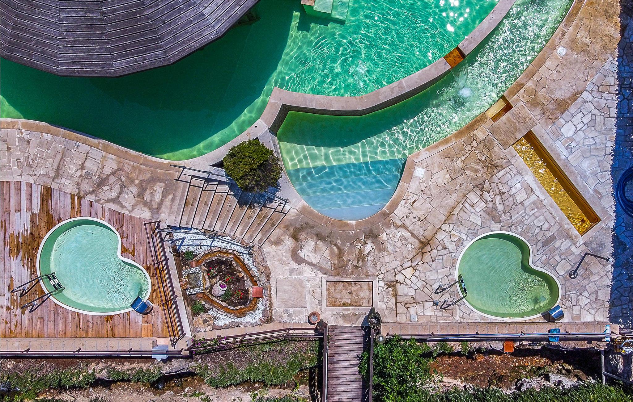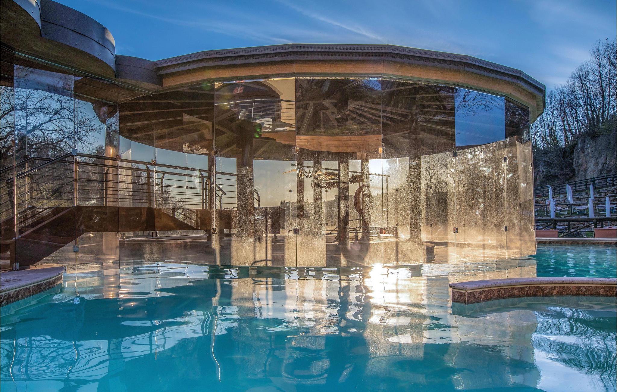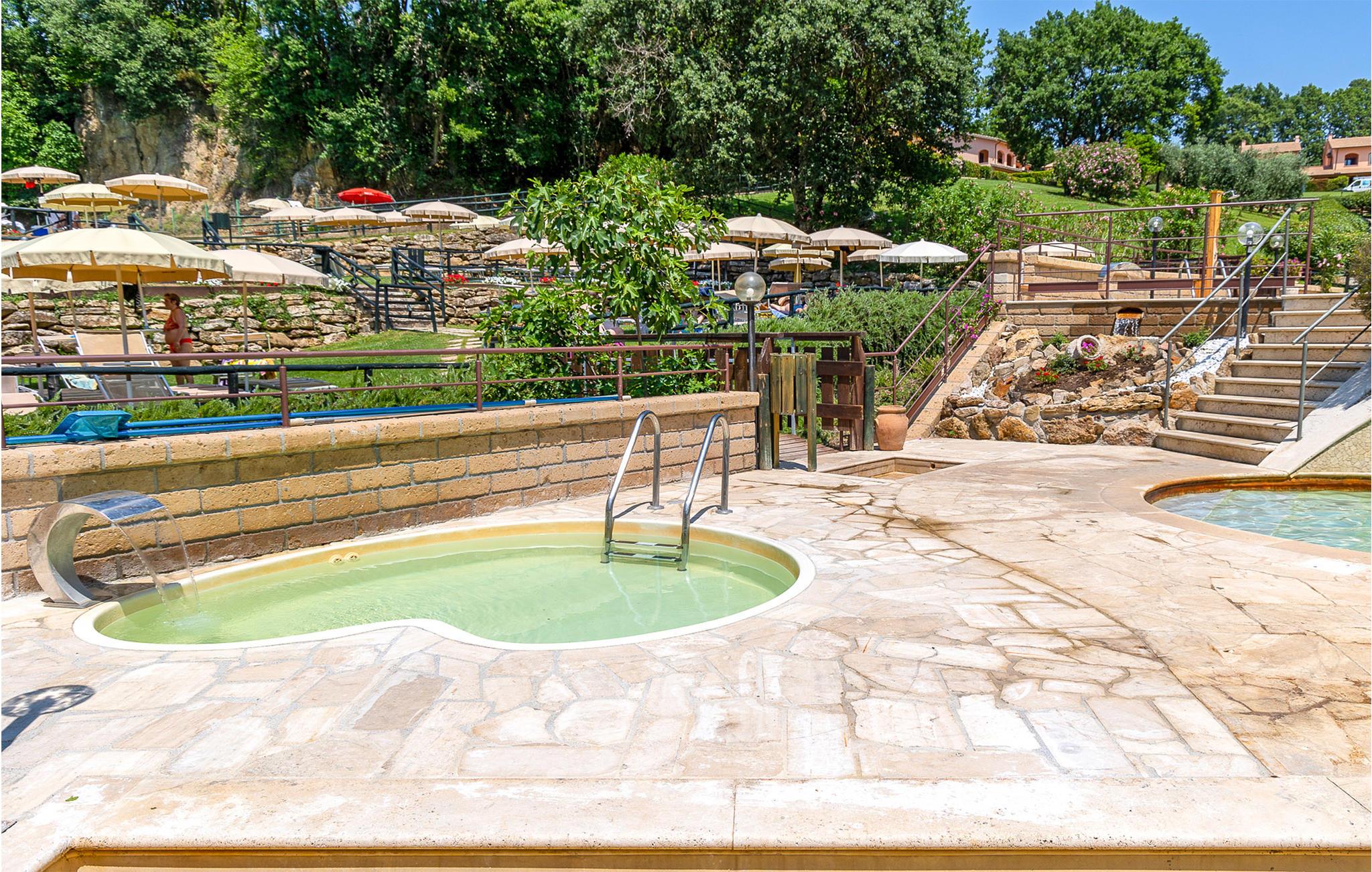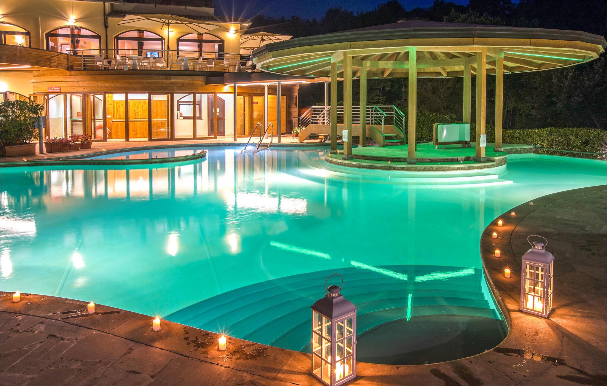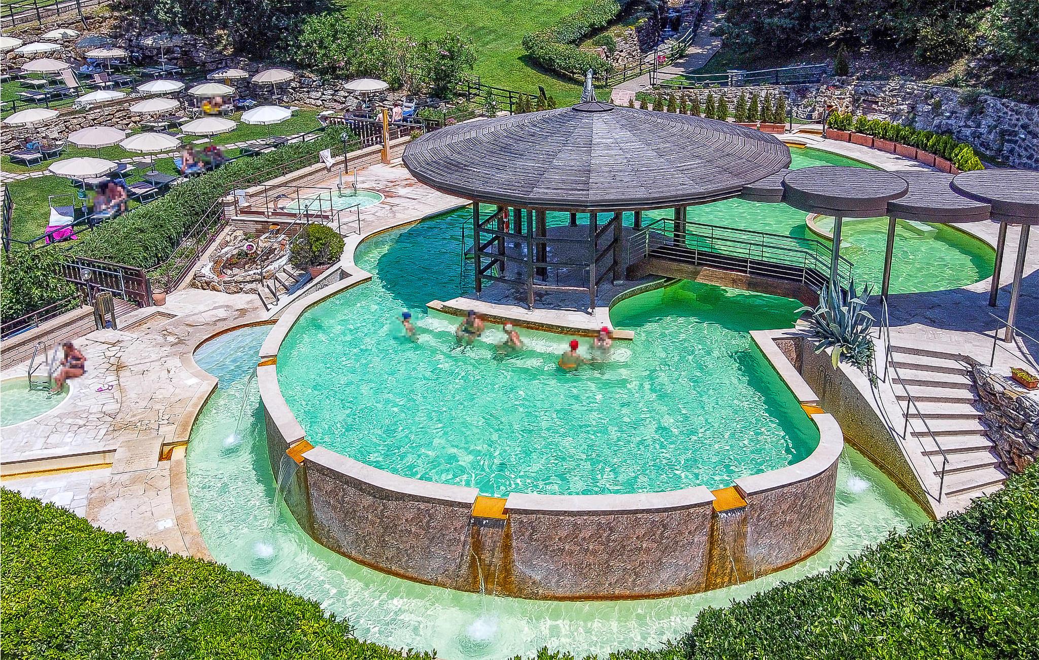 Dette vakre spakomplekset i Sorano med selvstendige feriehus (10) og leiligheter (28) er bygget rundt en gammel sognekirke fra år 1000 og ligger i de grønne åsene i det sørlige Toscana, i en region rik på termiske kilder og etruskiske arkeologiske funnsteder. Den 7 hektar store eiendommen ligger i et område med varme kilder, der vannet renner i gamle bassenger og vassdrag ved 37 °C. Vannet er svært varmt. Det spesielle med dette vannet er at det ikke inneholder svovel, og at det er rikt på magnesium, sink og kalsium, viktige elementer for hud- og kroppspleie. Det er faktisk tillatt med terapeutiske behandlinger i komplekset. I tillegg til to termalbassenger (37 °C) med fossefall og naturlige boblebad og et termalbasseng for barn som er åpent hele året, omfatter anlegget også et eldgammelt termalbasseng fra 1363 (Bagni dei Frati) med to kilder i klippene i skogen (inngangspenger), et velværespa (badebehandlinger, massasje, leireterapi og andre avslappende behandlinger), et sportsbasseng (18x11 m), tennisbane, en restaurant (bordbestilling på stedet) med økologiske menyer med produkter fra nærområdet. Terme di Sorano tilbyr tjenester som gjør at du kan veksle mellom en avslappende ferie og fotturer, terrengsykkelturer (utleie på stedet), ridning (mot betaling; ridestall på naboeiendommen) eller dagsturer til Pitigliano og Sovana. De vakre kystene i Maremma ligger ca. 40 km unna. På den tilstøtende eiendommen kan du besøke en oljemølle, delta i oljesmaking og, i oktober/november, i olivenhøstingen. Kunder får fordelaktige priser på: Rideutflukter, middag/lunsj i restauranten, kjøp av gårdens produkter. Wi-Fi i fellesområdene, barneseng og barnestol mot betaling. Et tips: Vannet i Terme di Sorano er kjent for sin helbredende effekt på mange hudsykdommer!