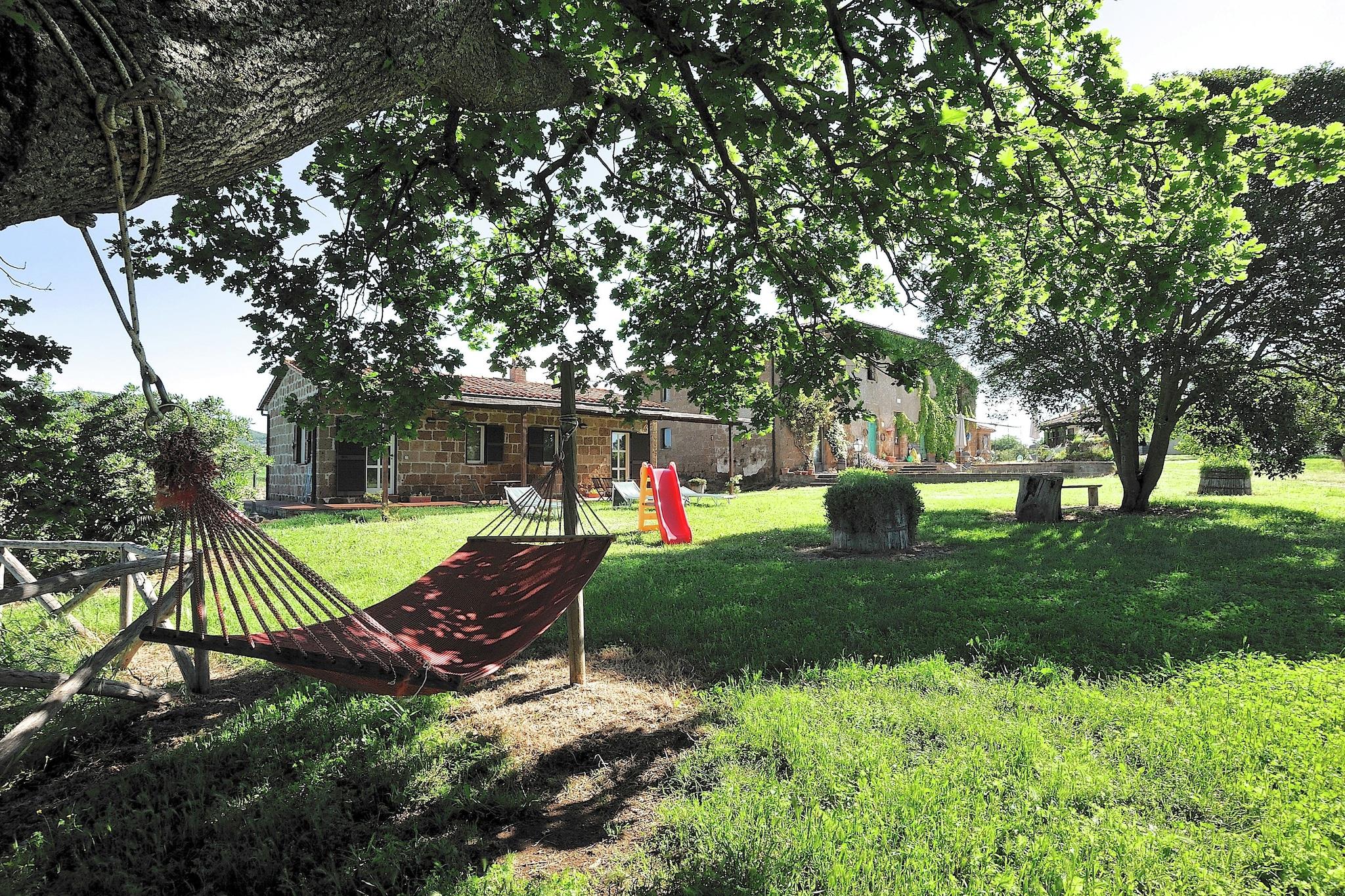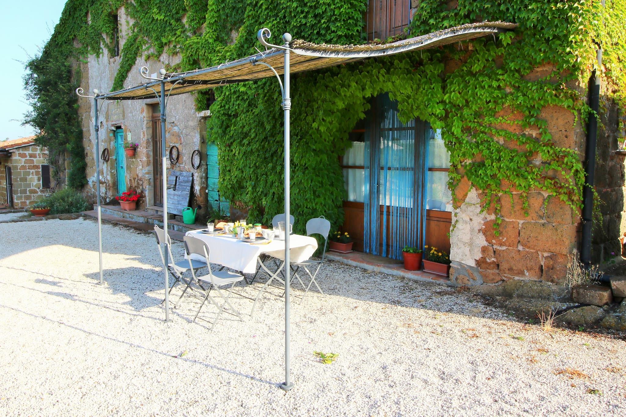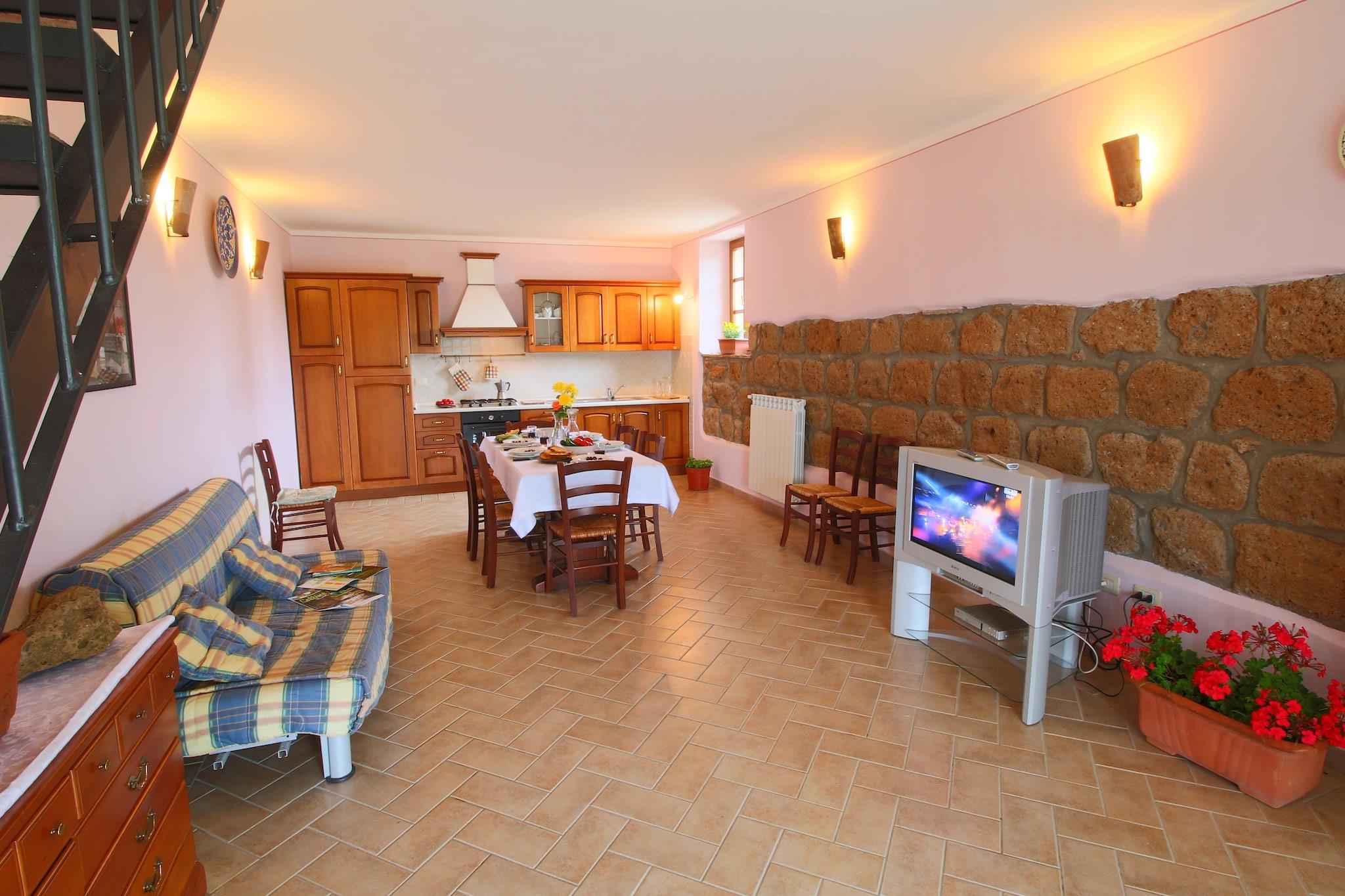 Dette gårdshuset ligger i byen Sorano og har 2 soverom og et felles svømmebasseng. Passer for grupper og familier på 6 personer. Det har en terrasse som er ideell for grilling. Dette gårdshuset ligger bare 500 meter fra skogen, og gir deg muligheten til å gå en tur i skogen. Nærmeste sentrum, restaurant, puber og turistinformasjonssenter ligger 4 km unna. Fyll opp med dine nødvendige varer fra supermarkedet, som ligger 9 km unna. Dette gårdshuset tilbyr moderne hagemøbler. Du finner en TV og en dobbel sovesofa i stuen for 2 personer. Du kan nyte en fresende tallerken med grillmat på terrassen om høsten. Det er et åpent kjøkken hvor du kan lage dine egne måltider. Oppvaskmaskin er tilgjengelig. Du kan få tilgang til gratis Wi-Fi og dele bilder og videoer når som helst. Maksimalt 1 kjæledyr er tillatt på dette gårdshuset. Gjester kan sjekke inn på eiendommen fra kl. 15.00 til 18.00, mens utsjekking er tillatt fra kl. 09.00 til 10.00.