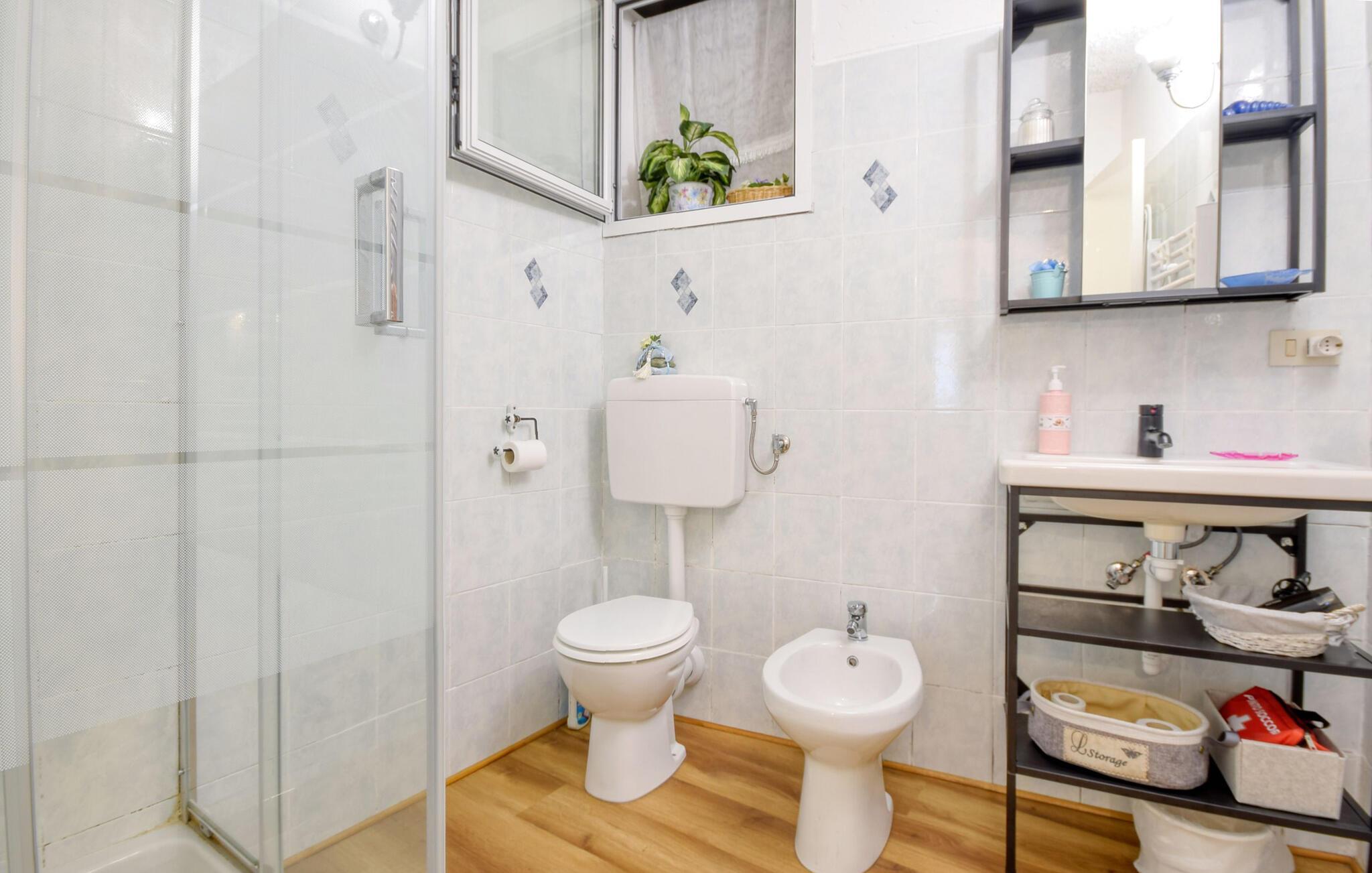 - WC med varmt og kaldt vann, Dusj