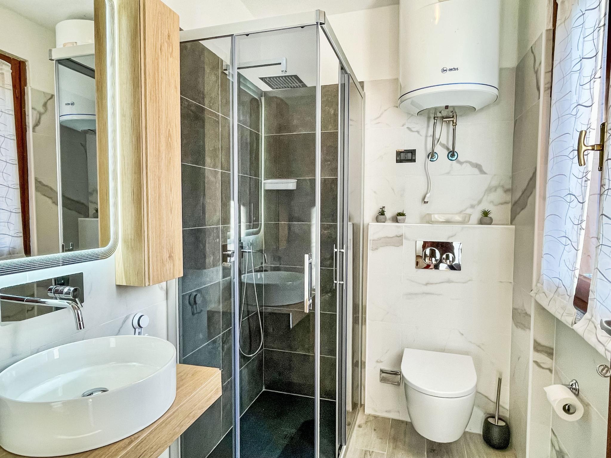 2-room apartment 50 m2 on 1st floor. Comfortable furnishings: living/dining room with TV. 1 room with 1 double bed. Open kitchen (oven, dishwasher, 4 induction hot plates, toaster, electric coffee machine). Exit to the garden, to the balcony. Shower/bidet/WC. Heating. Heating not available in all rooms. Small balcony, patio. Balcony furniture, deck chairs (2). Beautiful view of the countryside. Facilities: children's high chair, baby cot for up to 2 year olds, hair dryer. Internet (WiFi, free). Parking (1 car). Please note: non-smokers only. Maximum 1 pet/ dog allowed. Private entrance, fire extinguisher. IT013216C213WQDUU4