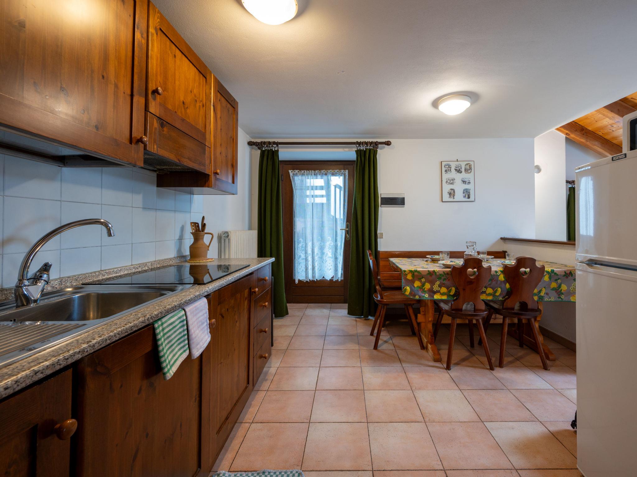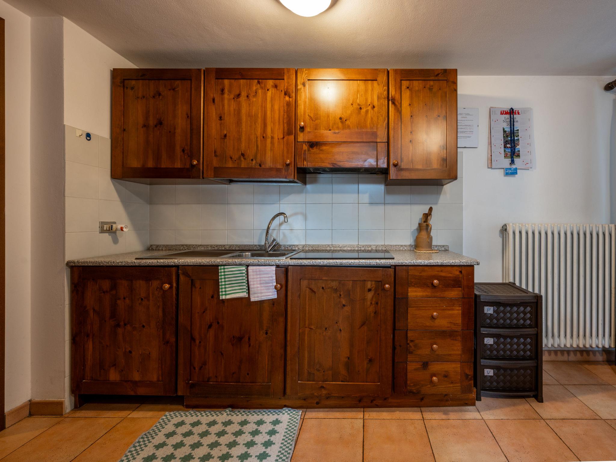 2-room apartment 50 m2, north-west facing position. Partly with sloping ceilings, simple and practical furnishings: living/sleeping room with 2 beds, dining table and digital TV. Exit to the balcony. 1 double bedroom. Kitchenette (3 ceramic glass hob hotplates, freezer). Shower/bidet/WC. Heating. Balcony 5 m2. Balcony furniture. Beautiful view of the mountains and the valley. Please note: smoke alarm, fire extinguisher. IT007061C2X84CRJTN