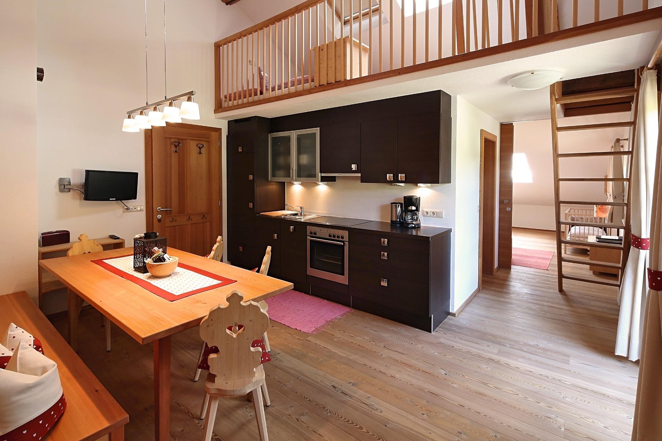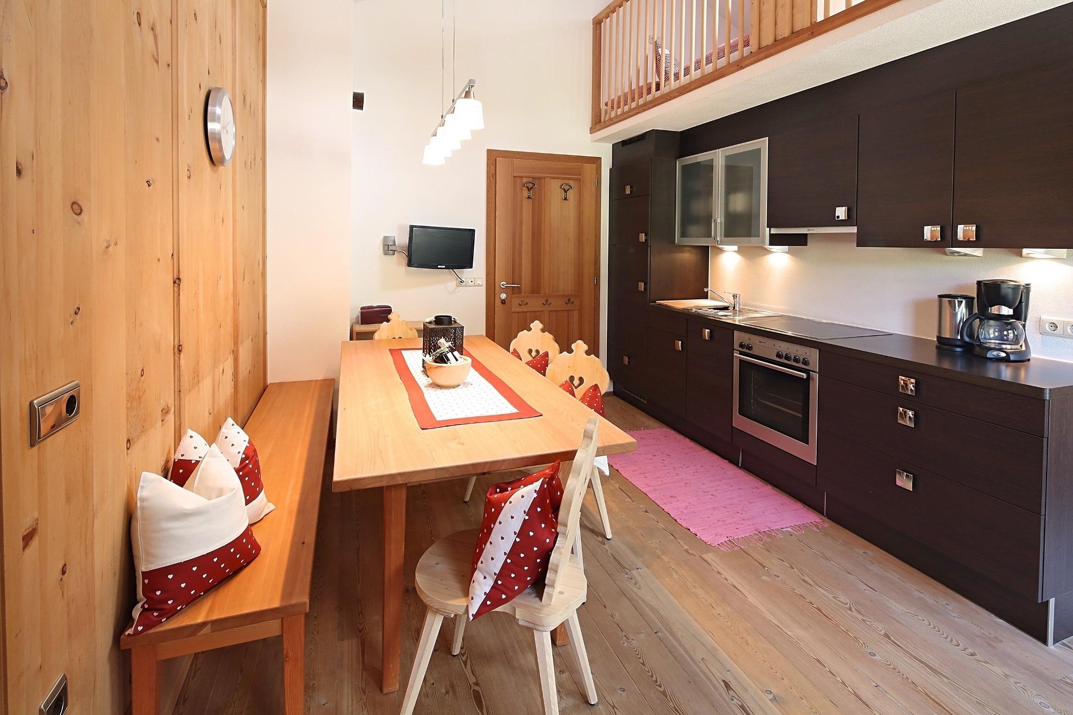 Die Ferienwohnung Dolomit positioniert sich als hochwertiger Rückzugsort für Gäste, die Ruhe, Natur und Komfort effizient kombinieren möchten: Großzügig geschnitten, lichtdurchflutet und im alpinen Stil modern eingerichtet, bietet sie eine voll ausgestattete Küche, einen gemütlichen Wohnbereich sowie einen Balkon mit freiem Blick auf die Dolomiten - ein klarer Mehrwert für Erholungssuchende wie Aktivurlauber. Die ruhige Lage ermöglicht unmittelbaren Zugang zu Wander- und Radwegen, im Winter zu Langlauf und Skigebieten, während regionale Materialien und eine durchdachte Ausstattung für ein stimmiges Wohngefühl sorgen. Ideal für Paare oder Familien, die Wert auf Qualität, Authentizität und eine verlässliche Wohlfühlbasis für ihren Urlaub legen.