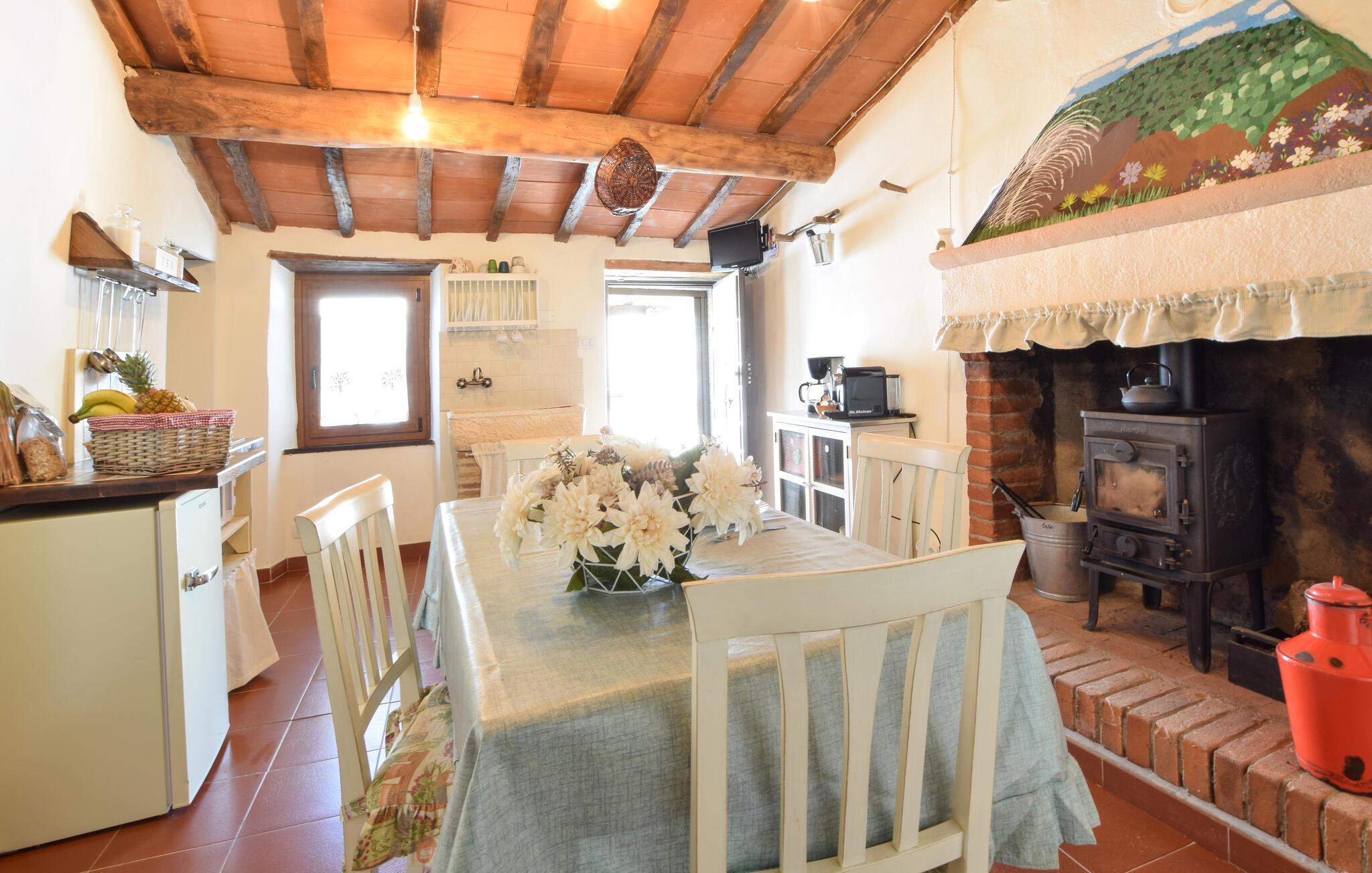 Tilbring avslappende timer i dette typiske toskanske huset med fasade i naturstein. Eksponerte trebjelker i taket, en peis og dempet belysning gir interiøret en hyggelig og koselig atmosfære. Enten du leser, lytter til musikk eller prater, vil du finne plass til å slappe av her. Om kvelden kan du lage mat selv på det funksjonelt utstyrte kjøkkenet og nyte et glass vin.