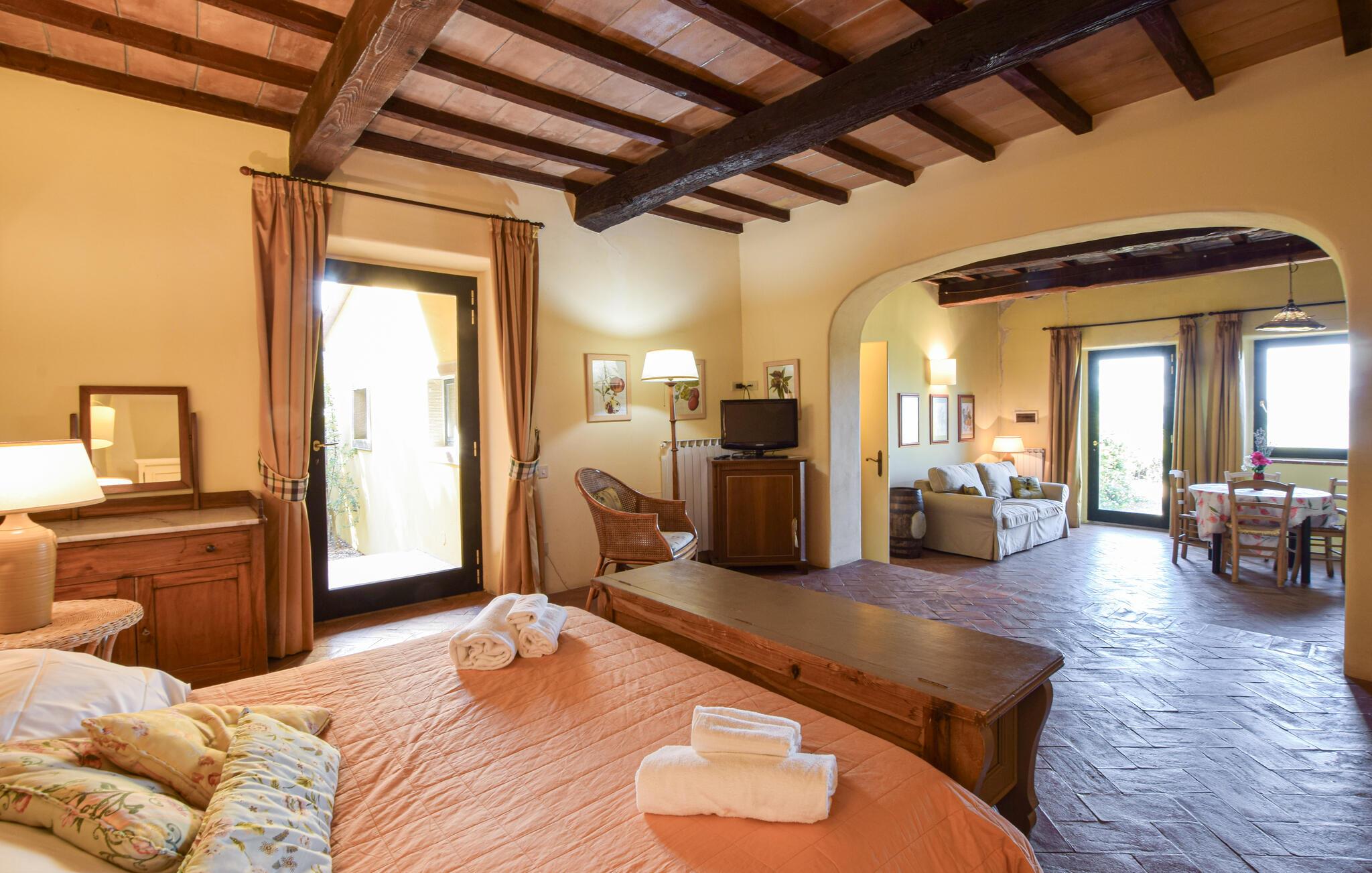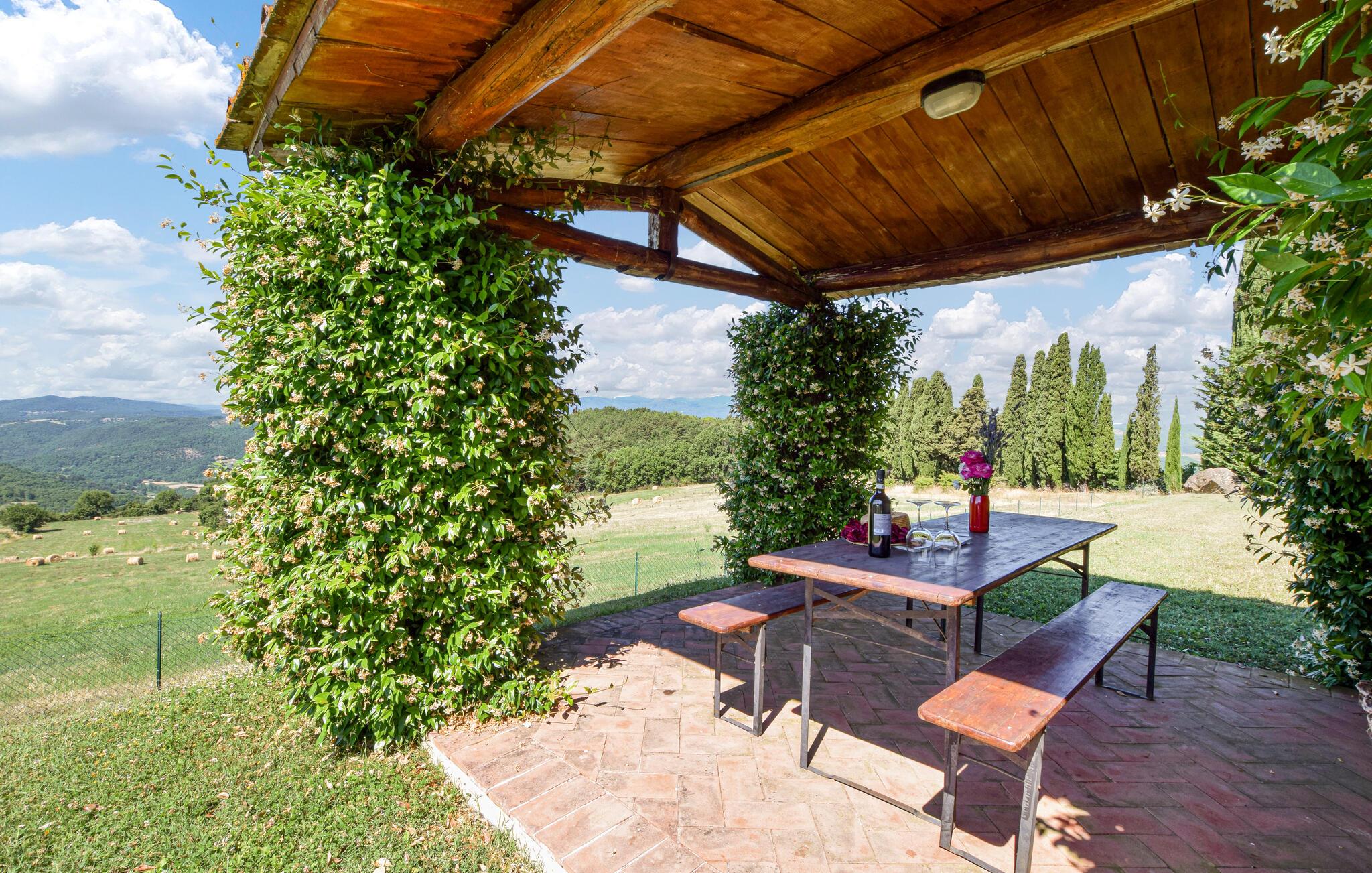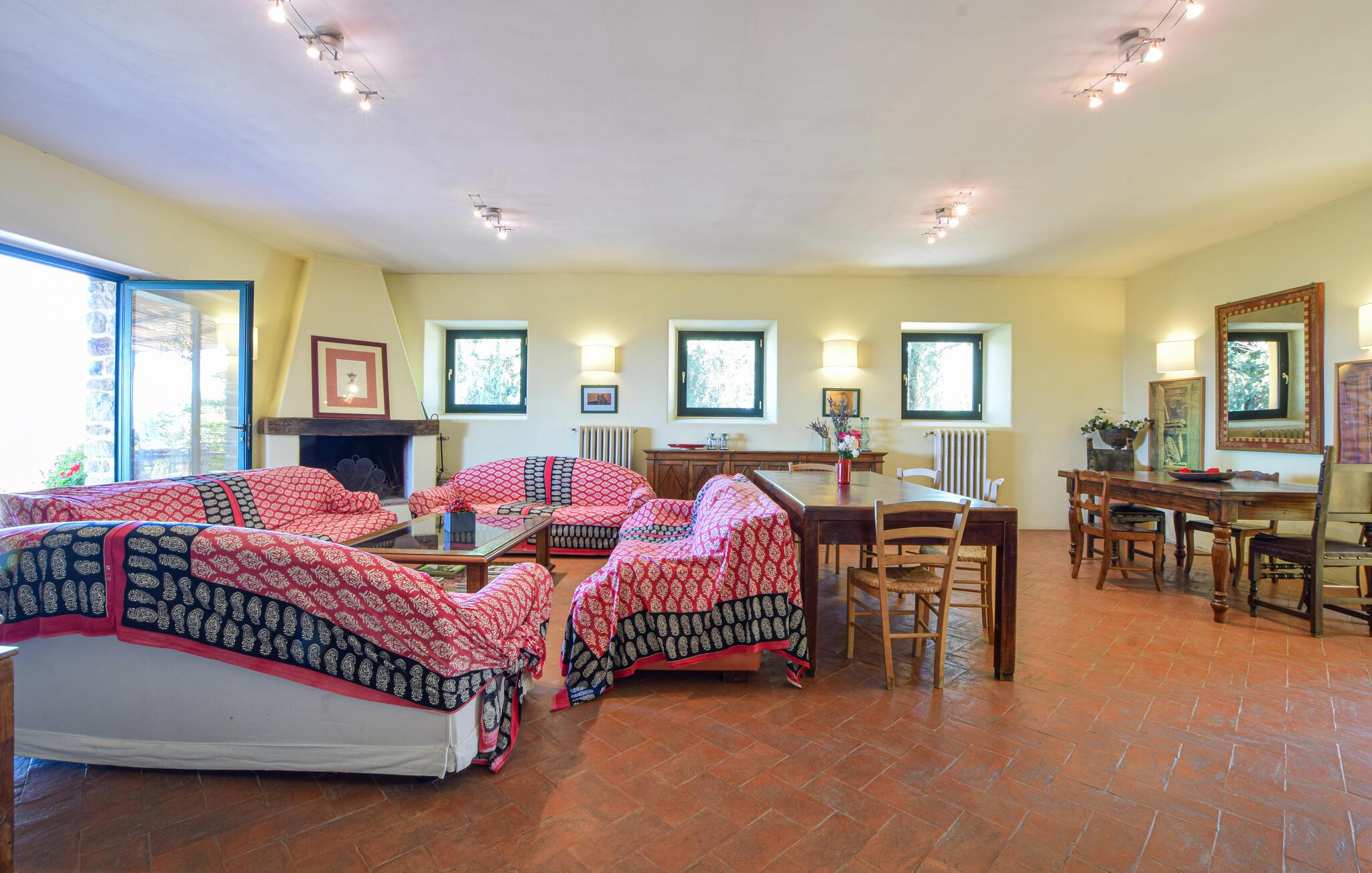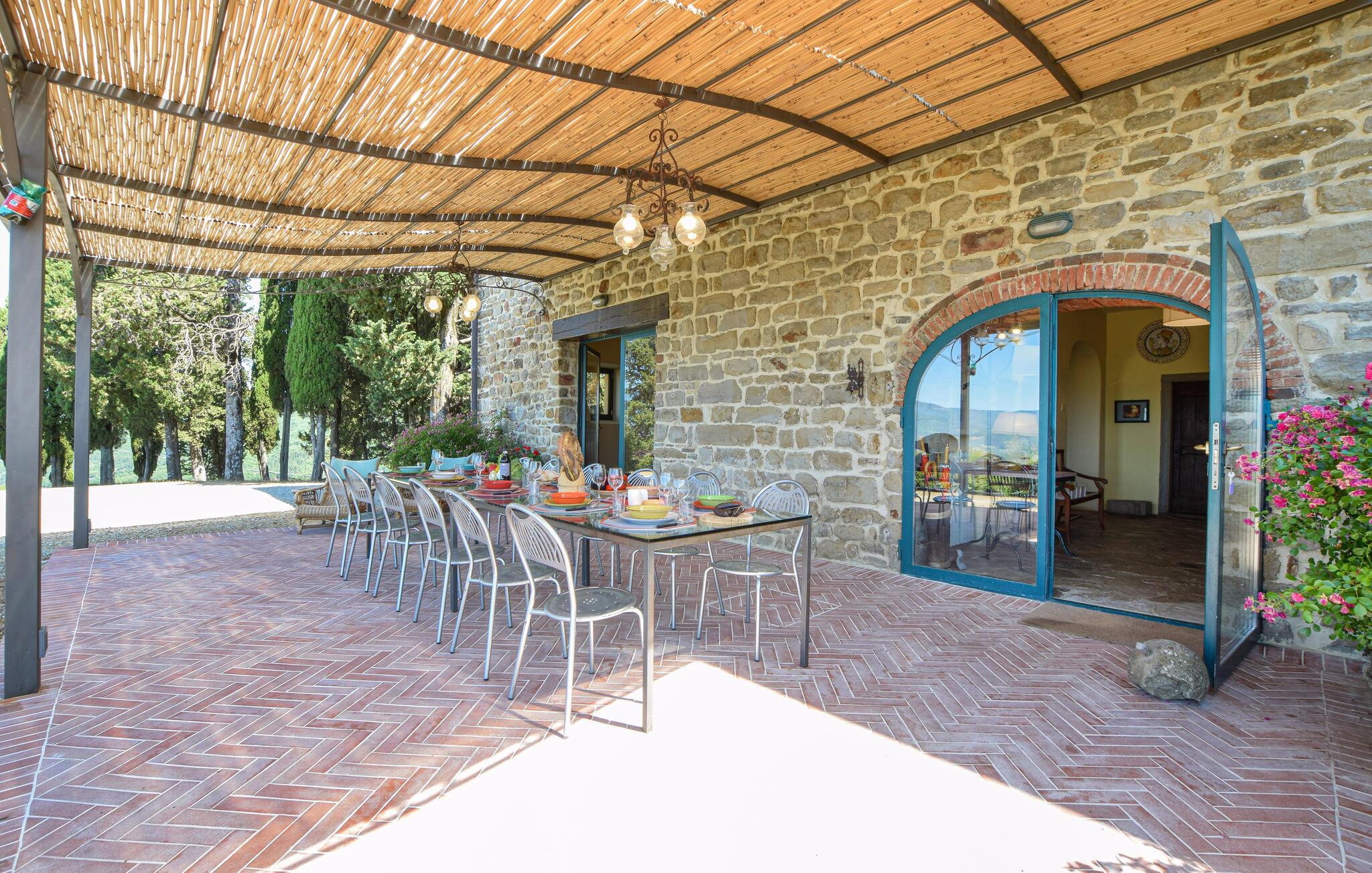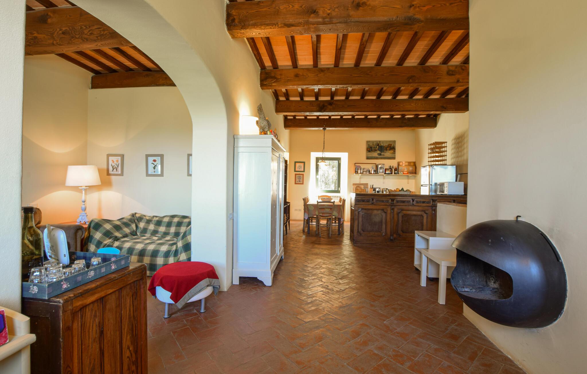 Dette typiske toskanske steinhuset lover deg en ferie på sitt beste. Nyt den historiske sjarmen som utstråles av de tykke natursteinsmurene, de karakteristiske trebjelkene og de rustikke møblene. Tilbring avslappende kvelder med å prate eller prøve ut toskanske oppskrifter på det moderne, velutstyrte kjøkkenet.