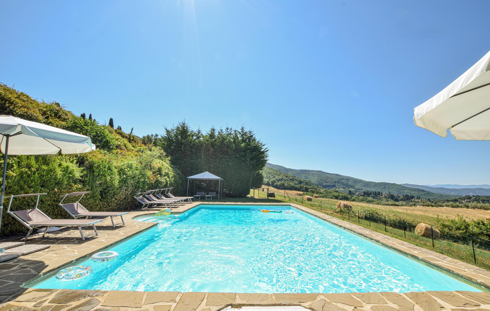 Tilbring en herlig ferie i dette karakterfulle feriehuset med autentisk stil, basseng og utsikt over bølgende grønne åser.