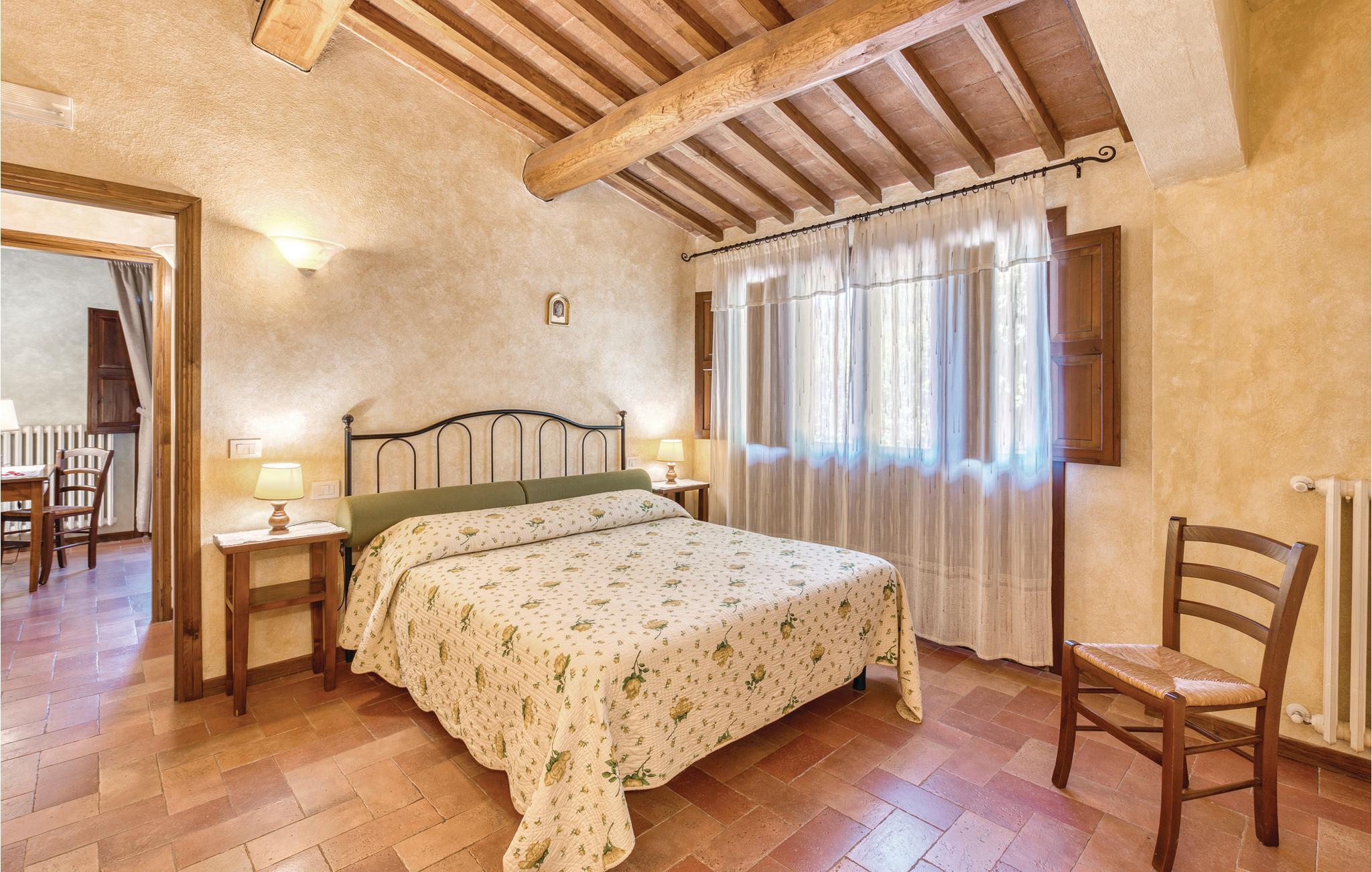 I hjertet av det florentinske Chianti-området, bare 5 minutter med bil fra den sjarmerende og gamle landsbyen Tavarnelle Val di Pesa og med utsikt over dalen og Chianti-vinmarkene, tilbyr vi et feriehus i toskansk stil med felles svømmebasseng og privat terrasse utstyrt for utendørs måltider! Ferieboligen ligger på en eiendom som består av en villa (ITC957) og en låve som er delt inn i to leiligheter. Ferieboligen er svært romslig og egner seg spesielt godt for barnefamilier eller vennegjenger på ferie sammen. Innkvarteringen har beholdt de typiske trekkene ved toskanske bygninger, med synlige trebjelker, terrakottagulv og noen vegger med steindetaljer. Møblene er rustikke og svært koselige. Fra ett av dobbeltrommene har du utgang til en annen privat terrasse. Alle gjestene på eiendommen deler et stort grøntområde nær inngangen til eiendommen, og i midten av dette ligger bassenget, som er utstyrt med solsenger. Herfra kan du gå flotte turer, og de som liker terrengsykling kan ta guidede turer for å utforske Chianti-regionen. På forespørsel kan det også arrangeres kokkekurs, kakekurs og vinsmaking på stedet. Informasjon om priser og tider finner du direkte på stedet. Hvis du er gjest på overnattingsstedet ITC958, tilbyr eieren deg en av følgende gratis ekstratjenester i april, mai eller juni: Kokkekurs i boligen din. Kurset inkluderer tilberedning av to tradisjonelle toskanske retter (for eksempel: Pappa al Pomodoro og Cantuccini) og prøvesmaking, samt utlevering av de tilhørende oppskriftene. De tilberedte rettene blir deretter smakt av kundene. Vandring langs Via Francigena i pilegrimenes fotspor: ca. 15 km lang sti midt i det toskanske landskapet med fantastisk utsikt; i første etappe blir gjestene kjørt i bil til utfluktens startpunkt og kjørt tilbake til overnattingsstedet etter endt vandring. Vandring gjennom landskapet til en lokal vinkjeller og vinsmaking. Halvdags terrengsykkeltur med guide (mulighet for å leie terrengsykler på stedet). Vennligst informer vertinnen om den valgte tilleggstjenesten sammen med din forventede ankomsttid. På forespørsel og mot en ekstra kostnad på stedet: Tilgang til et lite privat SPA (1 km) med badstue, tyrkisk bad og massasjerom. Du kan også kjøpe olivenolje, vin og vinsanto fra eierne på stedet. Noen avstander: Marcialla ca. 2,5 km, Castellina in Chianti ca. 20 km, Greve in Chianti ca. 24 km, middelalderlandsbyen Montefioralle i nærheten av Greve, Firenze ca. 40 km og Siena ca. 45 km.