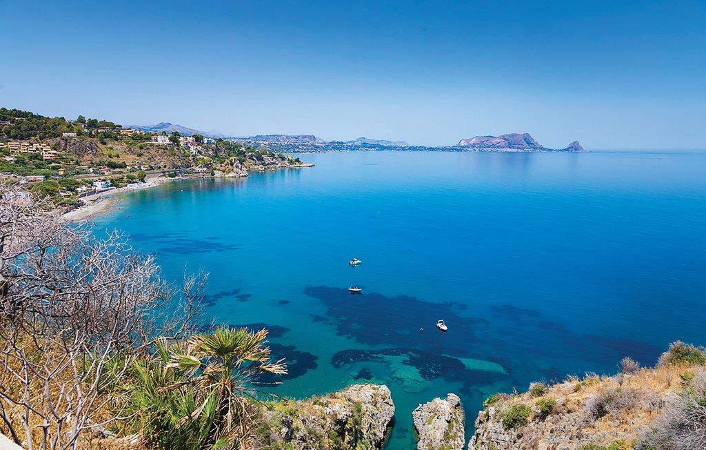 Villa Joly har en fantastisk beliggenhet på klippen i Cala Rossa, hvorfra du kan nyte en fantastisk utsikt over Castellammare-bukten. Huset er omgitt av en hage med engelsk plen, utstyrt med bord, fluktstoler, solsenger og et lysthus med panoramautsikt for et avslappende uteliv. Terrasini (3 km unna) er en liten, koselig turistby ved havet: den er preget av høye og ville klipper som går over i en sandstrand som er ideell for barn. Ikke gå glipp av en tur til det marine reservatet Capo Rama. Husets beliggenhet gjør det mulig å nå på kort tid Palermo og Monreale med sin store kunstneriske og gastronomiske arv (30 km), Segesta (20 km) og Selinunte (50 km) med sine store greske templer, San Vito Lo Capo (70 km) . De karakteristiske saltpannene i Marsala ligger 50 km unna. Huset ligger i et kompleks hvor gjestene kan nyte en lekeplass med sklier, husker og andre leker. Huset er fordelt på 3 etasjer: på mesaninen er det en lys og større stue, et romslig og velutstyrt kjøkken, et bad; i kjelleren stort soverom med 2 doble soverom og en barneseng; i første etasje 2 doble soverom med garderobe, et enkelt soverom, bad. De 3 soverommene har balkong med panoramautsikt.