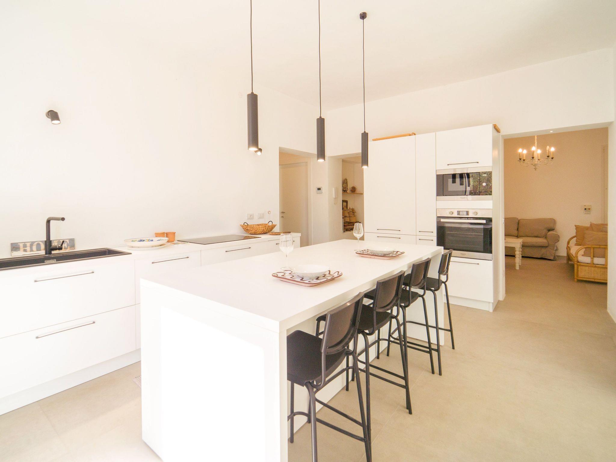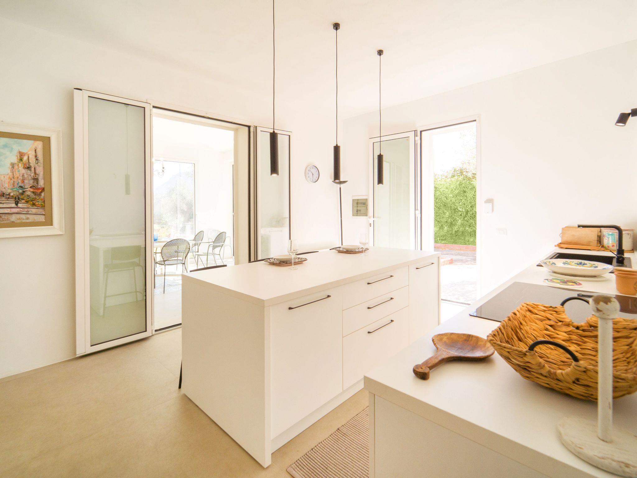 Mamma Vera is made up of 4 double bedrooms, two of which have en-suite bathrooms. Another bathroom serves the two further bedrooms. The villa is bright and the rooms large and comfortable. The house is equipped with all the comforts. The living room has a corner that overlooks the beautiful garden through large door windows. The furniture is new and designer.