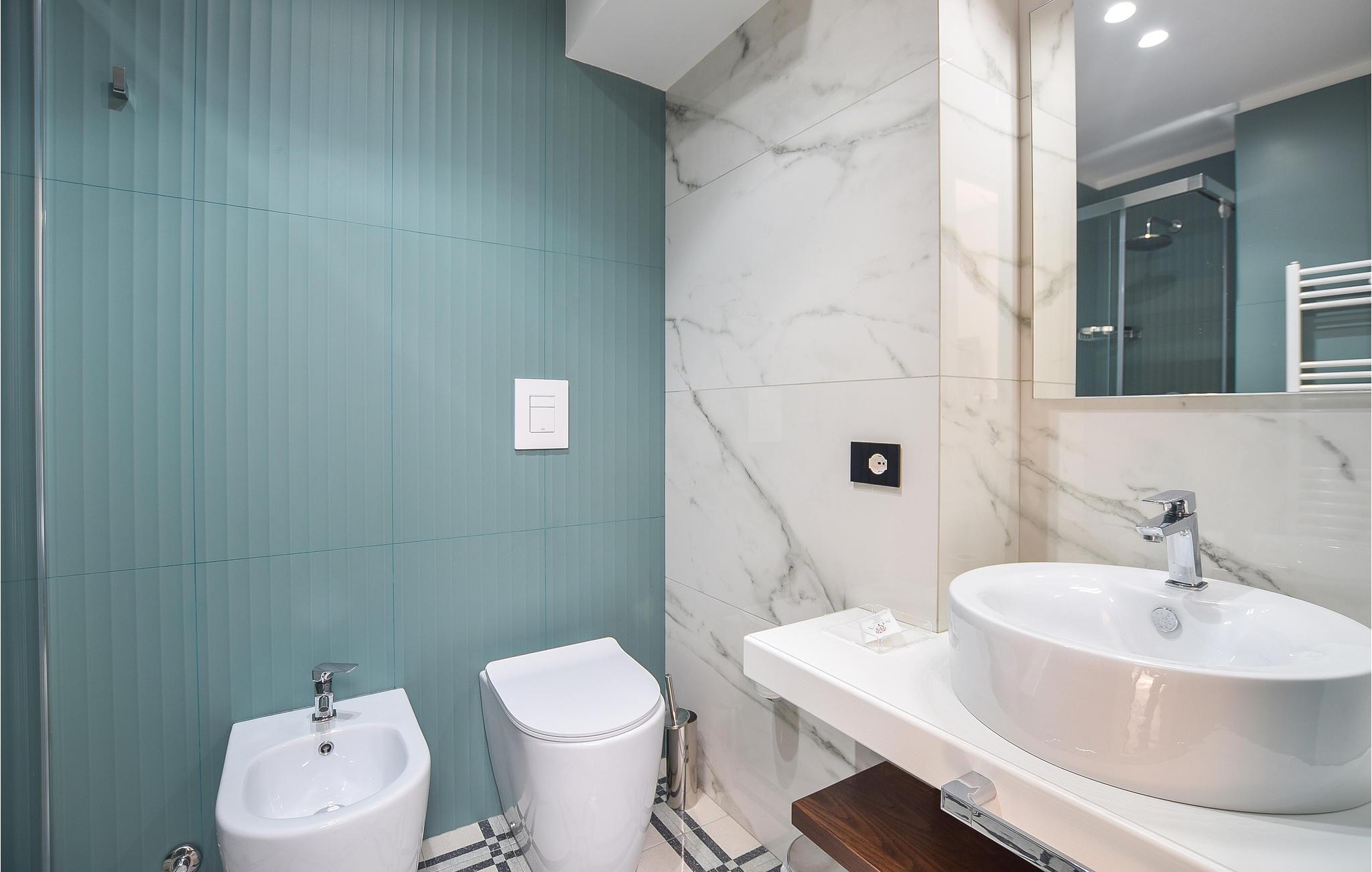 - WC med varmt og kaldt vann, Dusj