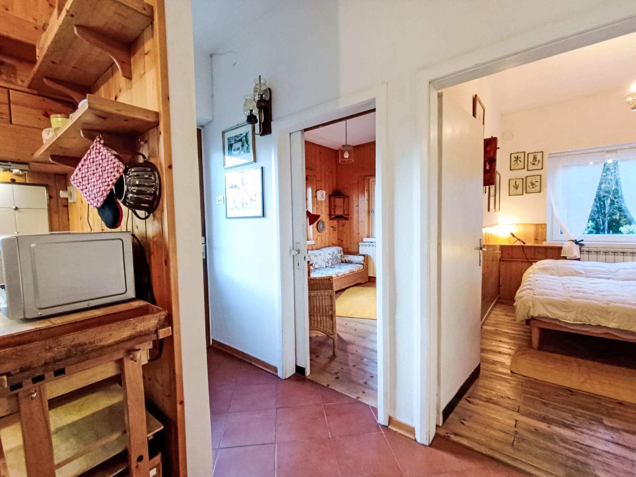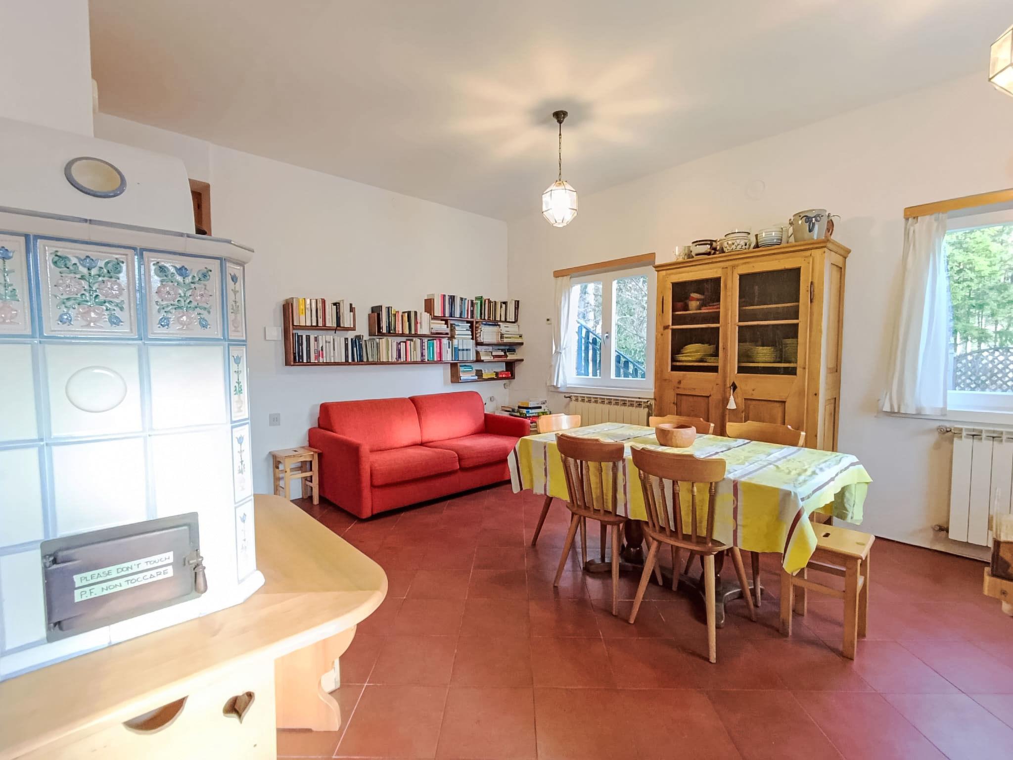 "Villa Pia", 3-room terraced house 80 m2, on the upper ground floor. Simple and practical furnishings: entrance hall. Living/dining room with 1 sofabed and Scandinavian wood stove (only for decoration), TV. Luggage room. 1 double bedroom with 1 double bed. 1 room with 1 x 2 bunk beds. Lounge with TV. Open kitchen (oven, dishwasher, Gas stove, toaster, kettle, microwave) with dining table. Shower/bidet/WC. Heating. Heating available only from 01.12. to 01.05. View of the mountains. Facilities: washing machine, iron, hair dryer. Parking. Please note: non-smoking house. Maximum 1 small pet/ dog allowed. Private entrance, fire extinguisher. IT022196C2DK73OGFQ