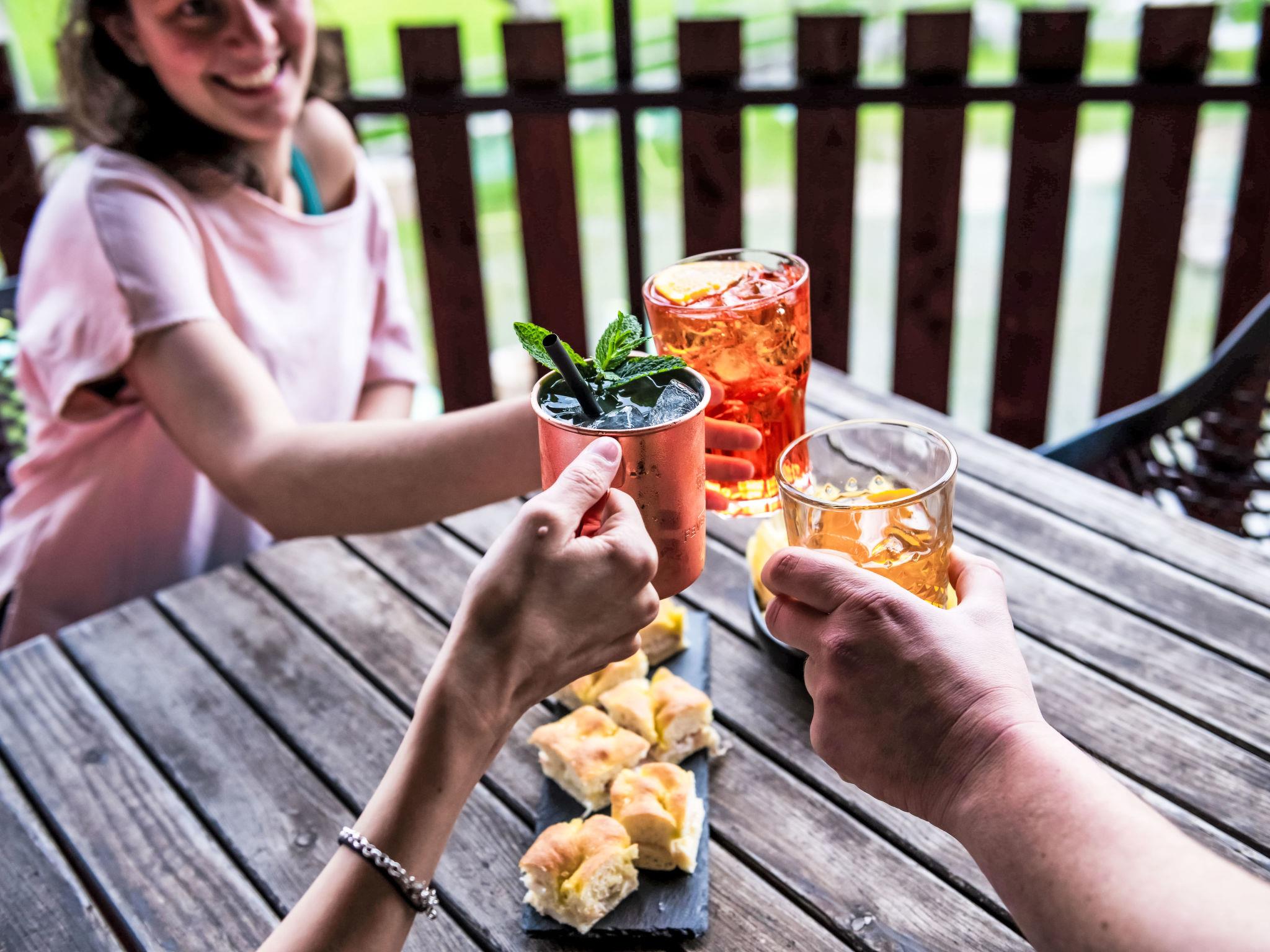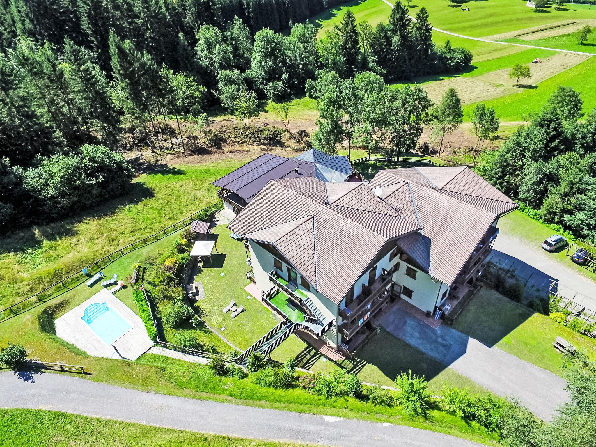 Child friendly, rustic residence "Lembondel". 18 apartments in the residence. 1 km from the centre of Tiarno di Sotto, in a quiet, sunny position on a slope, 4 km from the lake, in the countryside. For shared use: natural state property with lawn and plants, swimming pool (7 x 3 m, depth 140 cm, seasonal availability: 01.Jun. - 15.Sep.). Outdoor shower, table tennis, terrace (100 m2), garden furniture, barbecue. In the complex: reception, bar, WiFi, billiard table, playroom, table football, lift, storage room for bicycles, washing machine (for shared use, extra). Breakfast on request (extra). Parking at the house. E-charging station. Grocery 1 km, restaurant 1 km, bar 1 km, bakery 1 km, bicycle rental 4 km, bus stop 800 m. Cycle lane, children's playground 100 m. Nearby attractions: Molina di Ledro 9 km, Riva del Garda 20 km. Well-known lakes can easily be reached: Ledro 4 km, Ampola 4 km, Garda 20 km. Hiking paths: Cima Capi 16 km. Please note: car recommended. For each booking a Trentino Guest Card included in the price. Guests have access to a charging column for electric cars.
