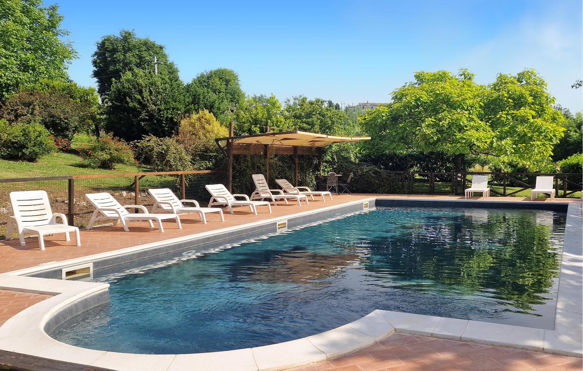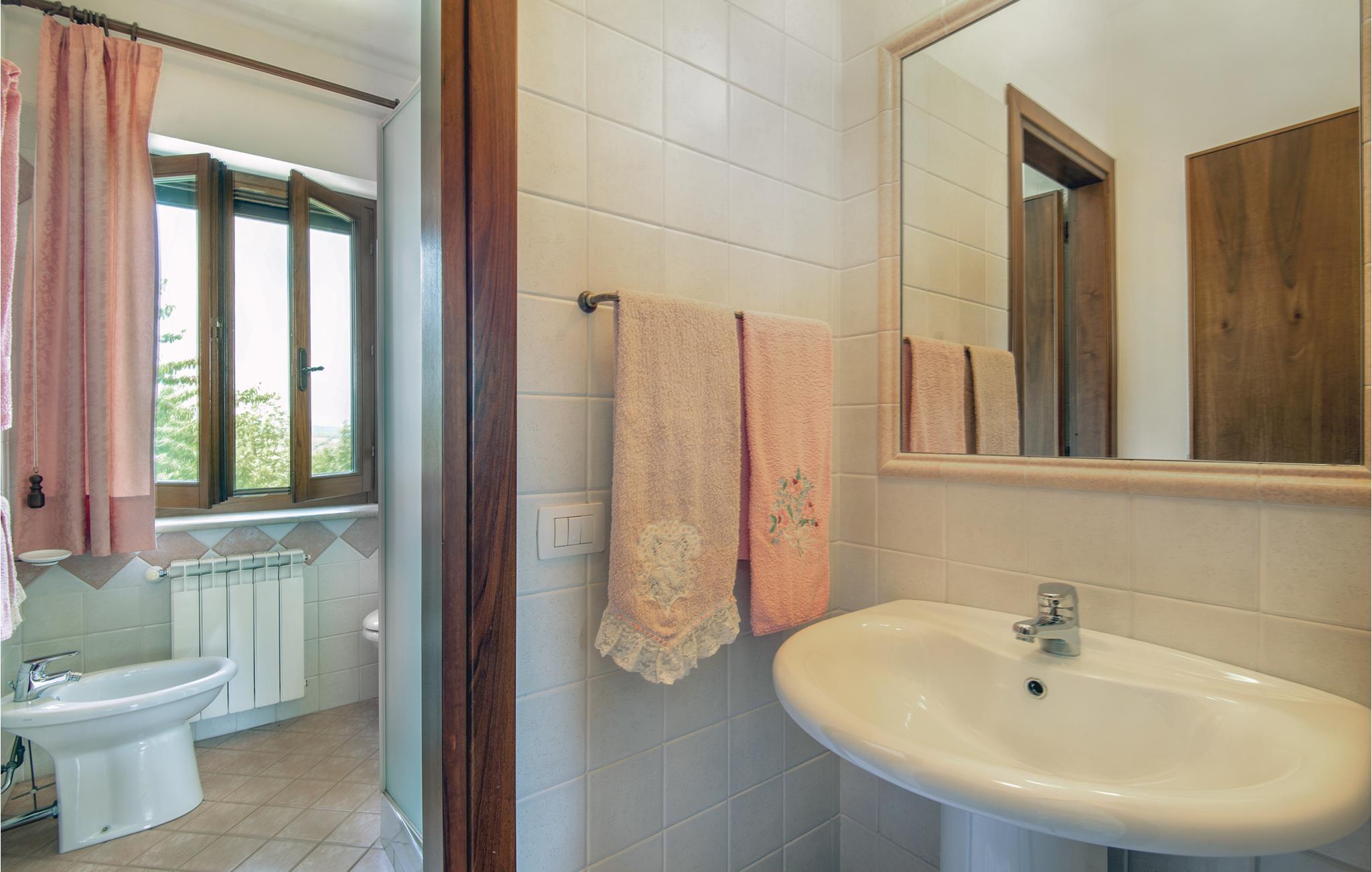 Stort landsted med basseng, ca 25 km fra Todi og litt over 1 km fra Acquasparta, en middelalderlandsby med panoramautsikt i de umbriske åsene. Takket være organiseringen av rommene og det brede utvalget av fritidsaktiviteter, er dette den ideelle innkvarteringen for store grupper, venner eller familier som ønsker å tilbringe en ferie sammen i en ånd av avslapning og opprettholde sitt privatliv. Et stort kjøkken og et romslig rom med smart-TV er i uthuset. En grill og langbord i skyggen av eikene garanterer uforglemmelige utendørs måltider. Ved siden av det store bassenget, omgitt av grøntområder, er et boblebad og et treningsområde. I den velholdte hagen: lekeplass for barn, fotballbane, bocciabane, bordfotball. Eiendommen strekker seg over mer enn en hektar og er helt inngjerdet, så den er også perfekt for firbente venner. På mindre enn en halv time kan du nå de vakreste byene i Umbria som Todi, Spoleto og Orvieto. Andre steder for dagsturer: Terni 25 km, Perugia 60 km, Roma 100 km. Huset er delt inn i seks leiligheter, som ligger mellom første etasje og første etasje, alle med stue med kjøkkenkrok. Alle vinduer og dører er utstyrt med myggnett, overbygd parkering på eiendommen. I første etasje er det tre leiligheter med egen inngang. APT1: romslig kjøkken, to soverom, ett bad, ett toalett. APT2 og APT3: stue med kjøkkenkrok og sovesofa, soverom med dobbeltseng og bad med dusj. To trapper fører til tre leiligheter i andre etasje. APT4: stue med kjøkkenkrok og sovesofa, soverom med dobbeltseng og bad med dusj. APT5 og APT6, internt forbundet med et soverom, hver med egen inngang: Stue med kjøkkenkrok, sovesofa, to soverom med dobbeltseng og bad med dusj. 100 meter fra huset ligger en moderne padelbane (mot betaling).
