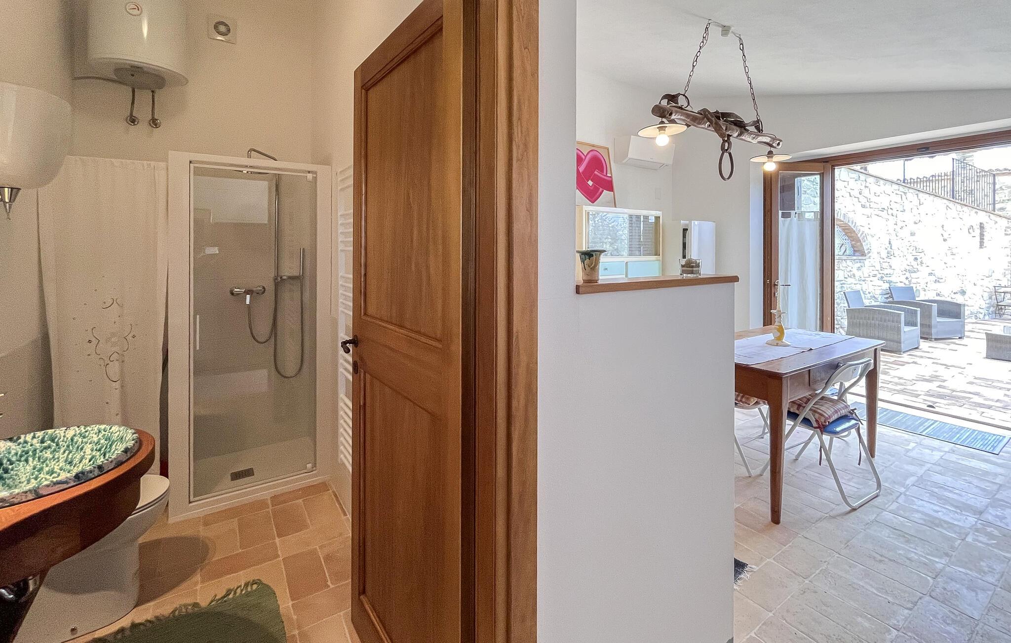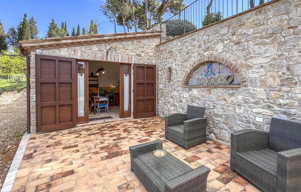 En idyllisk ferieferie venter dere i dette sjarmerende feriehuset i nærheten av Todi. Den tradisjonelle steinarkitekturen gir interiøret en rustikk sjarm, og kombinert med moderne komfort har dere funnet en koselig oase som par. På kjøkkenet kan dere trylle frem deilige måltider og bruke den tilstøtende terrassen som en utendørs stue. En annen overbygd terrasse innbyr til avslapning uansett vær. Fra de ulike terrassene har du en fantastisk utsikt over det omkringliggende umbriske landskapet. Her kan du nyte måltidene utendørs eller bare oppleve roen og naturens skjønnhet.