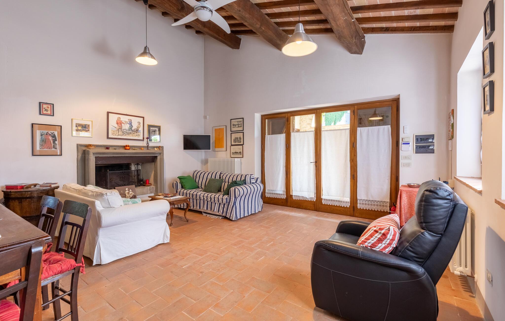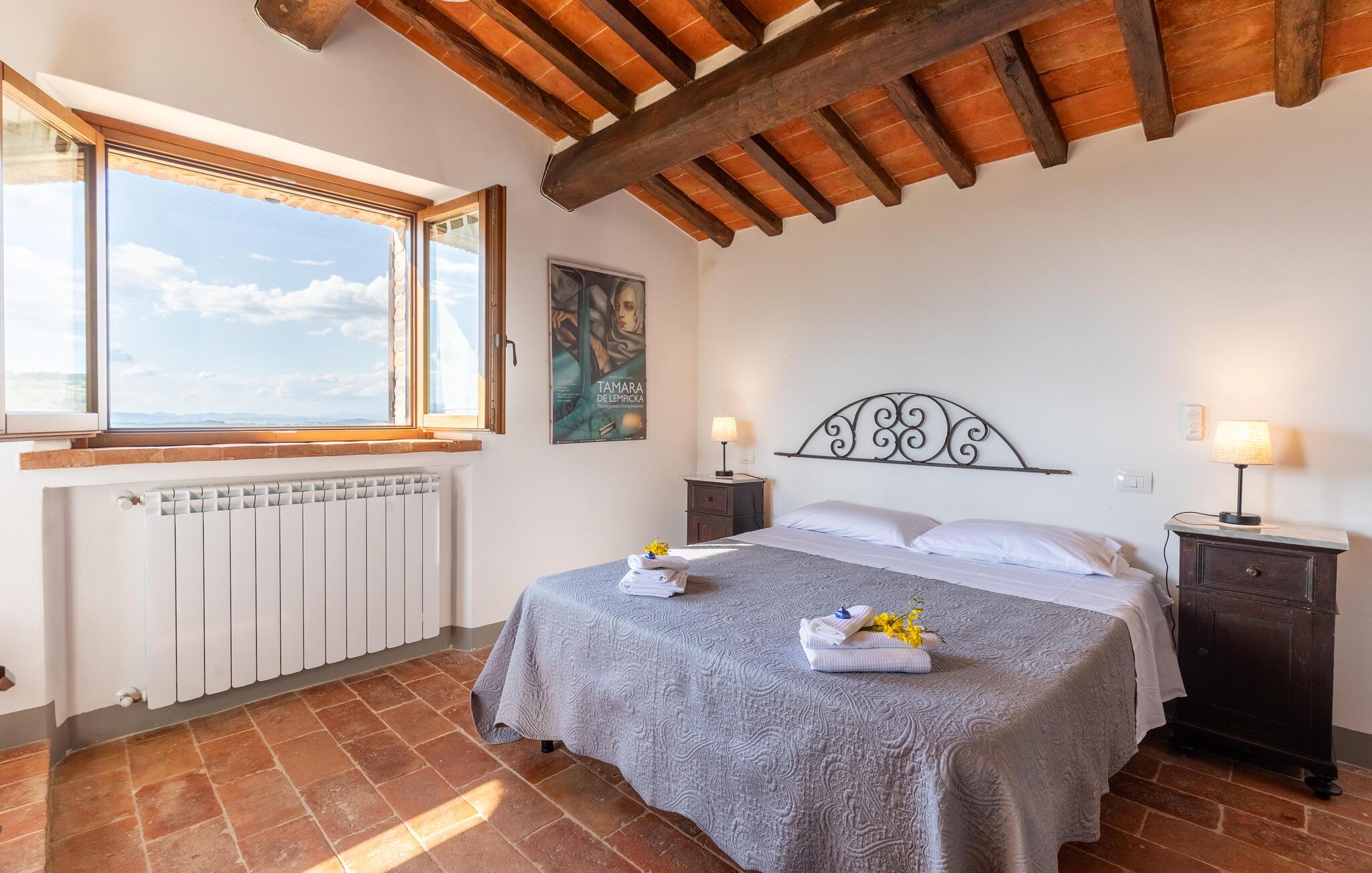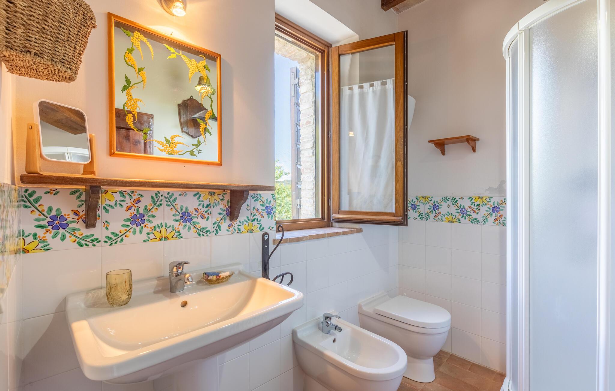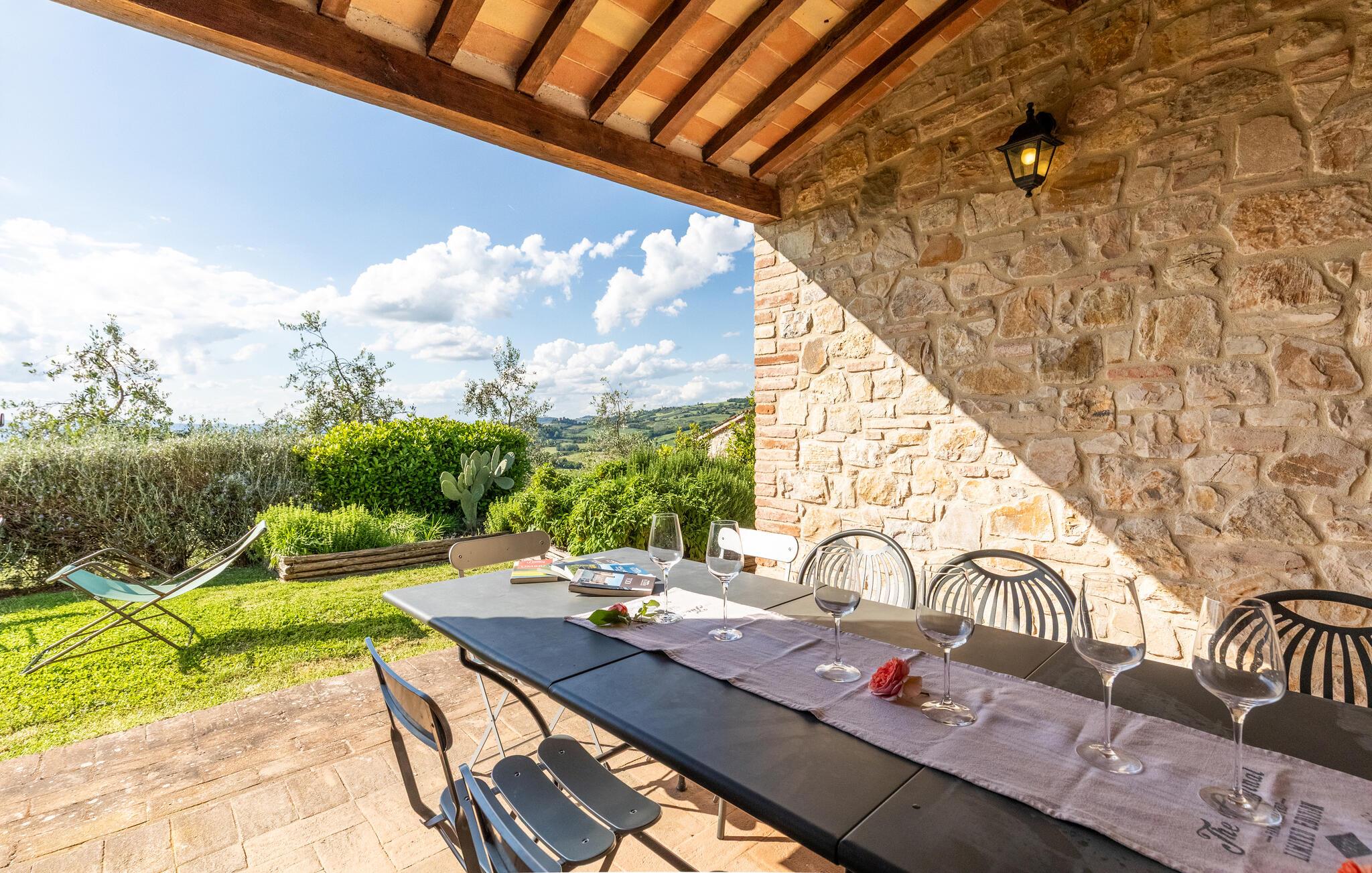 Hovedhuset tilbyr den vakreste panoramautsikten: Fra den møblerte terrassen kan du nyte utsikten over bassenget og de bølgende åsene i Umbria. Bare noen få meter unna ligger dependance og i den tredje bygningen bor huseierne av og til. Til eksklusiv disposisjon for gjestene i den velholdte hagen: Evighetsbasseng, stor panoramapaviljong for uteservering, tilstøtende steingrill med kjøkken og peis. Tjenester på forespørsel: matlagingskurs, vinkjellerturer, vinsmaking, trøffeljakt. Autentiske dyrebare materialer er fortsatt synlige i denne rustikke borgoen, møblene er laget av antikviteter og flisene på grillen er fra Sicilia. Todi-området er vert for oenogastronomiske, kulturelle og musikalske arrangementer i løpet av sommeren. Omtrent 150 meter unna ligger det karakteristiske middelalderslottet Petroro, som delvis tilhører samme eier.