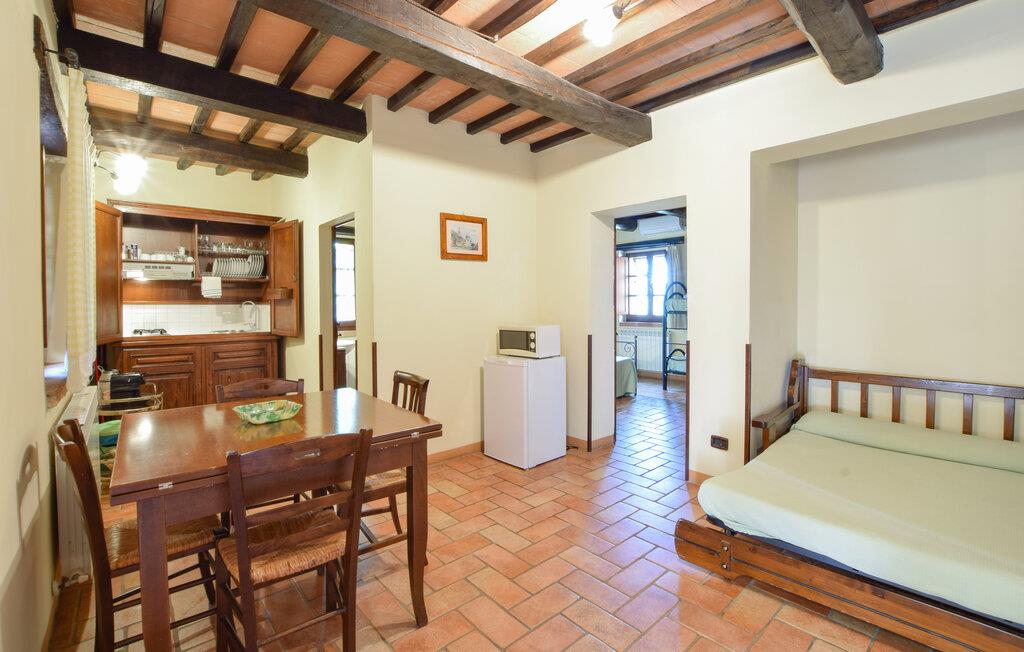 Denne leiligheten er perfekt for en avslappende pause fra hverdagen. Den ligger i et tradisjonelt gårdshus i umbrisk landlig stil, og kjennetegnes av et imponerende tak med trebjelker og rustikke møbler. Her kan du slappe av med en aromatisk espresso, lytte til favorittmusikken din eller trene styrke og utholdenhet i treningsrommet.