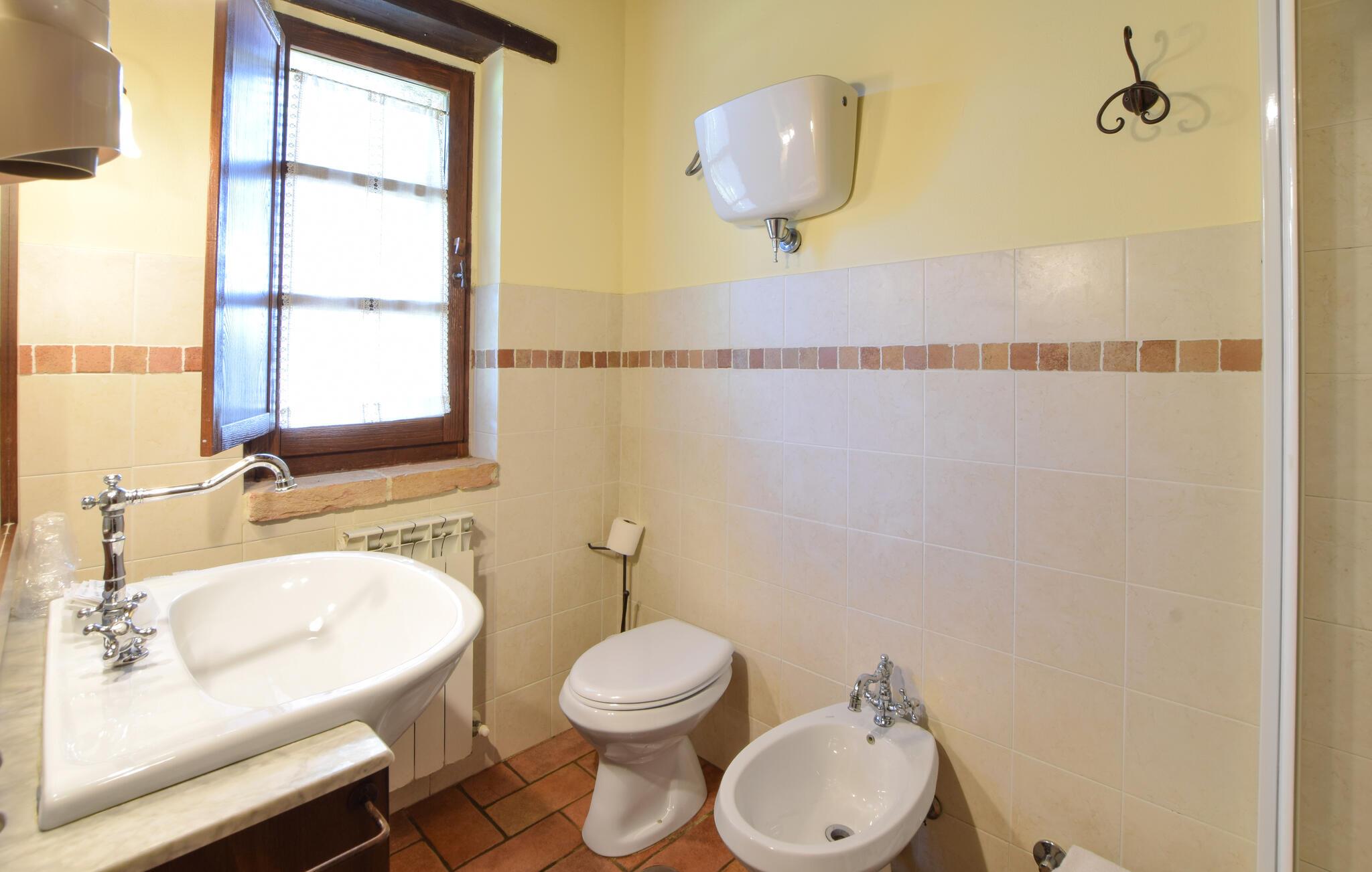 Om morgenen kan du gå ut på den natursteinbelagte terrassen og nyte en forfriskende dukkert i det store felles svømmebassenget. Slapp av på en solseng med utsikt over det vakre landskapet og byen Todi. Bruk den felles grillen om kvelden og avrund dagen med en god italiensk vin.