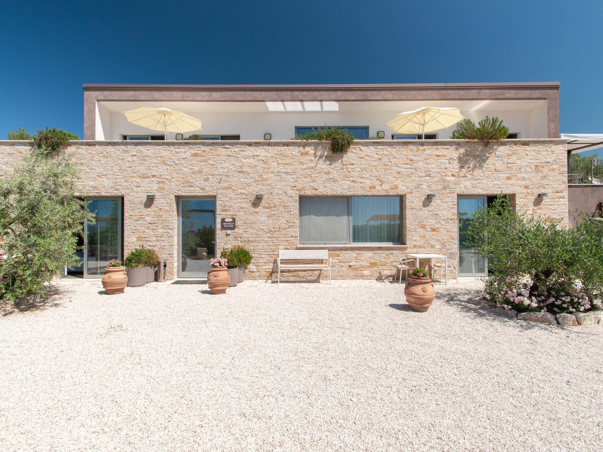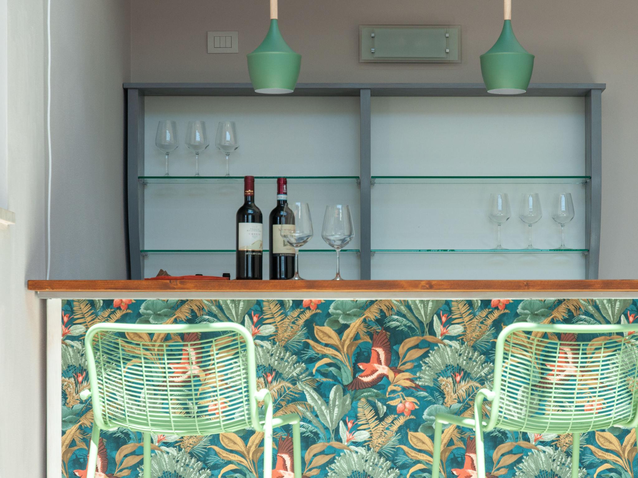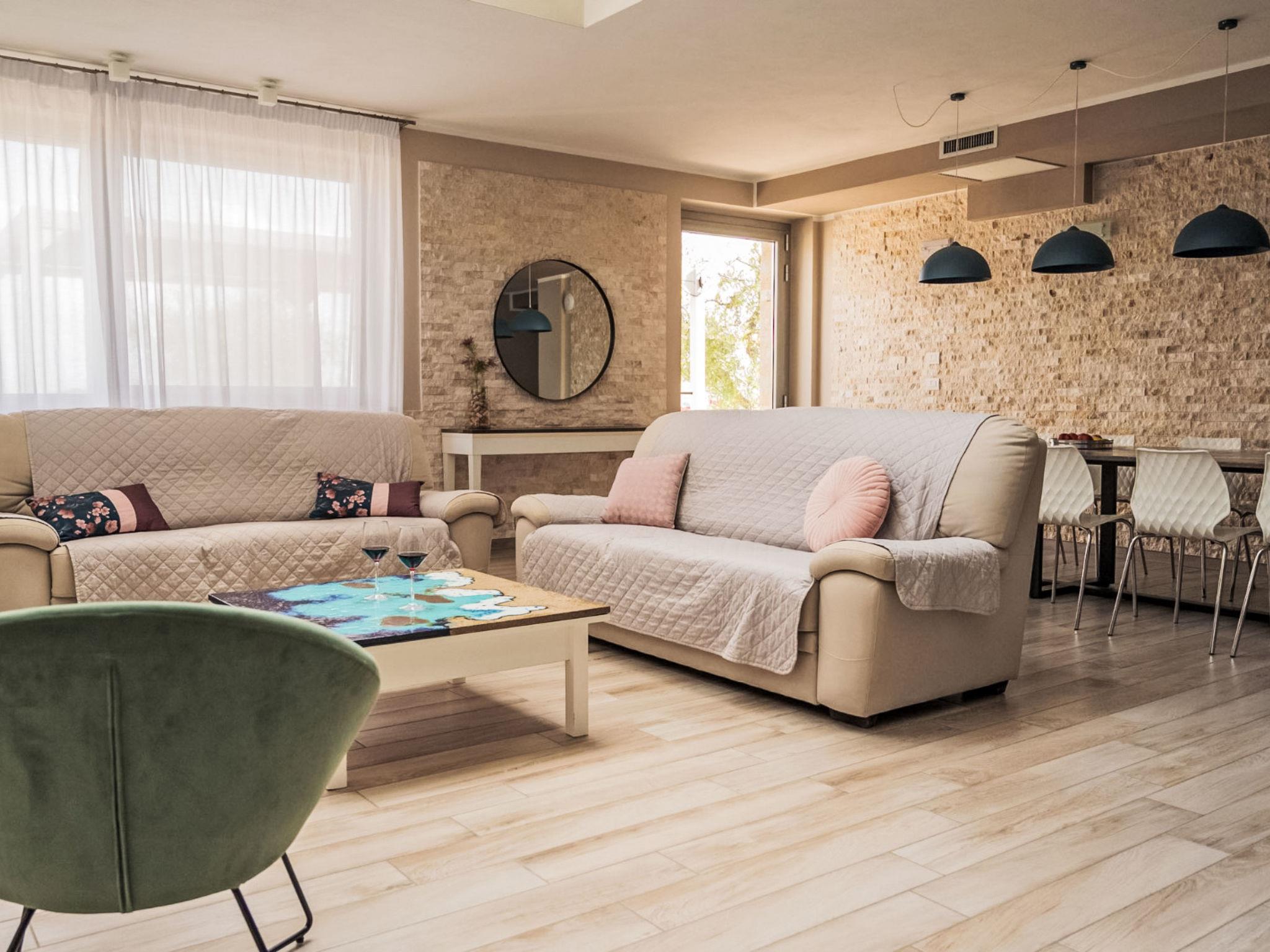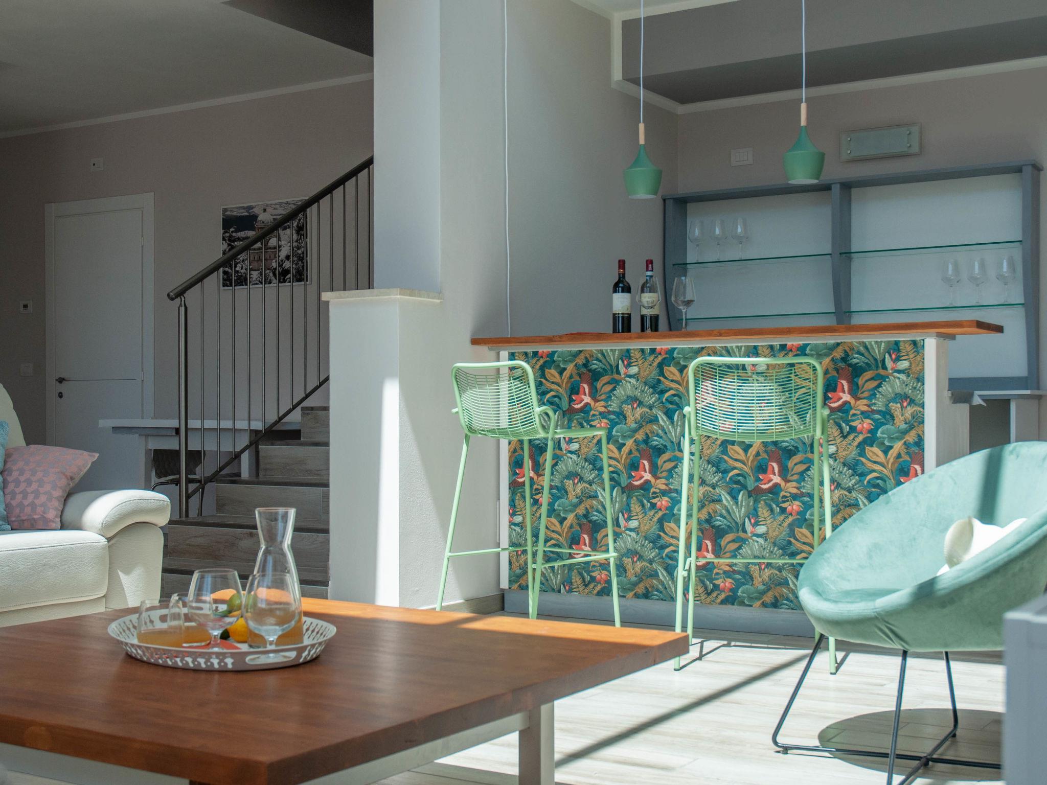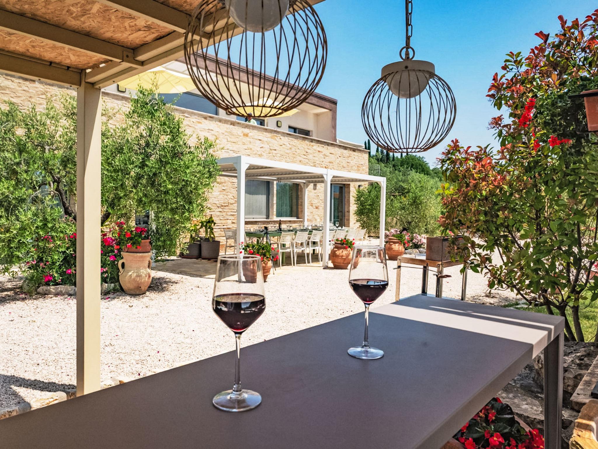 8-room villa 250 m2 on 2 levels. Practical and modern furnishings: large living room with dining table and TV (flat screen). Exit to the garden. 2 rooms, each room with 1 x 2 bunk beds, 1 double bed, shower/bidet/WC and TV (flat screen). Exit to the garden. Large kitchen (oven, dishwasher, 6 gas rings, kettle, microwave, freezer, grill, electric coffee machine, pizza oven) with separate WC. Exit to the garden. 2 sep. WC's. Electric heating, air-conditioning. Heating available only from 15.10. to 15.04. Upper floor: open gallery. 1 double bedroom with shower/bidet/WC and TV (flat screen). Exit to the balcony. 2 rooms, each room with 1 bed, 1 double bed, shower/bidet/WC and TV (flat screen). Exit to the balcony. 1 room with 1 bed, 1 double bed, shower/bidet/WC and TV (flat screen). Exit to the garden, to the balcony. Beautiful panoramic view of the countryside. Facilities: washing machine, safe, children's high chair, baby cot, hair dryer. Internet (WiFi). 1 small pet/ dog allowed. All the rooms are also equipped with safe and minibar. One of the double bedrooms on the ground floor has a bathroom for disable. IT054052B501031390