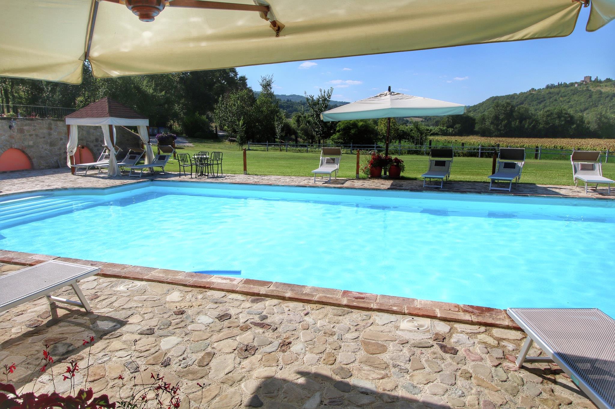 Bo i denne vakre eneboligen, midt på eiendommen, som tidligere var en av låvene på en gård. Den er ideell for solferier med familien. La barna boltre seg på den lille lekeplassen eller gå på shopping i Pian di San Martino eller Todi (kjent for sitt vakre middelaldersentrum). Disse stedene ligger innenfor en radius på 5 km rundt boligen. I tillegg til disse stedene er andre historiske steder som Orvieto, Perugia og Assisi også innen rekkevidde. Leiligheten er pent innredet og utstyrt med en privat plen hvor du kan starte dagene avslappet med en matbit og en drink. Stuen er komfortabelt innredet med karakteristiske terrakottafliser og tunge eikebjelker. Huset har et autentisk utseende og tilbyr også tilgang til felles svømmebasseng. For en betaling på 200 euro per person per uke eller 20 euro per person per dag, har du ubegrenset tilgang (fra 15:00 til 18:00) til velværesenteret, som inkluderer badstue, tyrkisk bad, solarium og boblebad . Velværesenteret er kun tilgjengelig for gjester på 14 år og eldre.