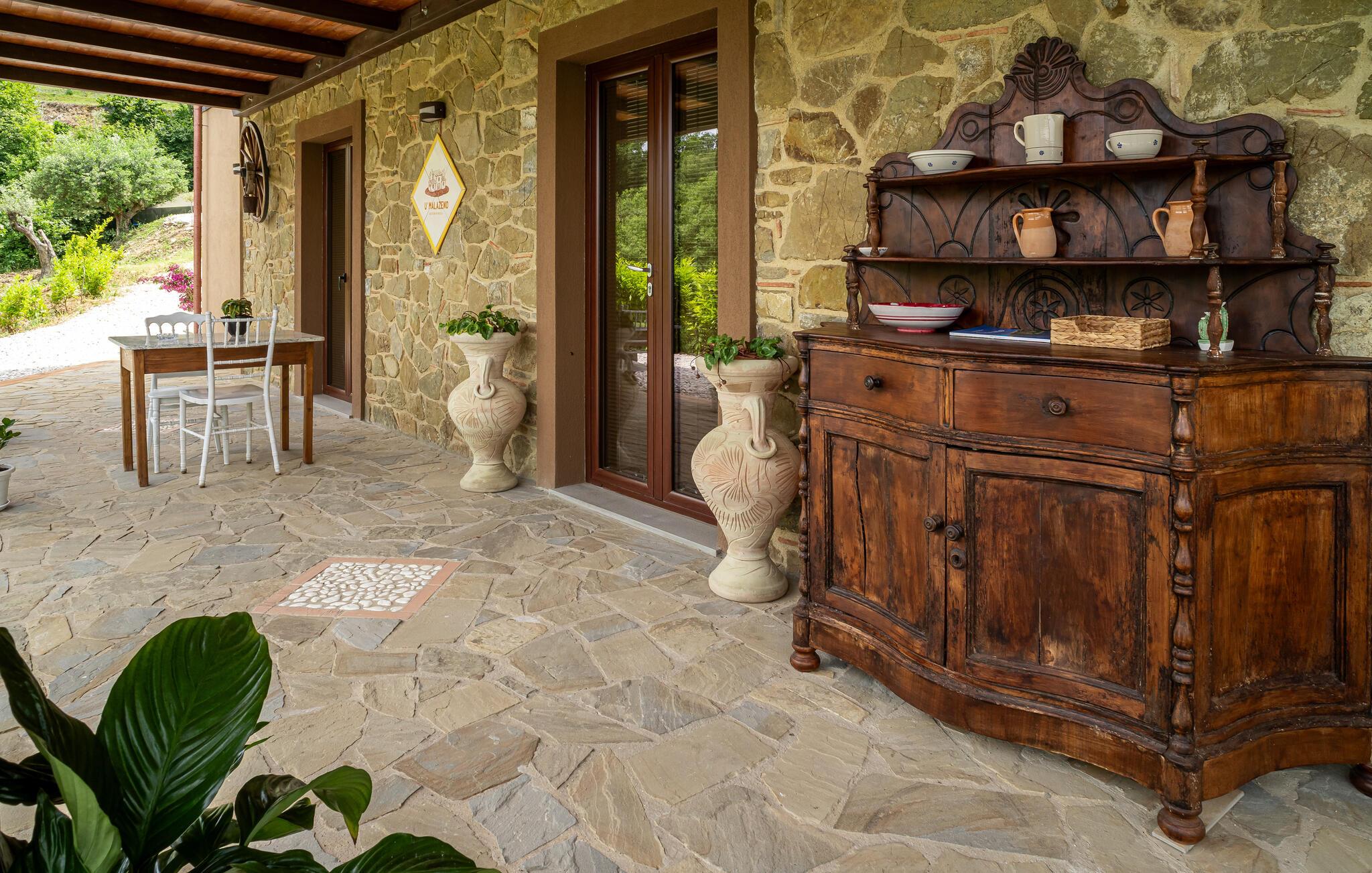 Det velutstyrte huset i Torchiara kommune er det ideelle stedet for deg som ønsker å slappe av og for naturelskere som søker fred og ro og foretrekker relativt korte avstander til naturskatter og kulturopplevelser. Interiørets design og fargevalg skaper en varm atmosfære der du kan slappe av med storfamilien og nyte hyggelige sammenkomster. Men mesteparten av tiden tilbringer du nok på terrassen, der du kan sitte og nyte en kopp kaffe mens du nyter de vakre omgivelsene. Alle soverommene er tilgjengelige fra utsiden.