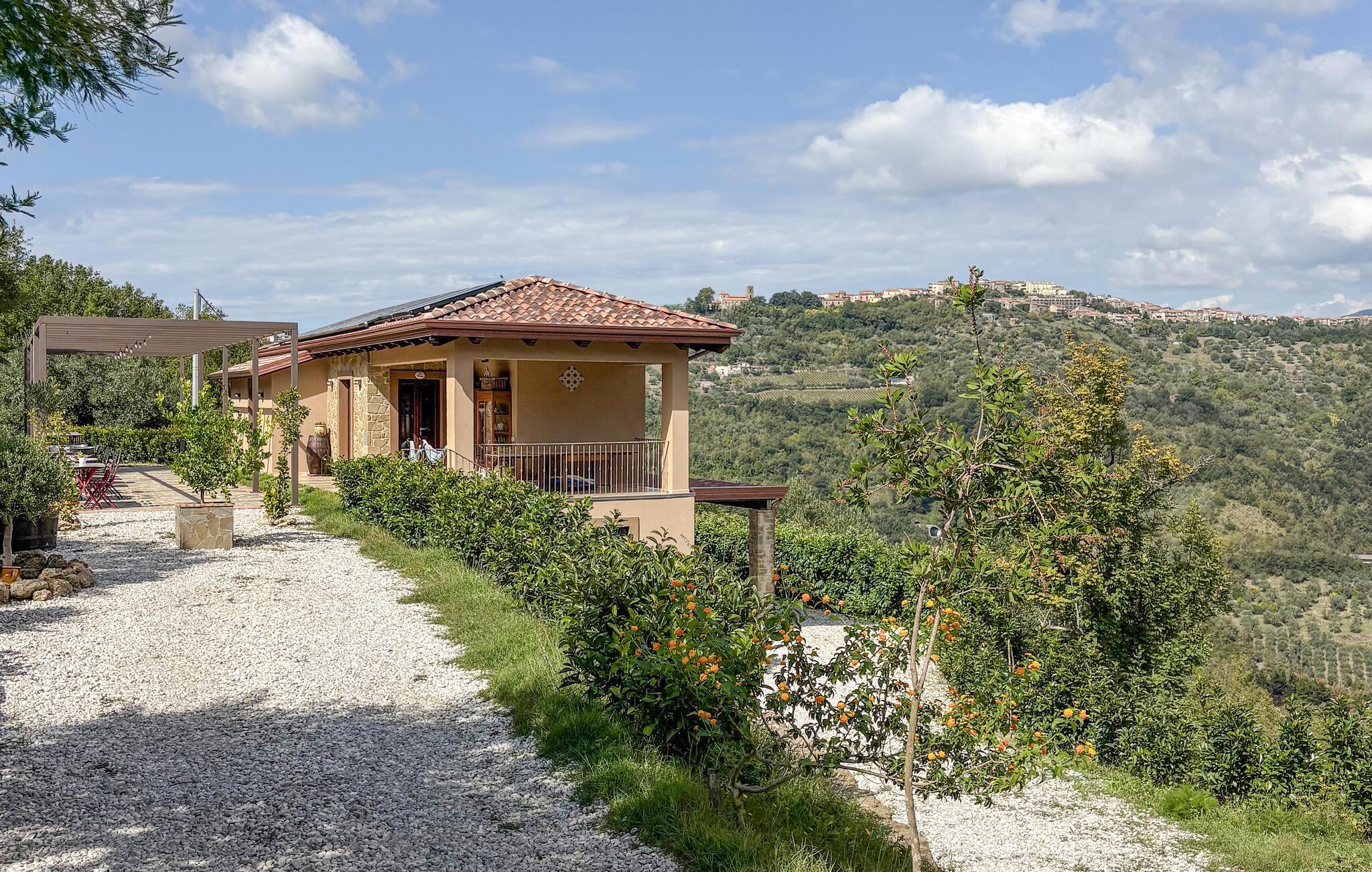 Dette romslige feriehuset ligger høyt på landsbygda med utsikt over det vakre landskapet.